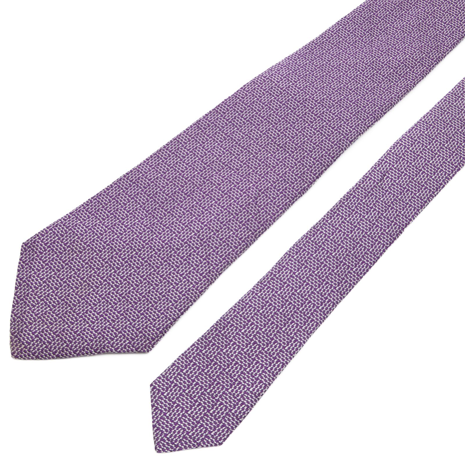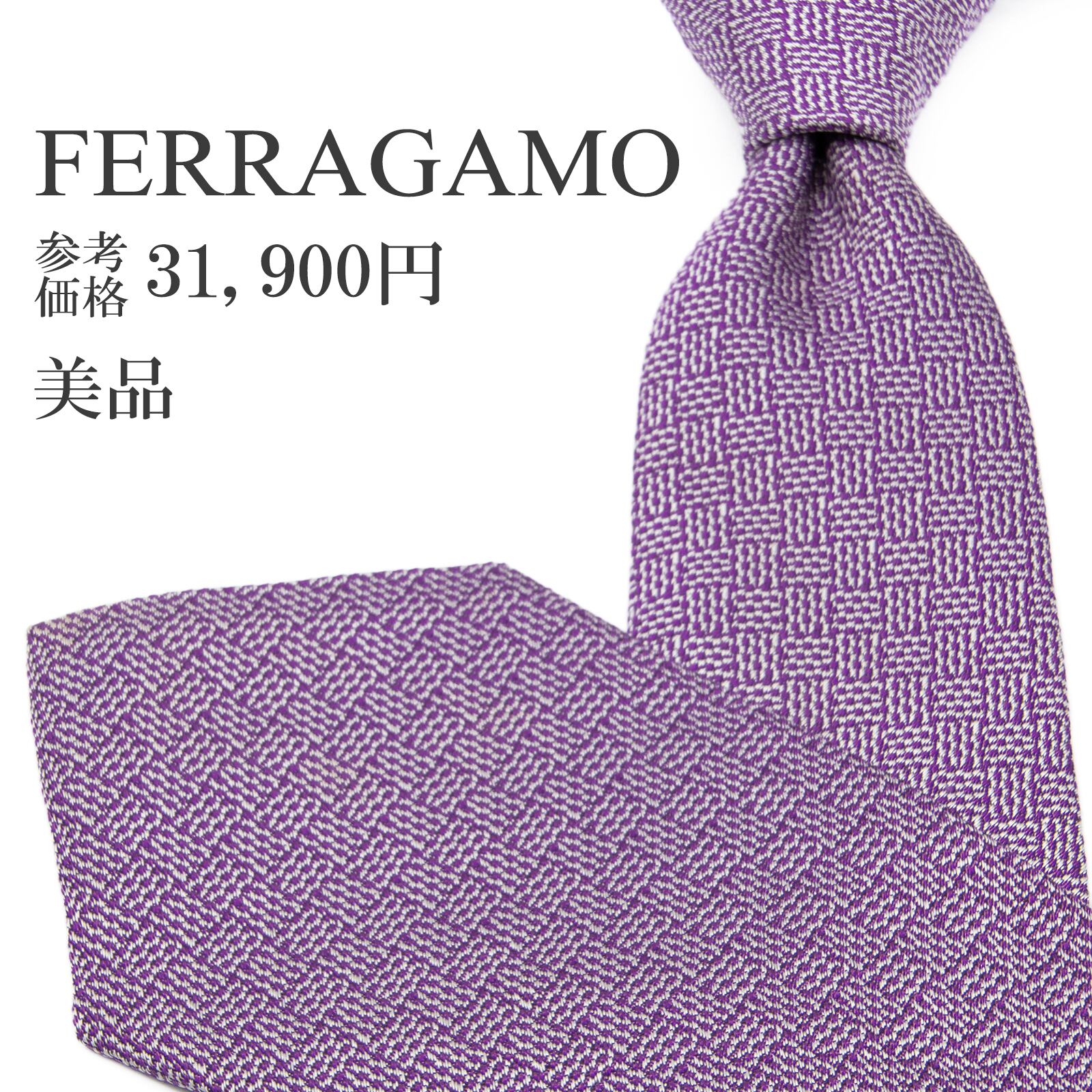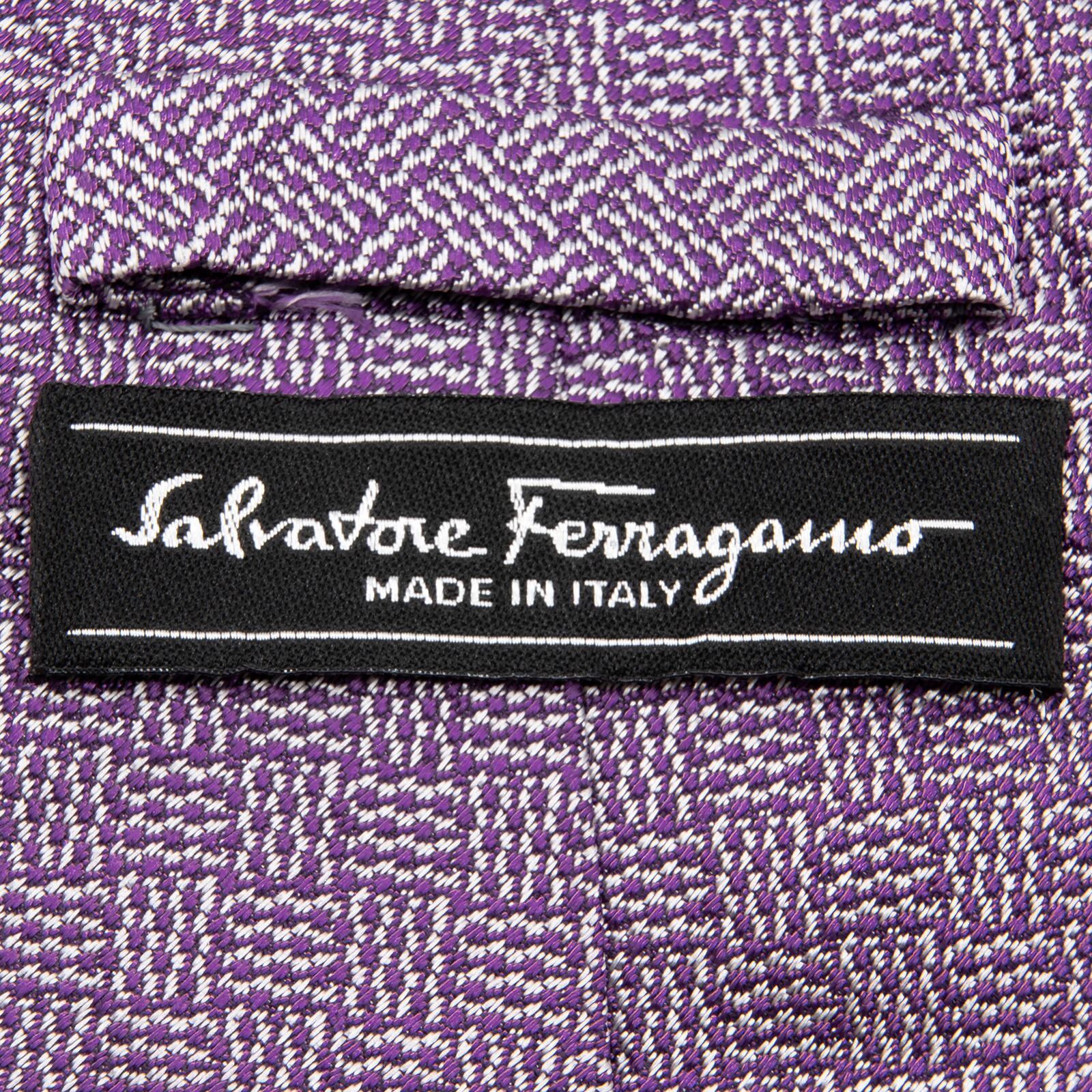 送料無料 フェラガモ ネクタイ ジャガードタイ シルク 紫 パープル シルバー 光沢 シンプル 編み込み模様 ハイブランド イタリア 綺麗 P404