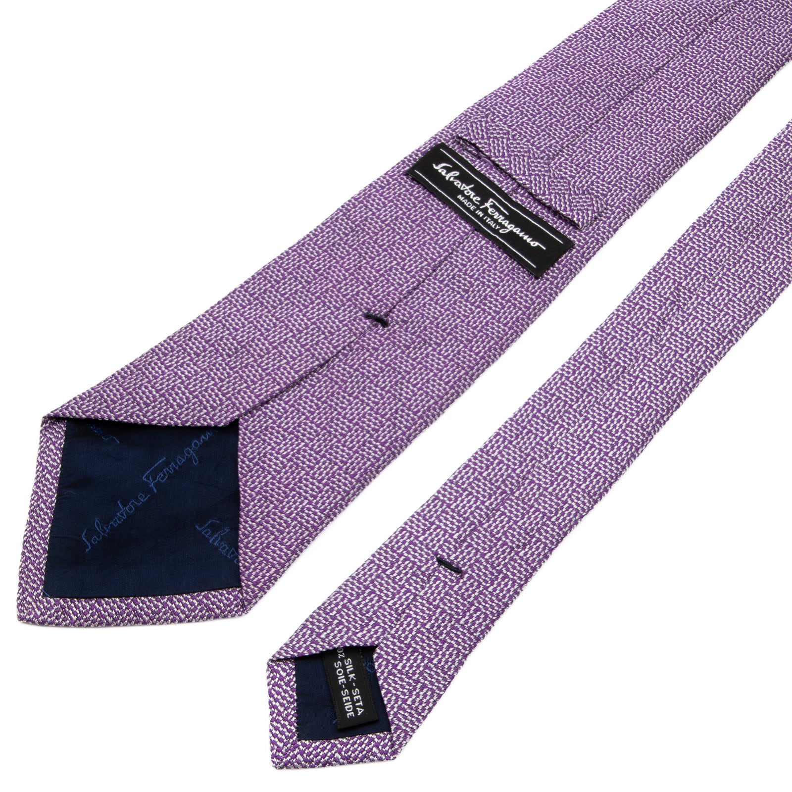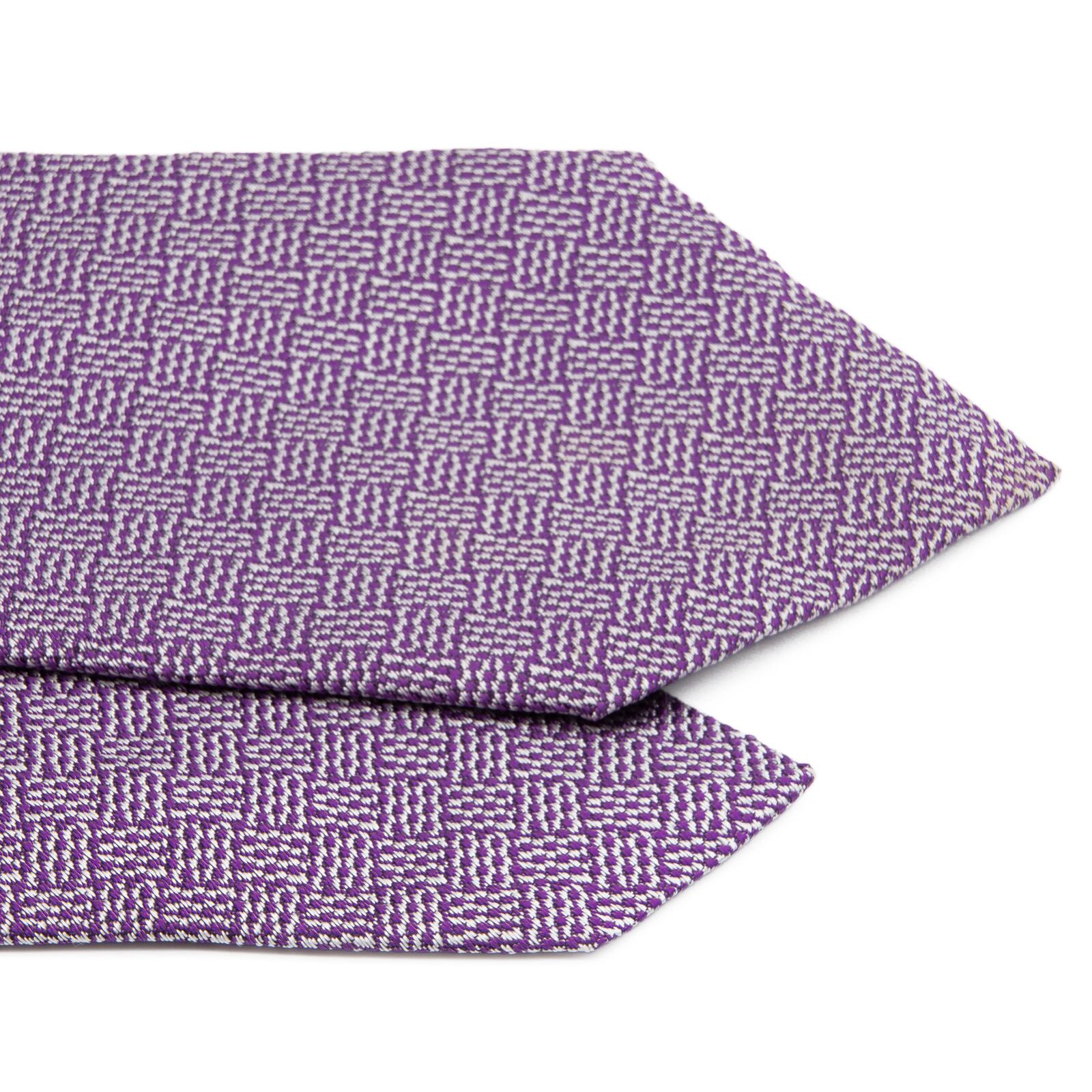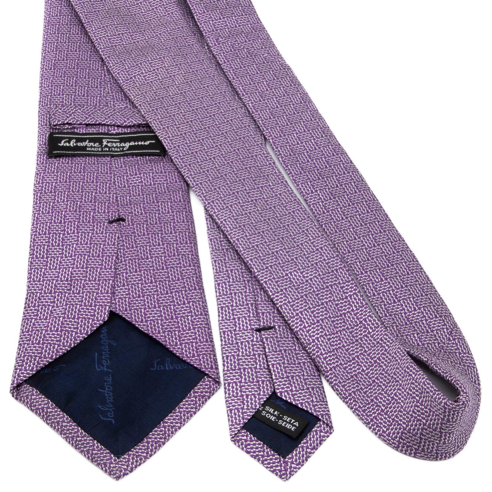 送料無料 フェラガモ ネクタイ ジャガードタイ シルク 紫 パープル シルバー 光沢 シンプル 編み込み模様 ハイブランド イタリア 綺麗 P404