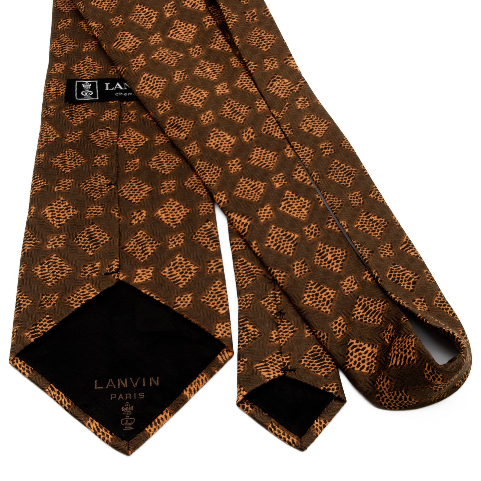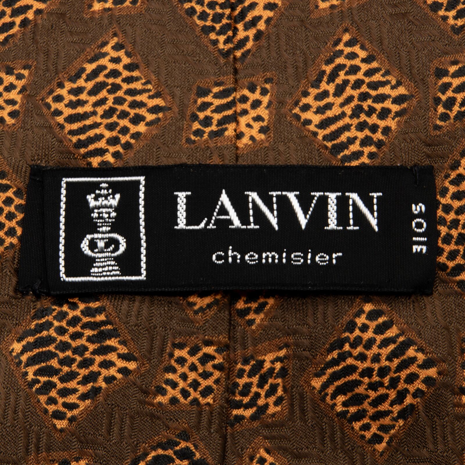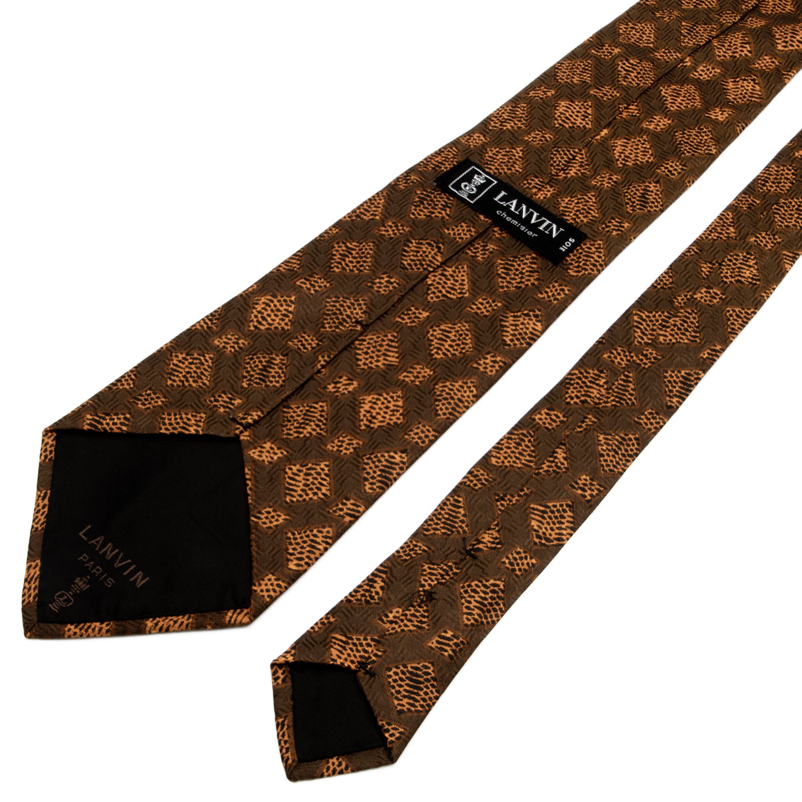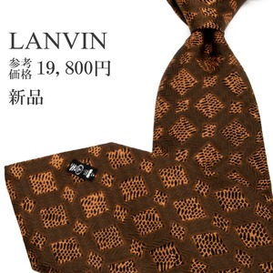 送料無料 ランバン ネクタイ ジャガード 新品 茶色 ブラウン オレンジ 黒 総柄 Y2K 光沢 ロゴ マーク 四角 ブランド フランス製 綺麗 P457