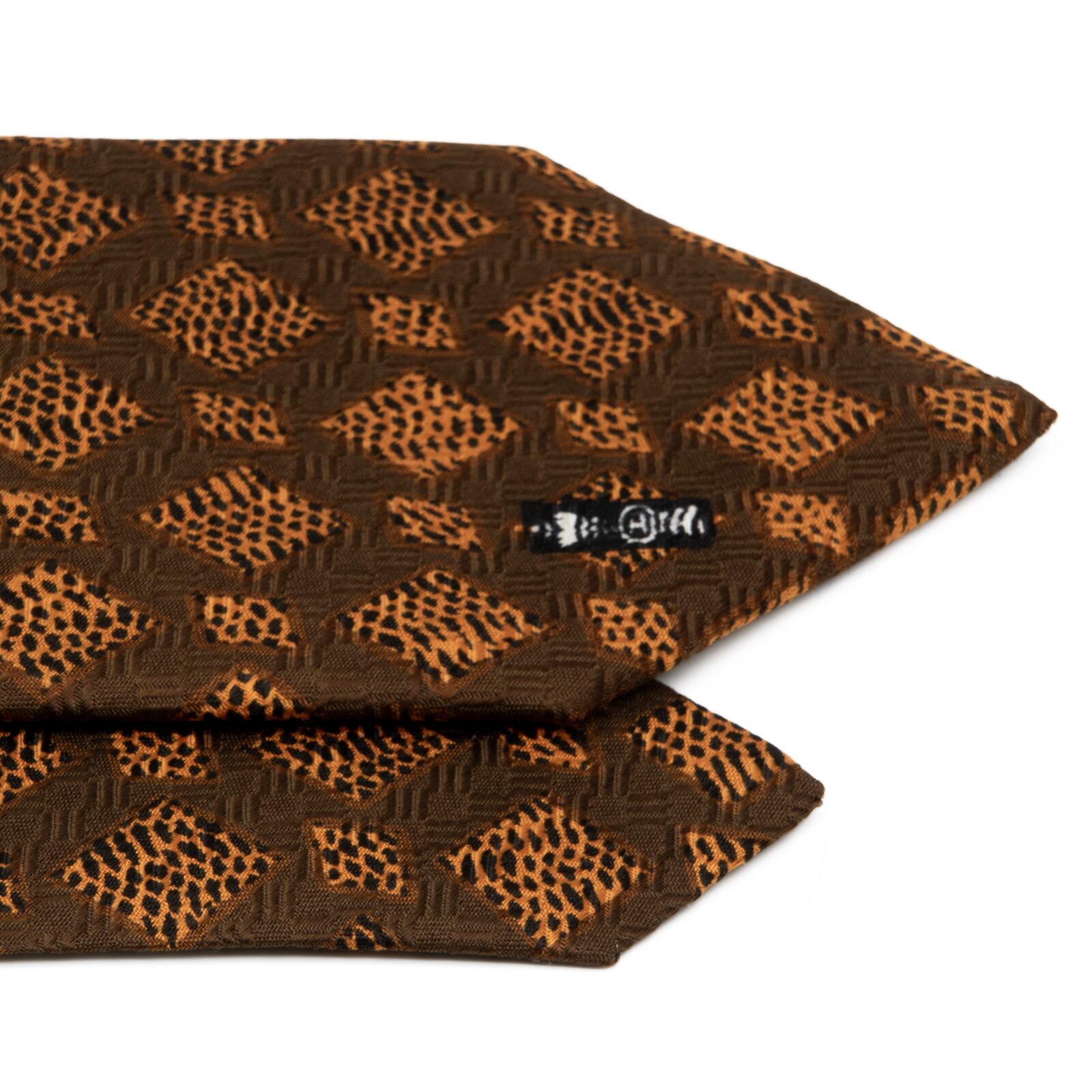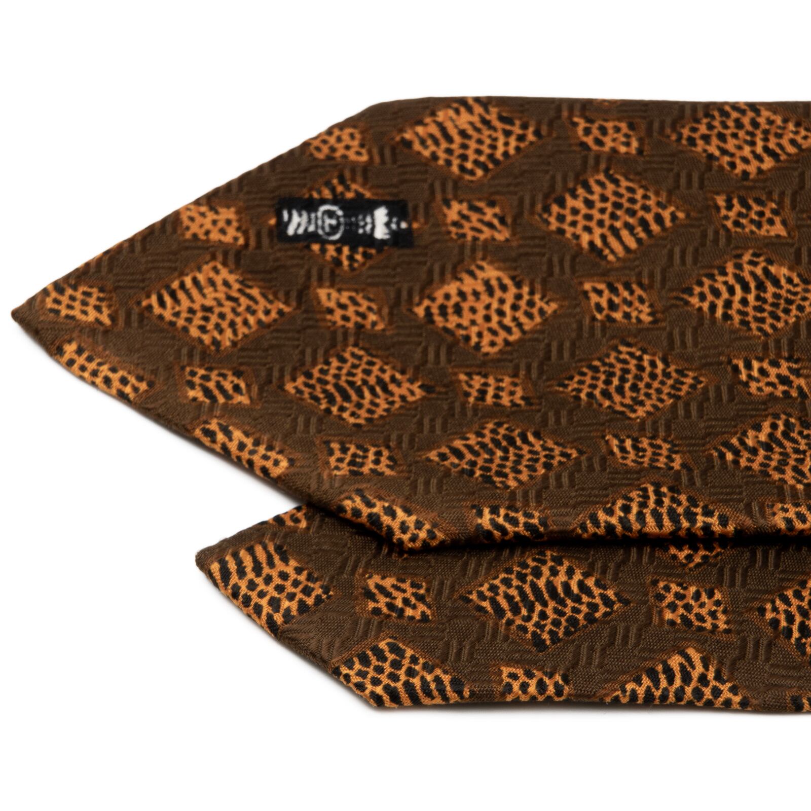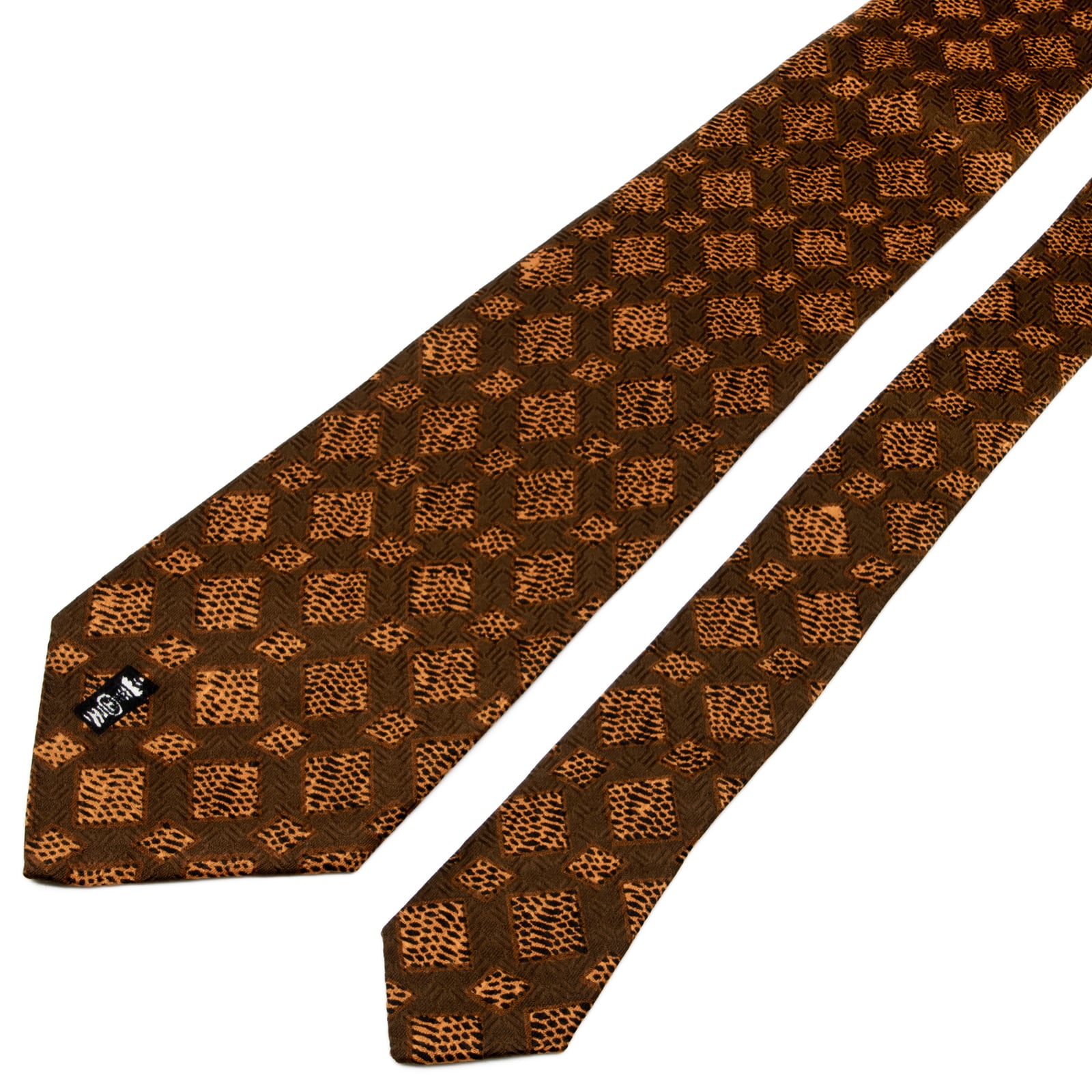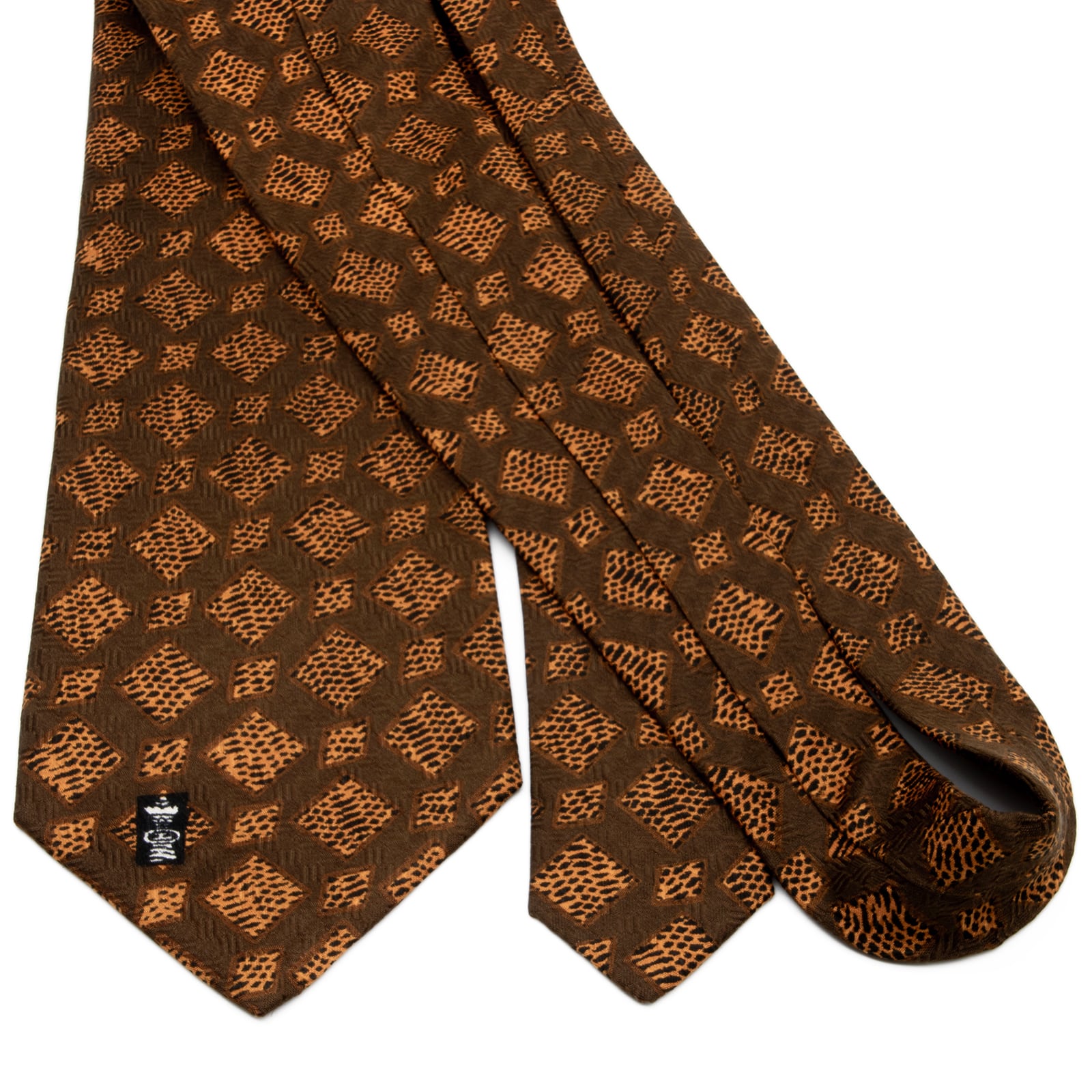 送料無料 ランバン ネクタイ ジャガード 新品 茶色 ブラウン オレンジ 黒 総柄 Y2K 光沢 ロゴ マーク 四角 ブランド フランス製 綺麗 P457