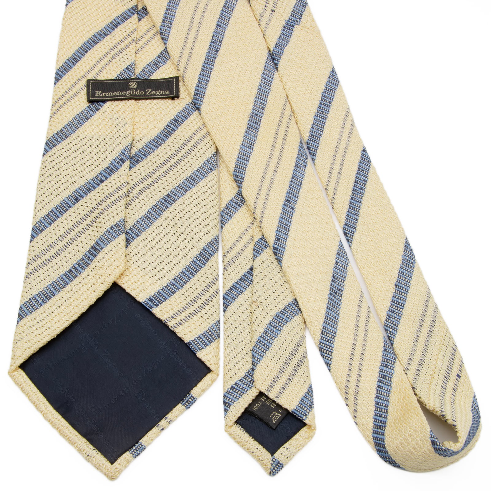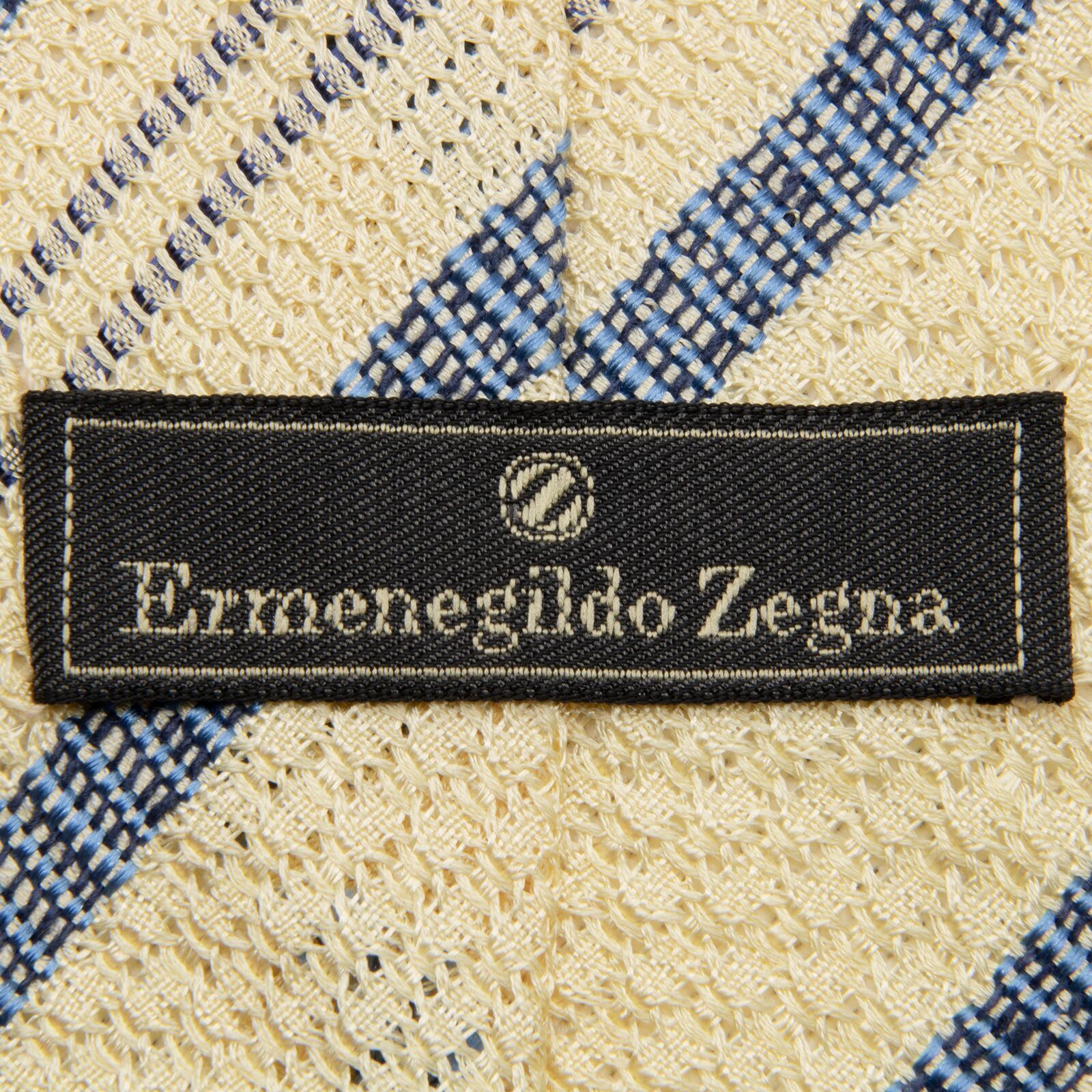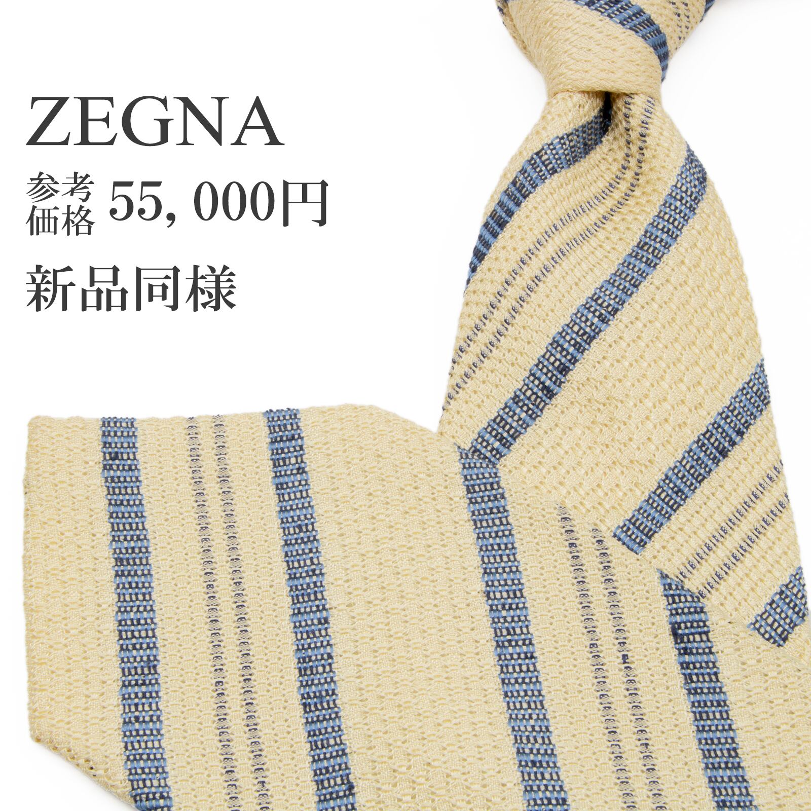 送料無料 ゼニア ネクタイ ジャガードタイ 新品同様 シルク ベージュ 青 ブルー ストライプ シンプル ハイブランド イタリア製 綺麗 P659