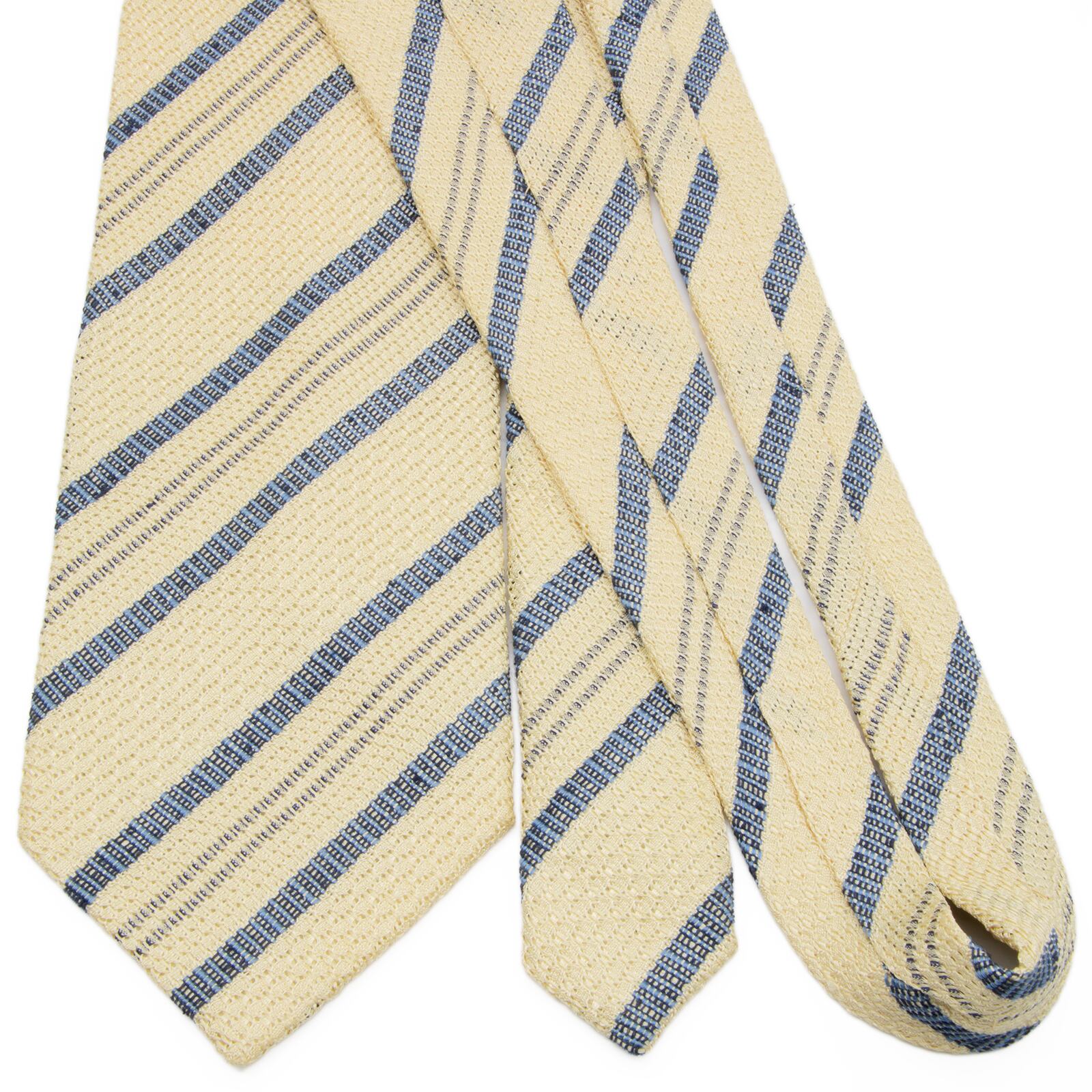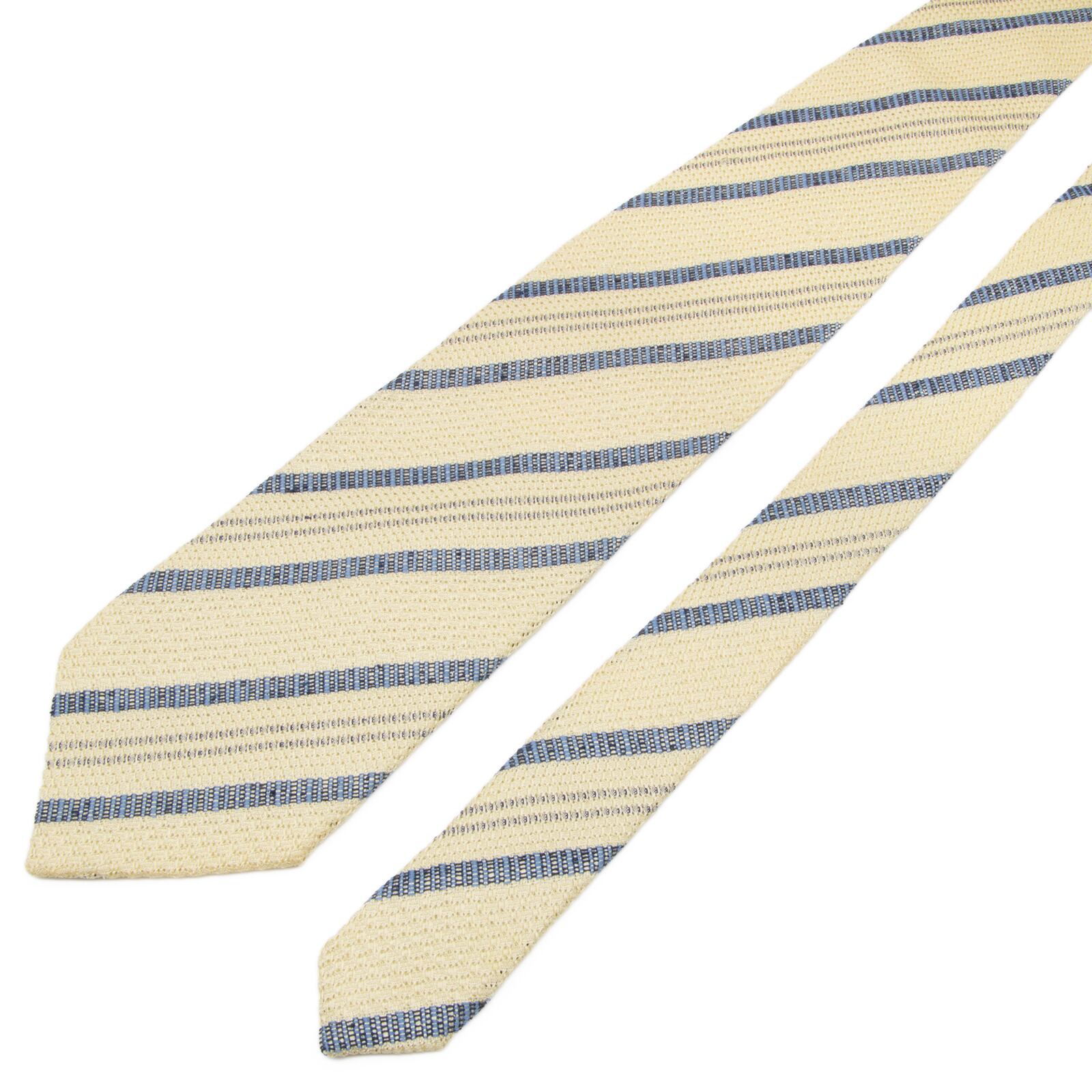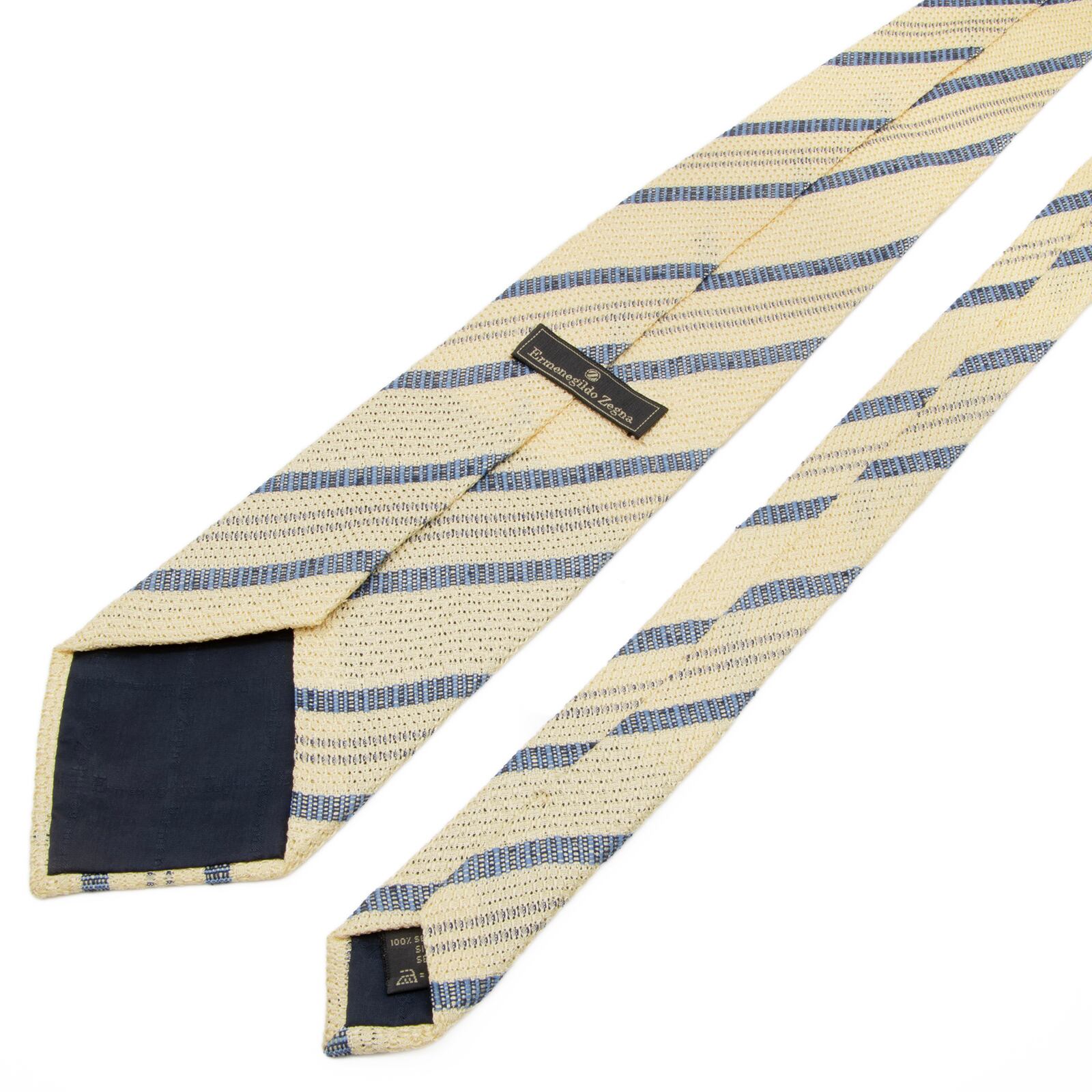 送料無料 ゼニア ネクタイ ジャガードタイ 新品同様 シルク ベージュ 青 ブルー ストライプ シンプル ハイブランド イタリア製 綺麗 P659
