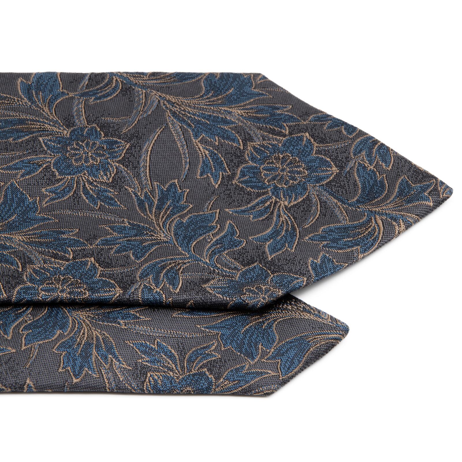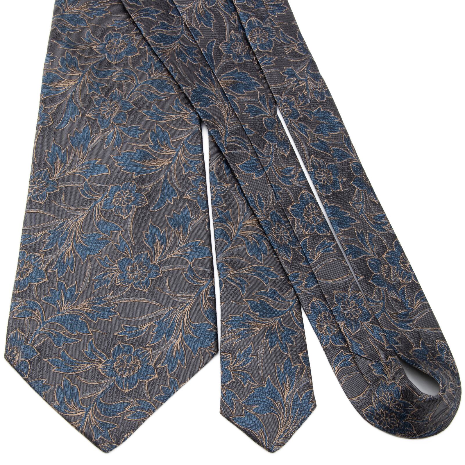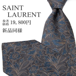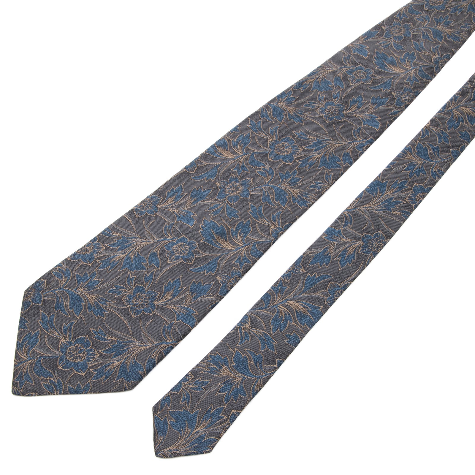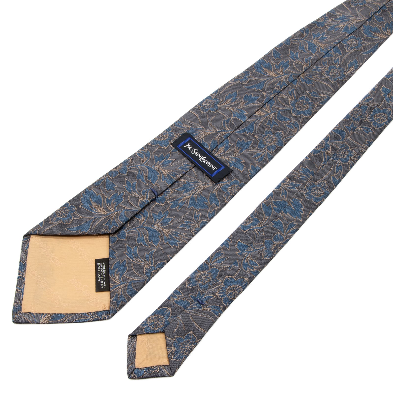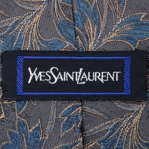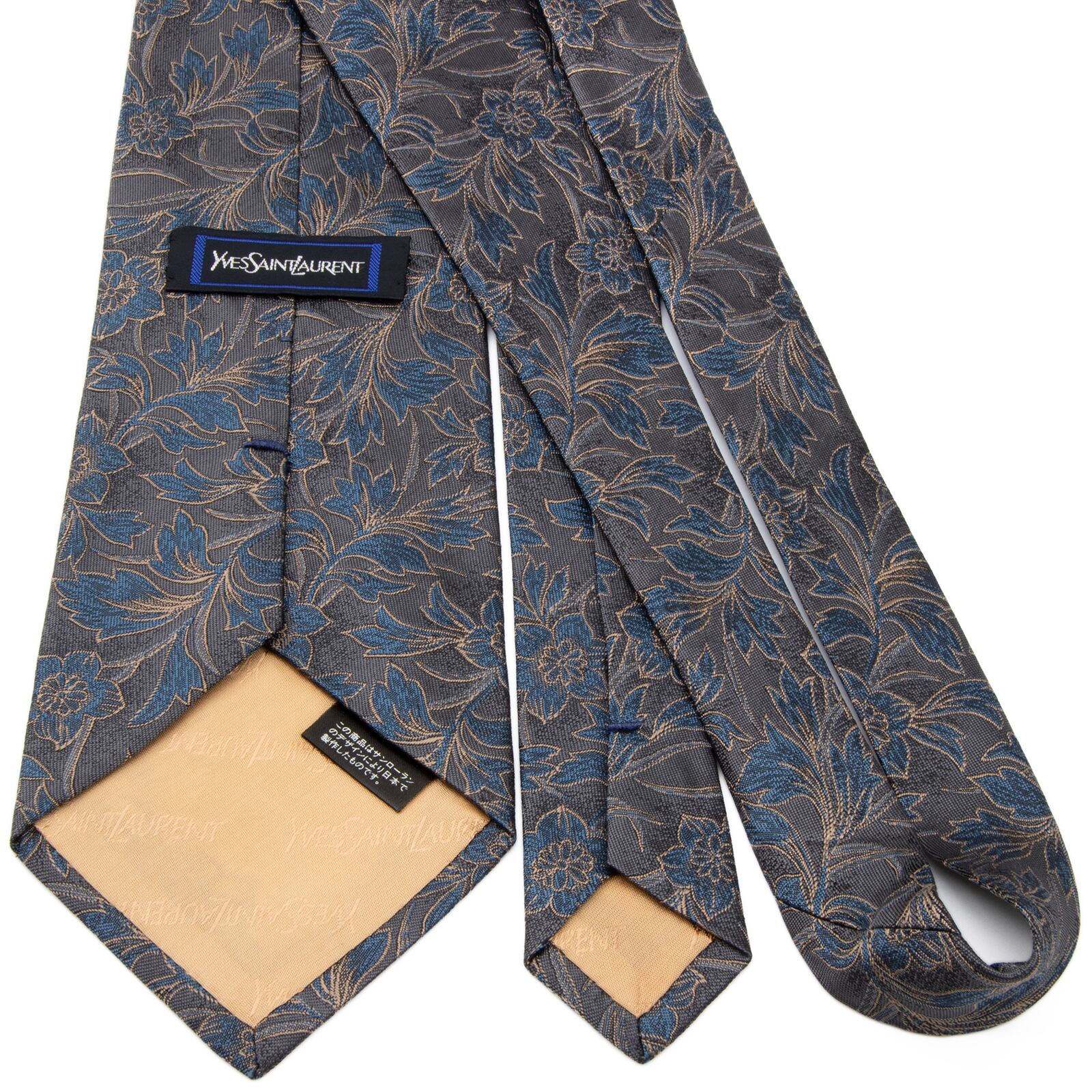 送料無料 サンローラン ネクタイ ジャガード 新品同様 シルク グレー ネイビーブルー ブロンズ 総柄 Y2K 光沢 花 ハイブランド 綺麗 P678