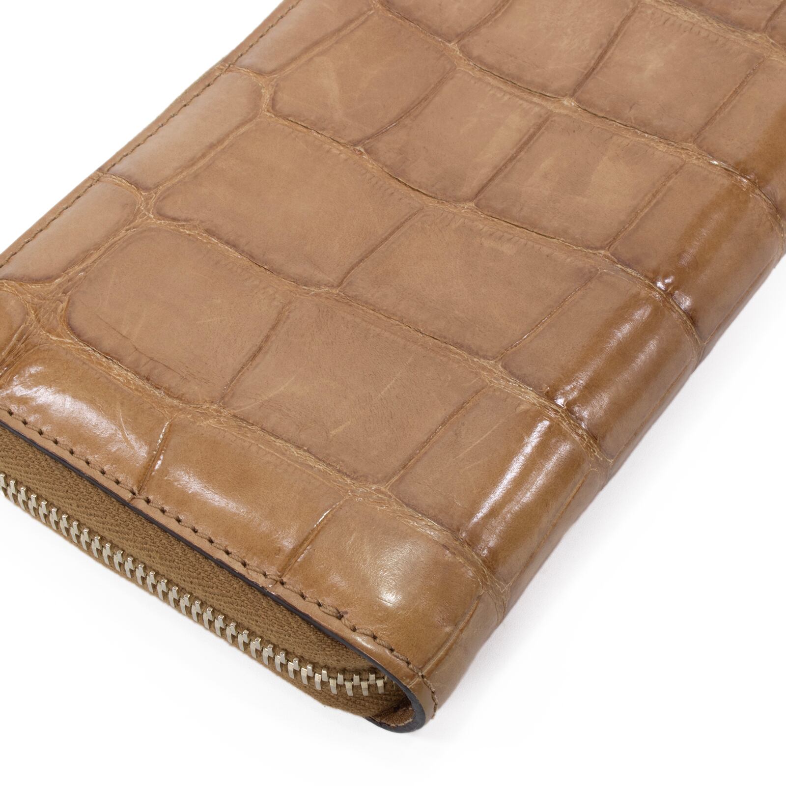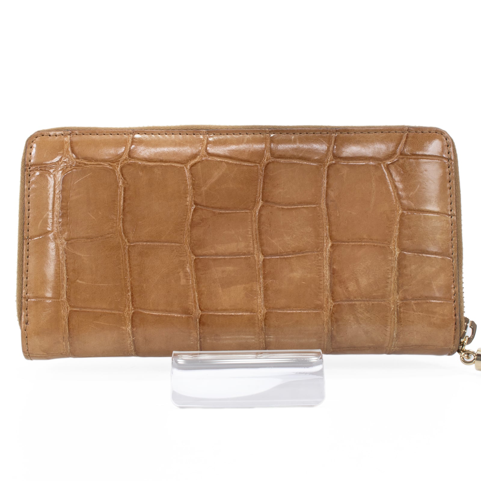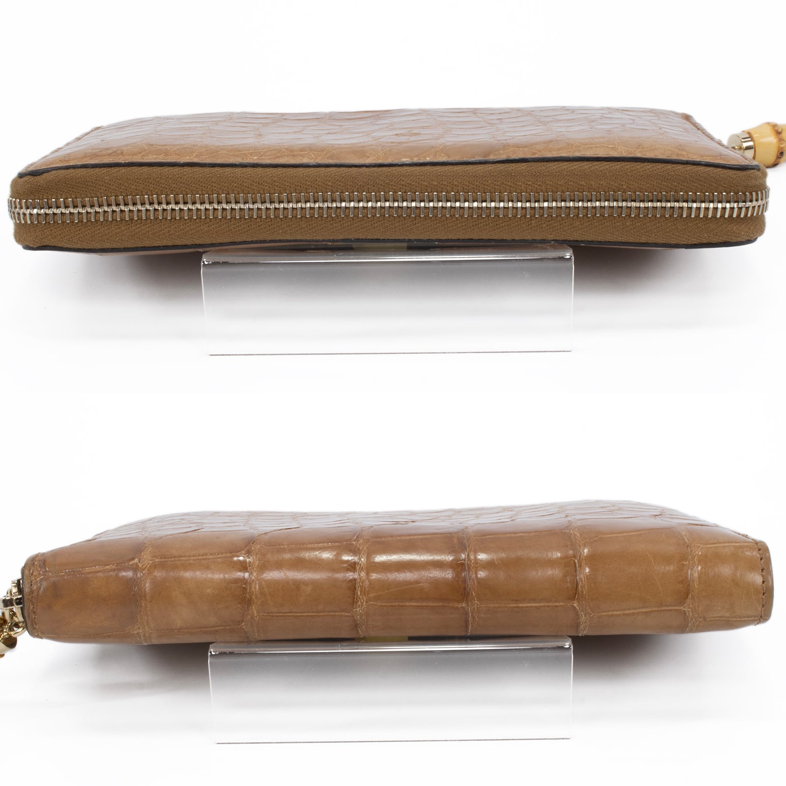 本物 送料無料 グッチ 長財布 ラウンドファスナー メンズ レディース クロコダイル 茶色 ブラウン 珍しい ワニの革 バンブー タッセル C238