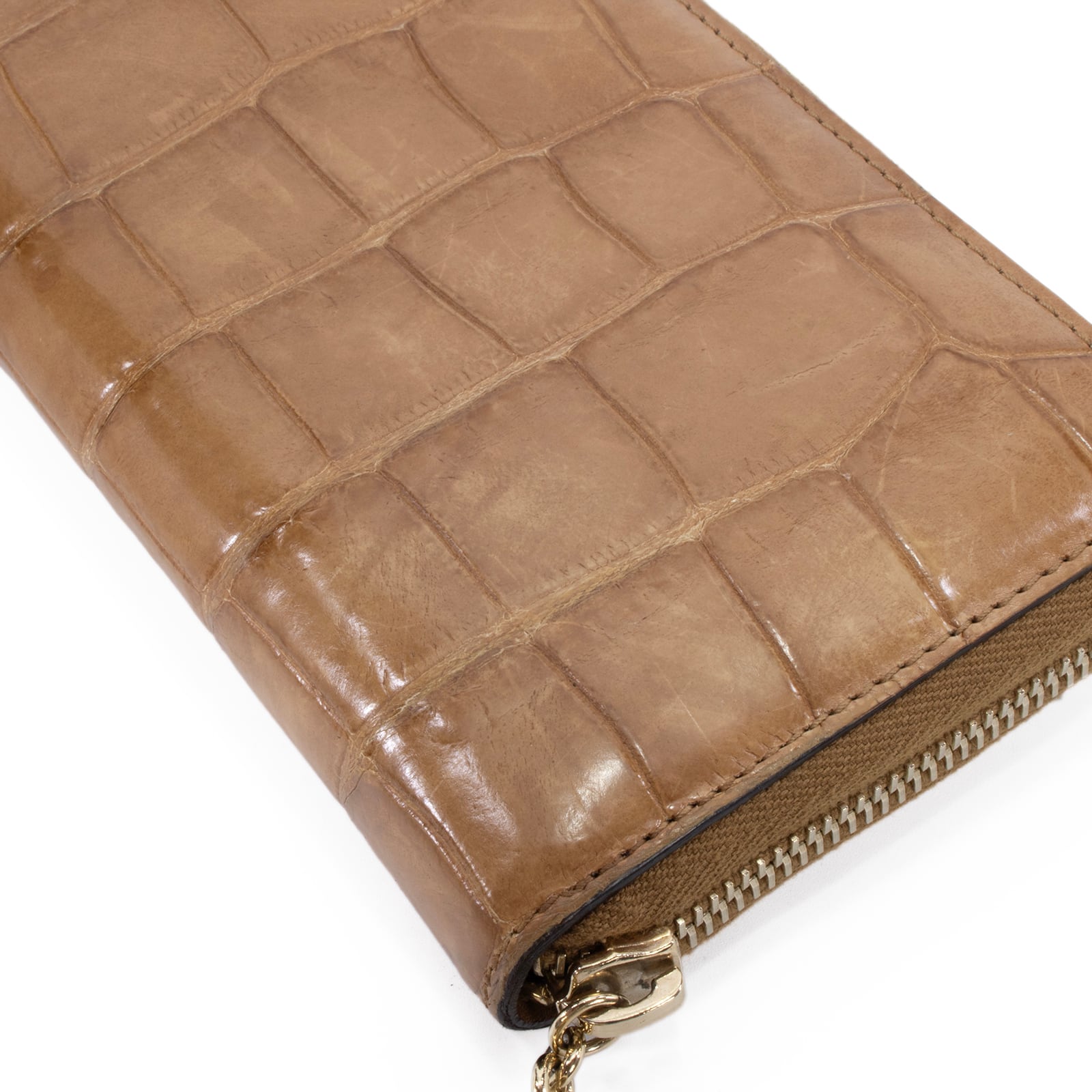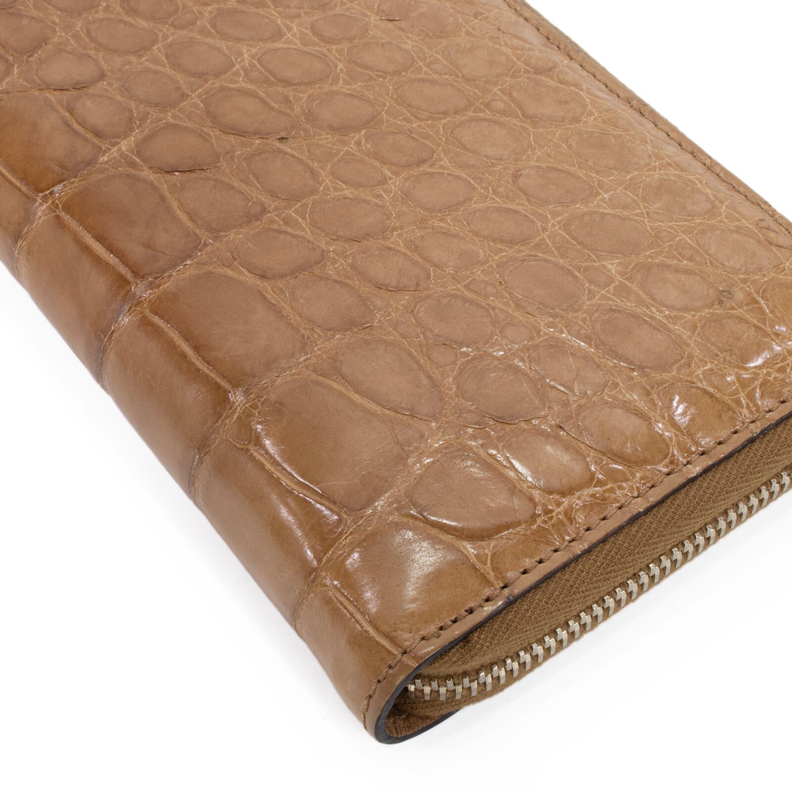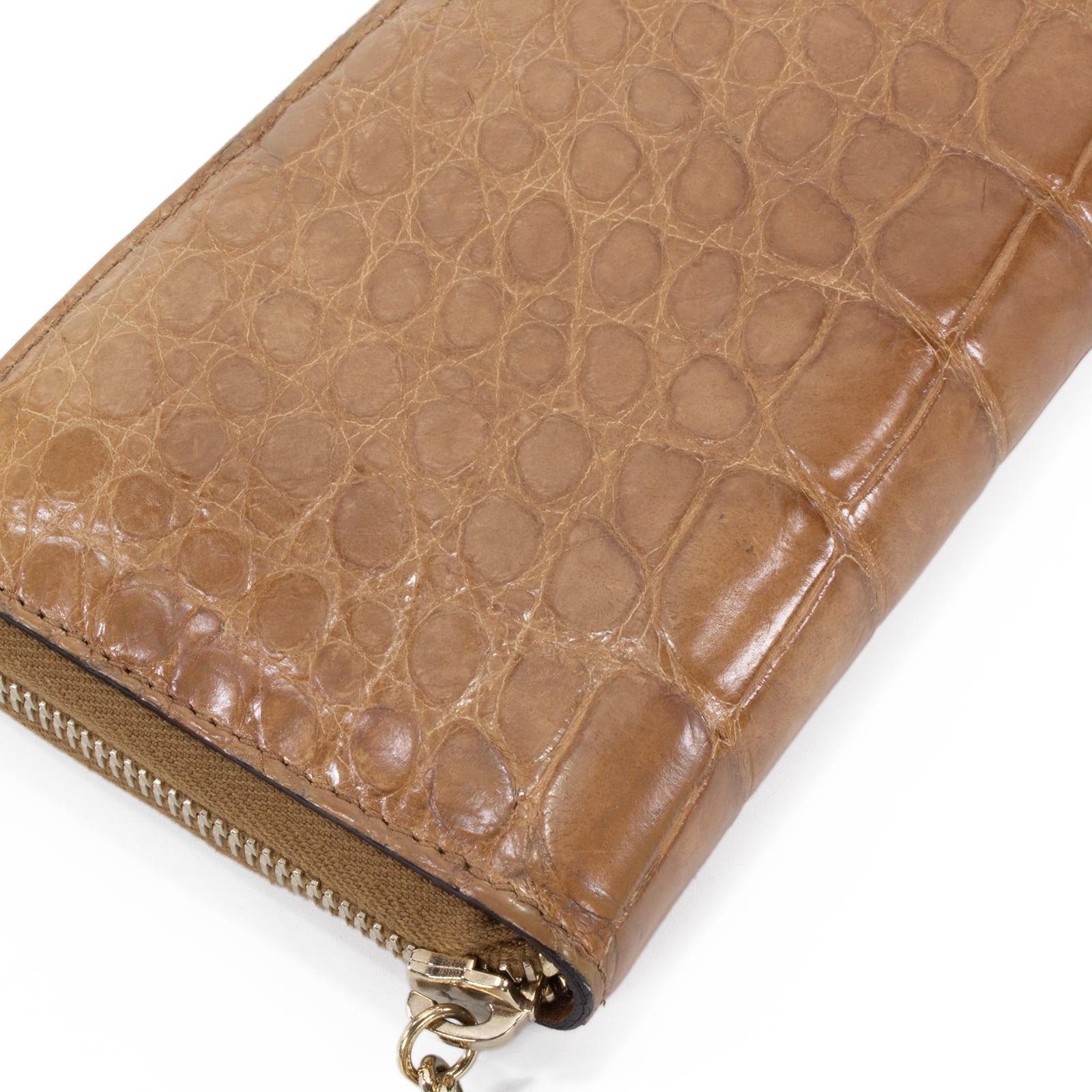 本物 送料無料 グッチ 長財布 ラウンドファスナー メンズ レディース クロコダイル 茶色 ブラウン 珍しい ワニの革 バンブー タッセル C238