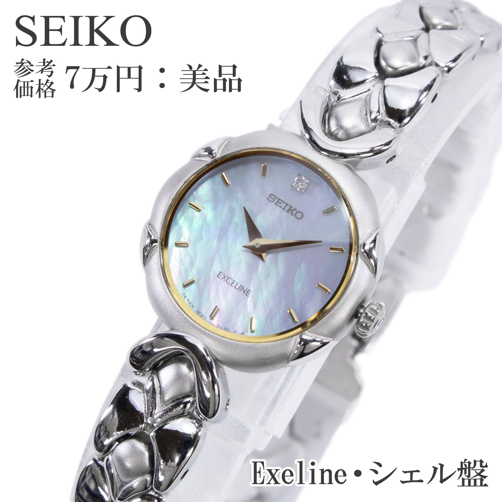 稼働品 送料無料 セイコー 腕時計 クォーツ 2針 レディース エクセリーヌ 1F20-1C40 青 ピンク シェル盤 ダイヤモンド ブランド 綺麗 X448