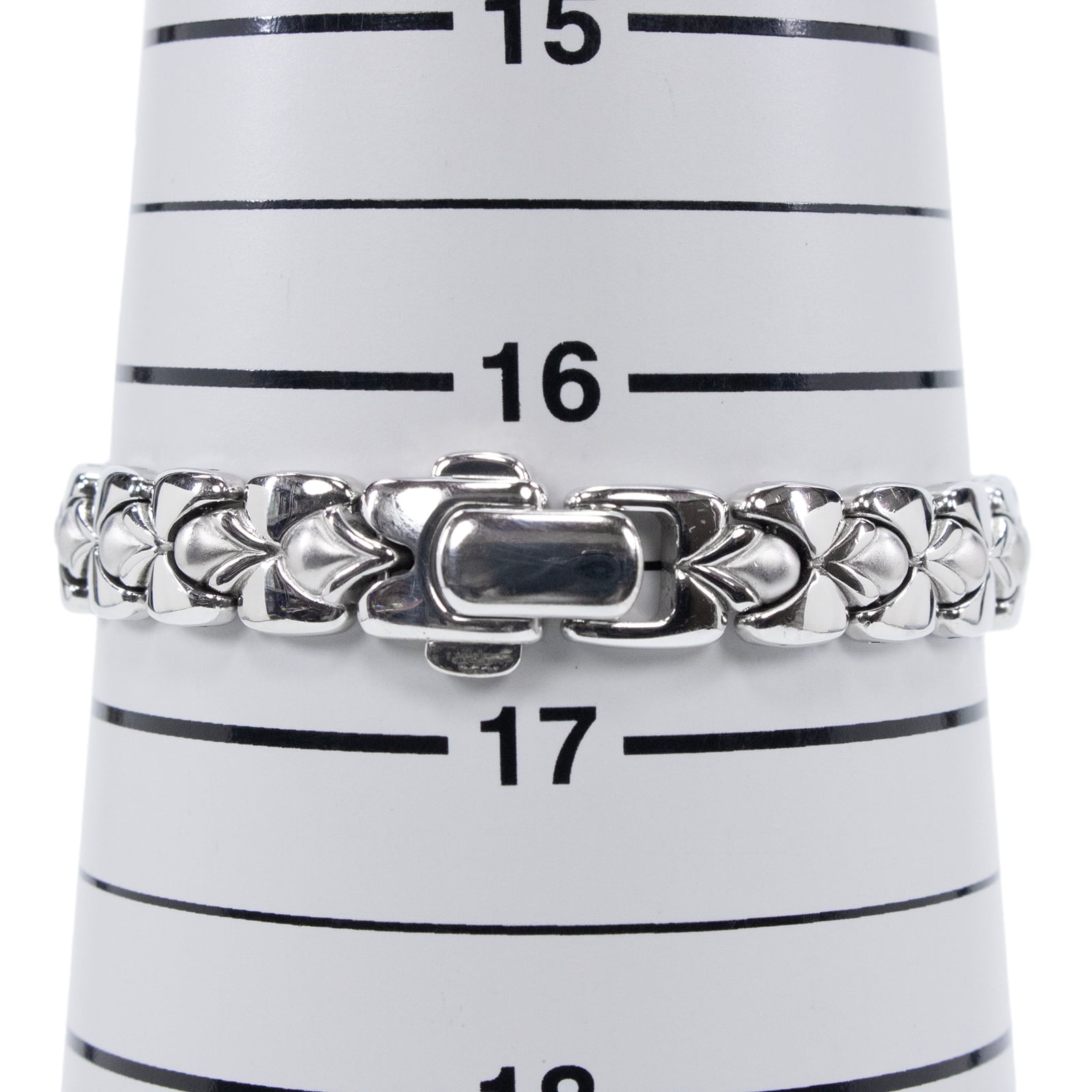ケース側面やベルトの一部にシルバー925を使用しており、深みのある光沢が特徴です。