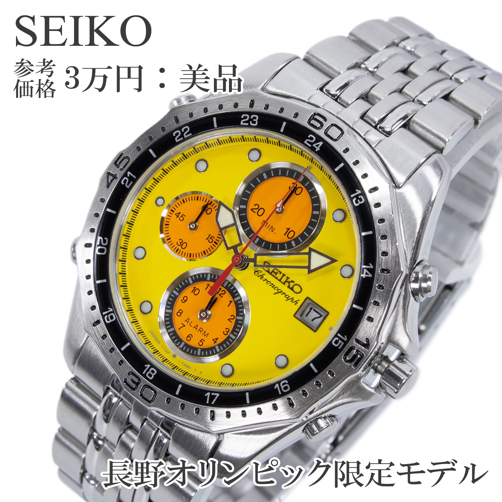 稼働品 送料無料 セイコー 腕時計 クォーツ メンズ 長野オリンピック限定 7T32-7C70 SZQT001 黄色 クロノグラフ Y2K ロゴ ブランド X449
