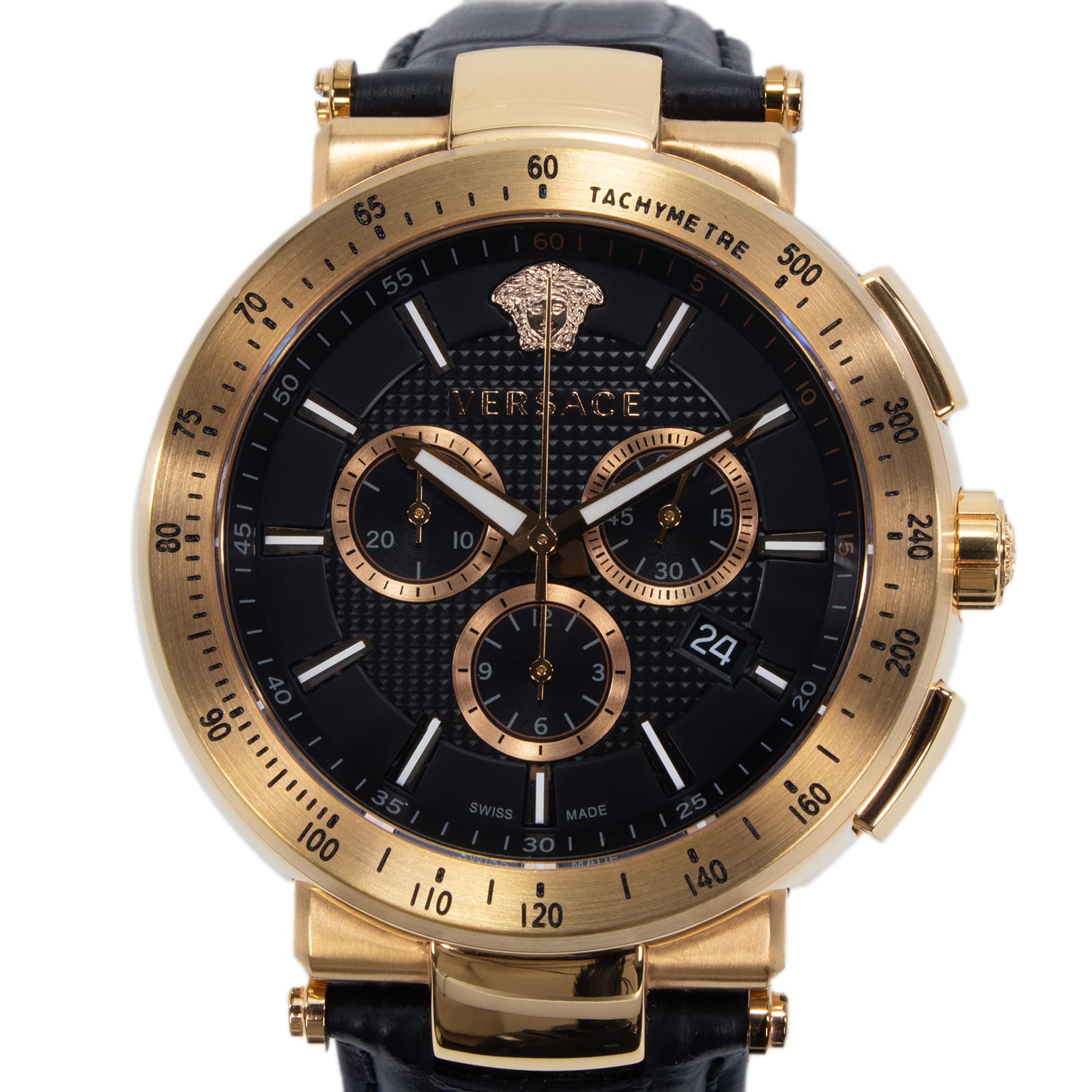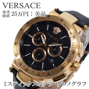 稼働品 送料無料 ヴェルサーチェ 腕時計 クォーツ メンズ ミスティックスポーツ VFG140016 黒 ゴールド クロノグラフ メドゥーサロゴ Q206