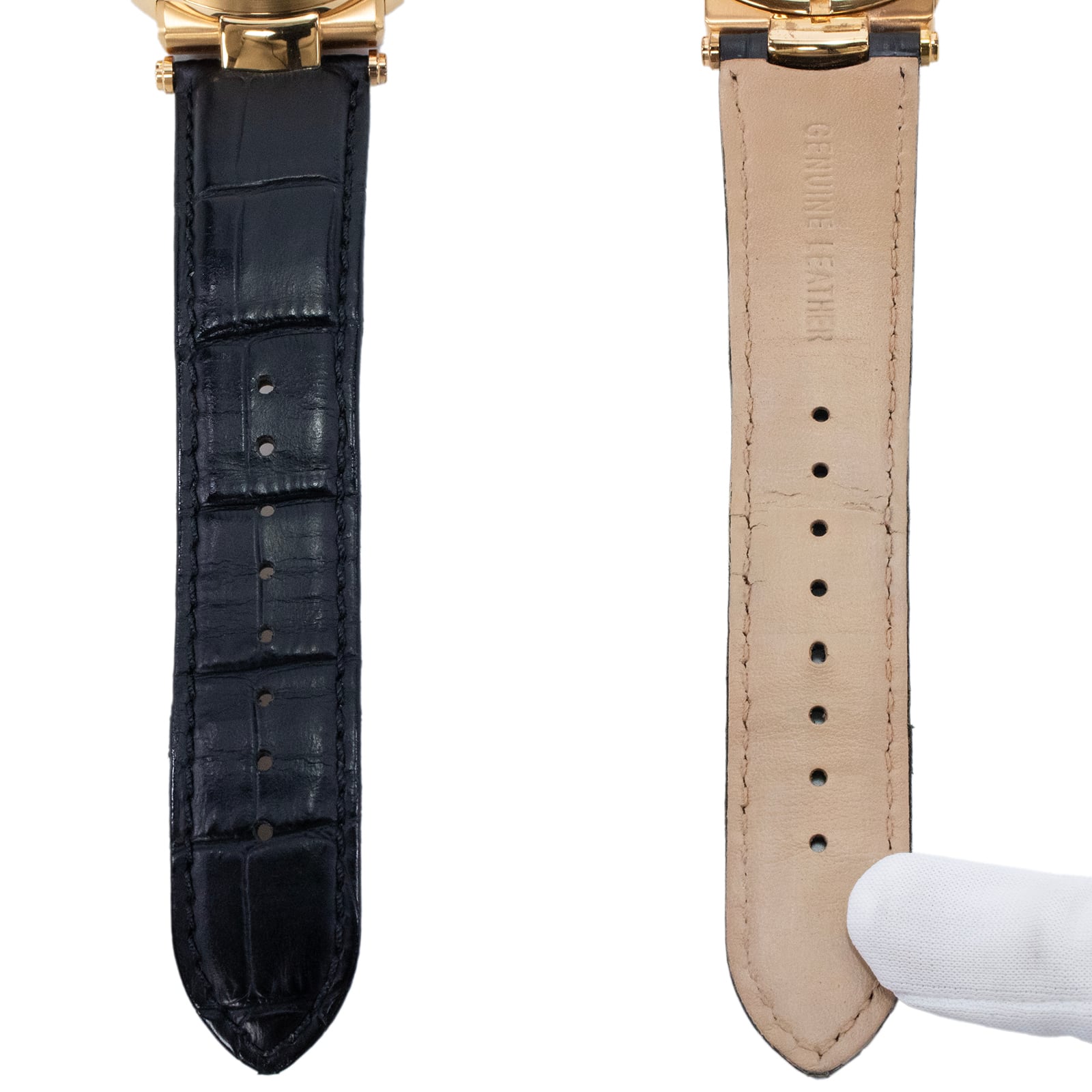 文字盤に施された繊細なギョーシェ彫りと、ゴールドの重厚な輝きが、大人の余裕と遊び心を演出しております。