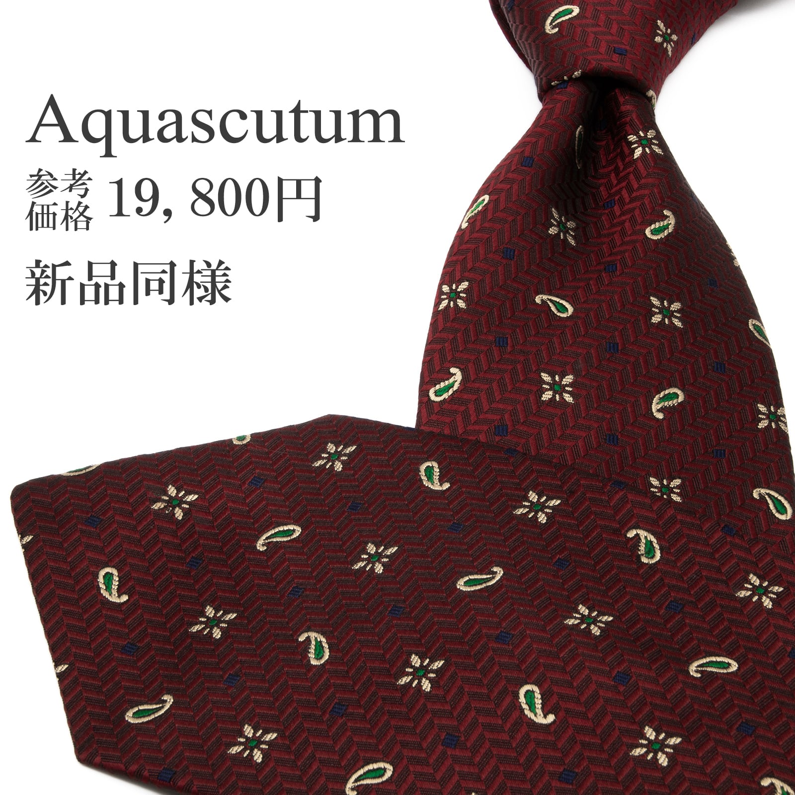 送料無料 アクアスキュータム ネクタイ ジャガード 新品同様 赤 ワインレッド ゴールド 緑 ネイビーブルー ペイズリー ハイブランド P654