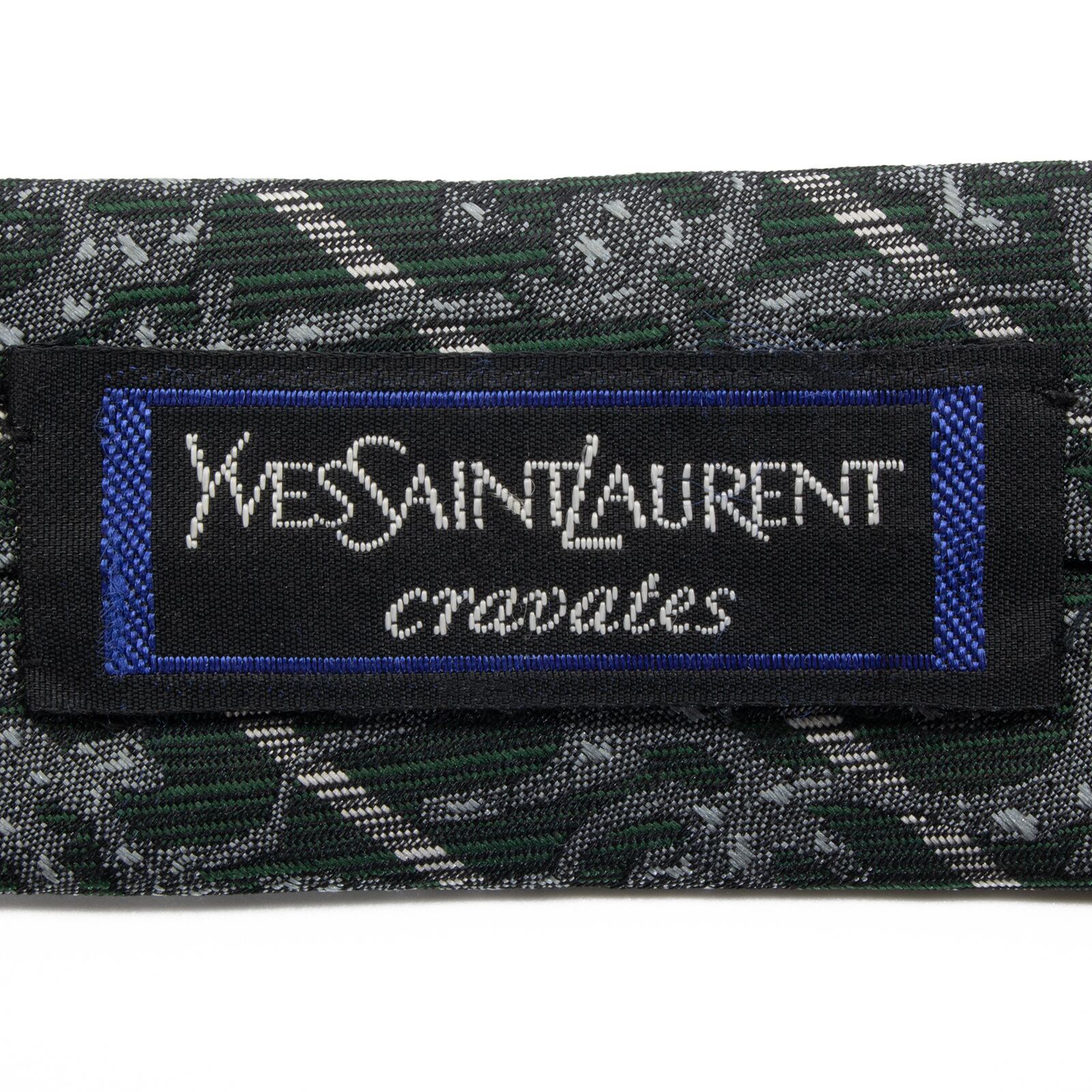 送料無料 サンローラン ネクタイ レギュラータイ ジャガード 新品 緑 グレーブルー シルバー ストライプ 光沢 Y2K ハイブランド 綺麗 S556