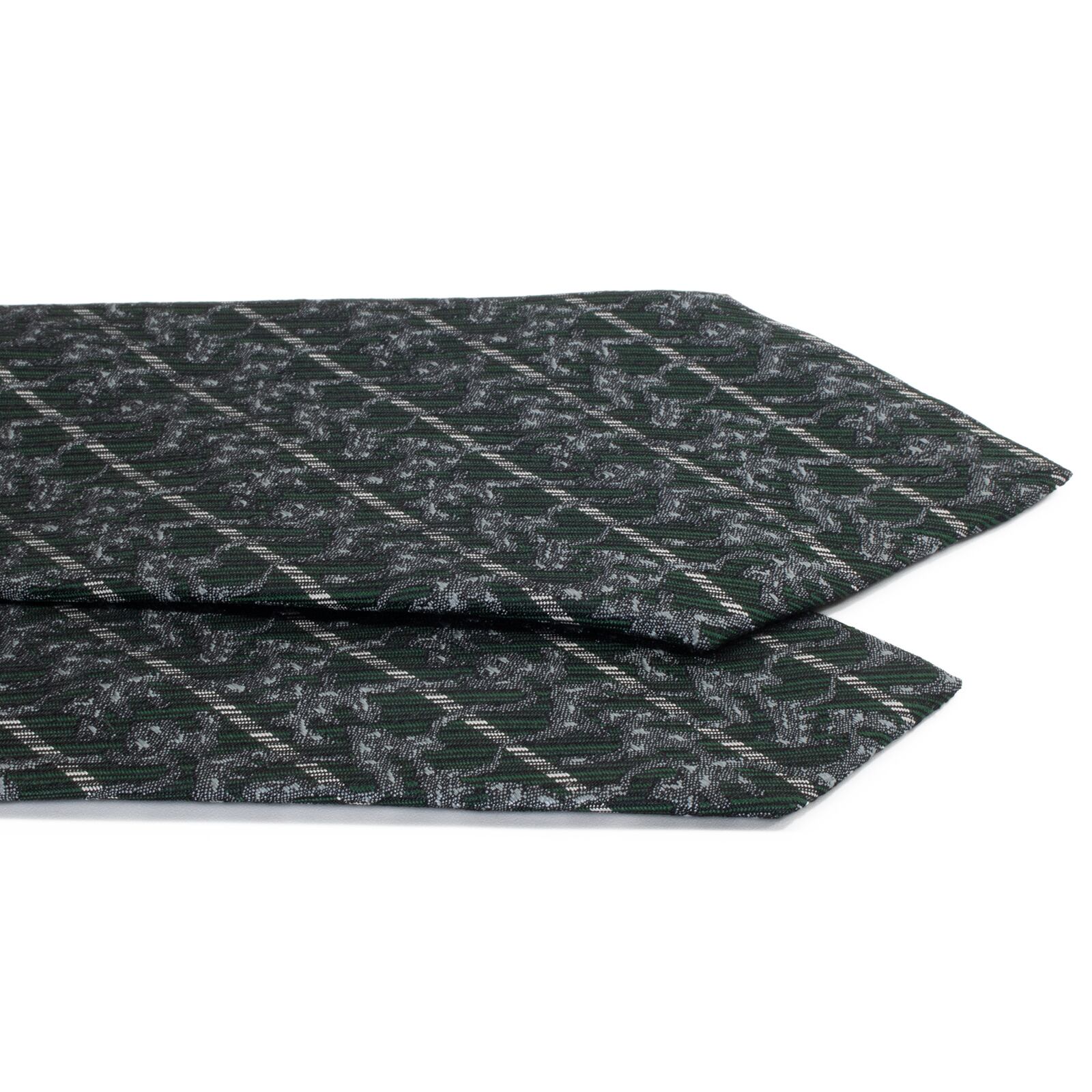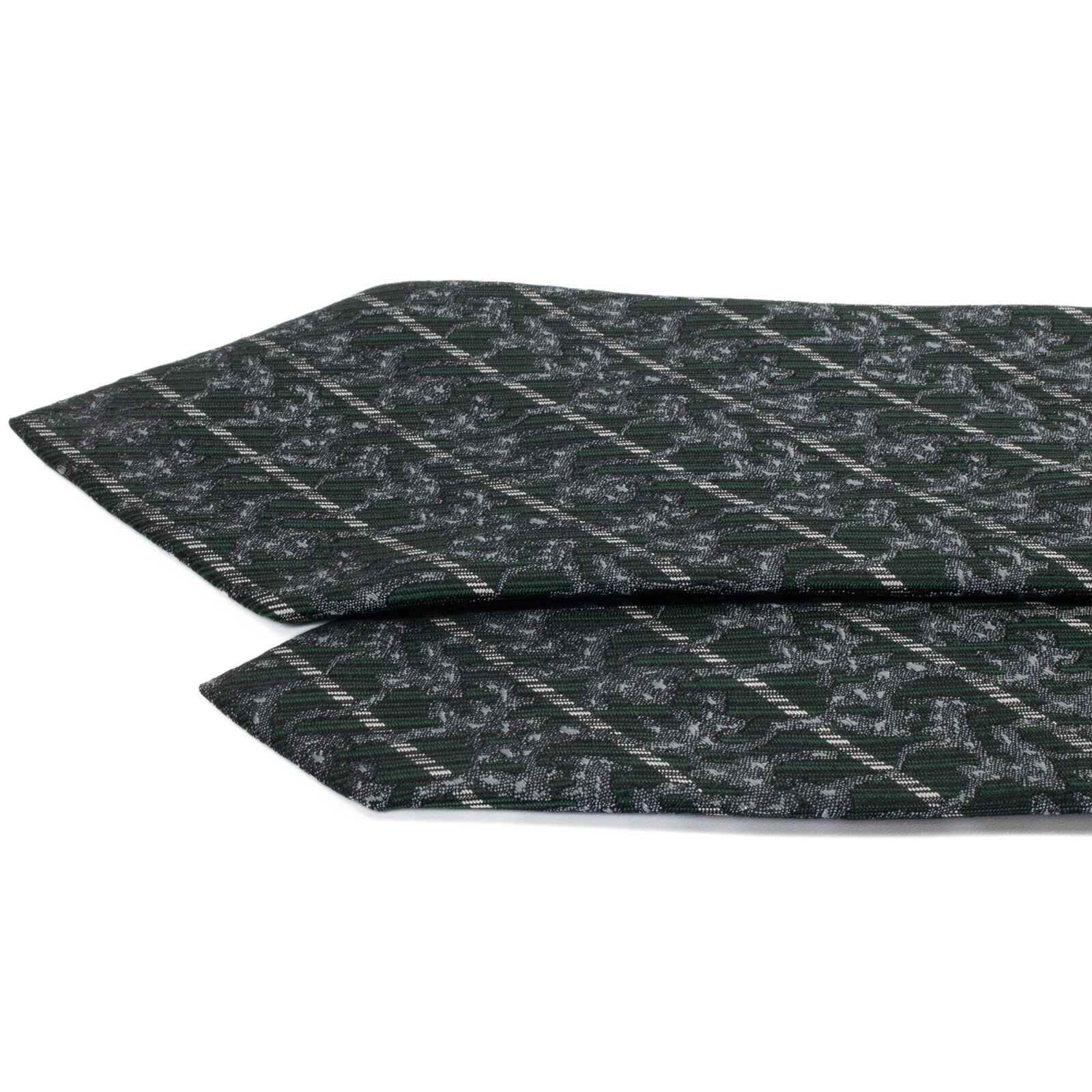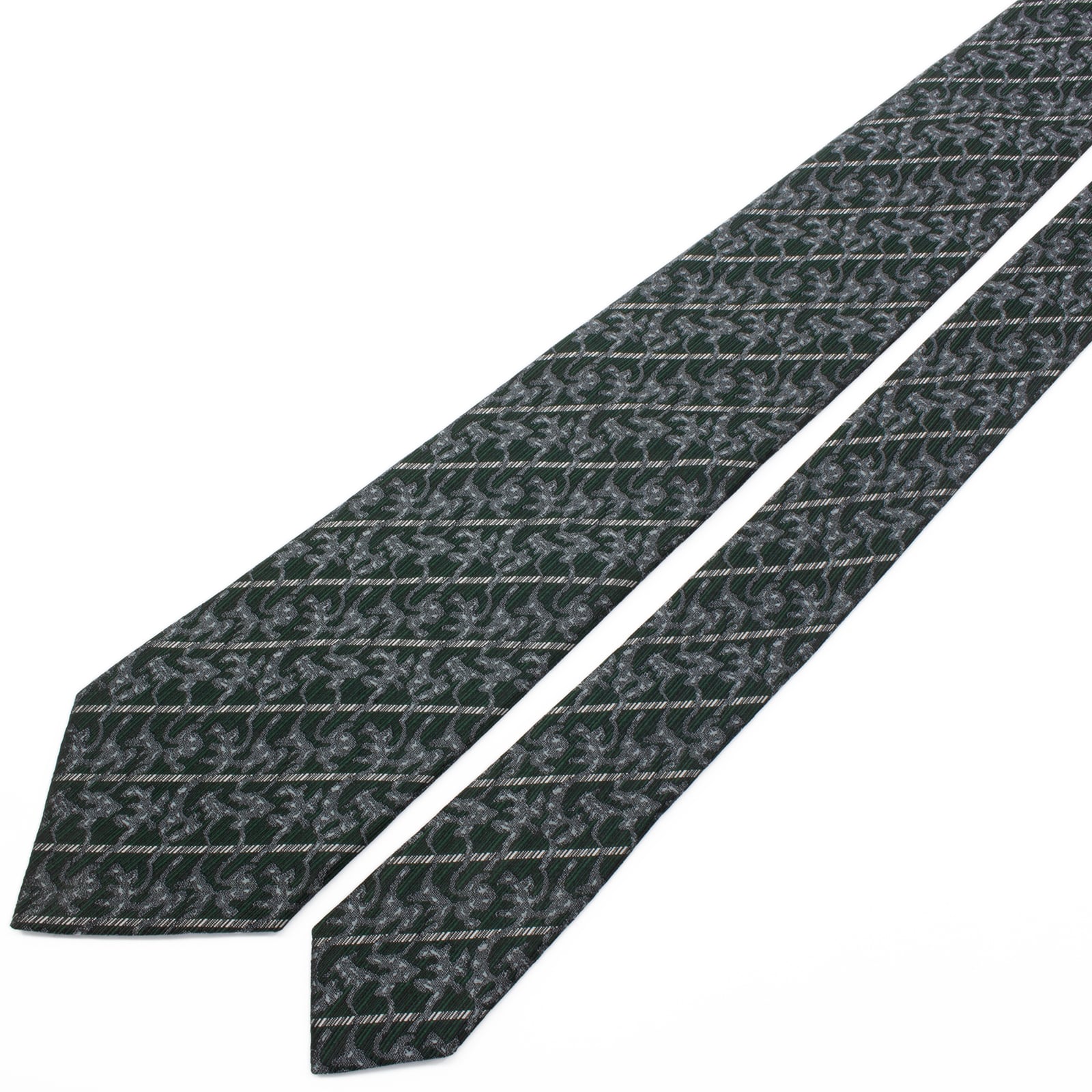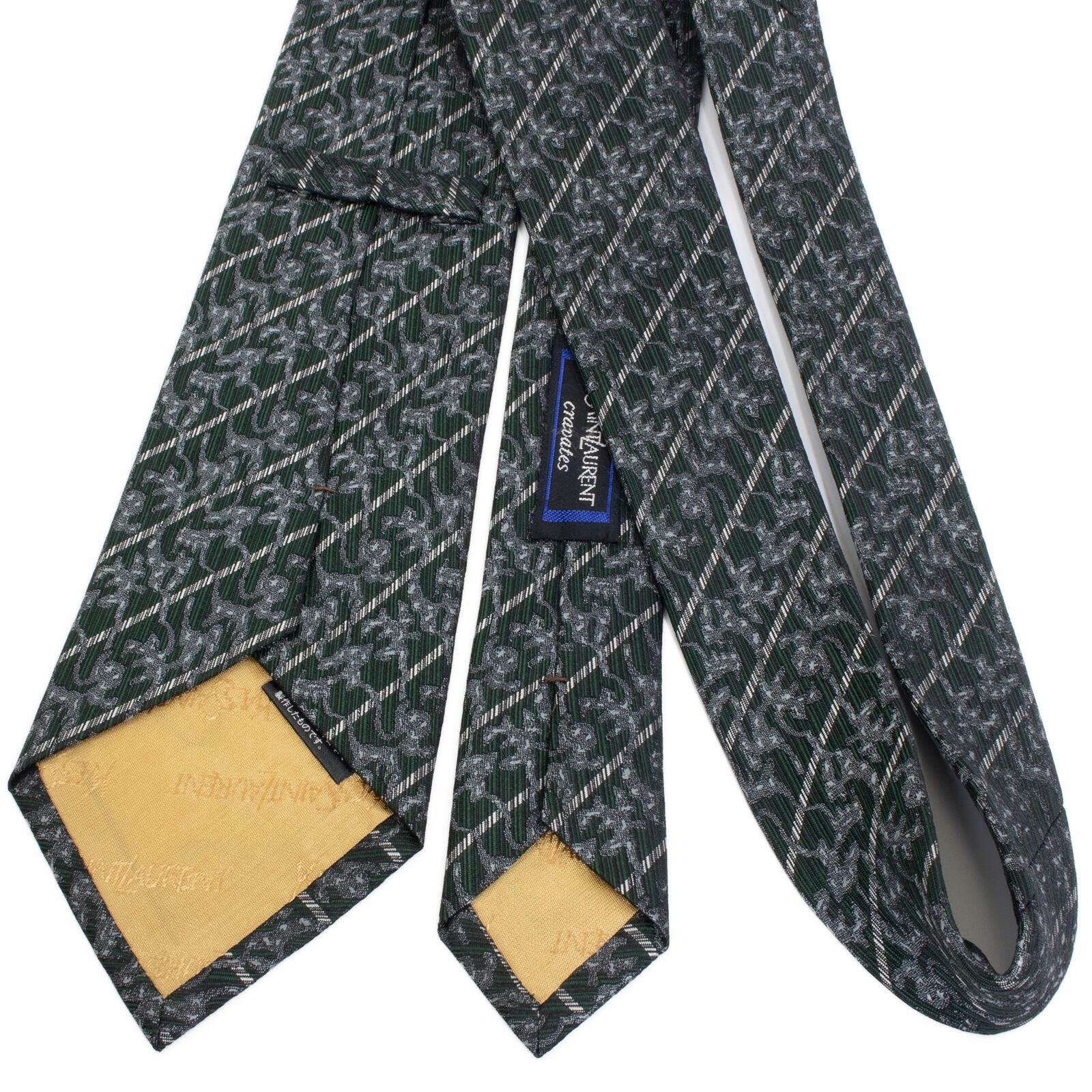 こちらは、深みのあるグリーンとシルバーのストライプが知的な、サンローランのネクタイでございます。