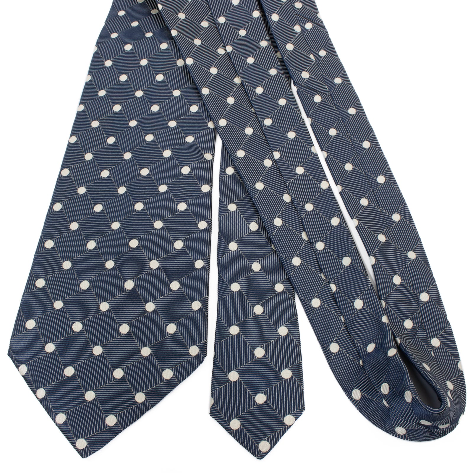 送料無料 フェンディ ネクタイ ジャガードタイ シルク 青 ブルー シルバー ドット 光沢 四角 スクエア ハイブランド イタリア製 綺麗 S562