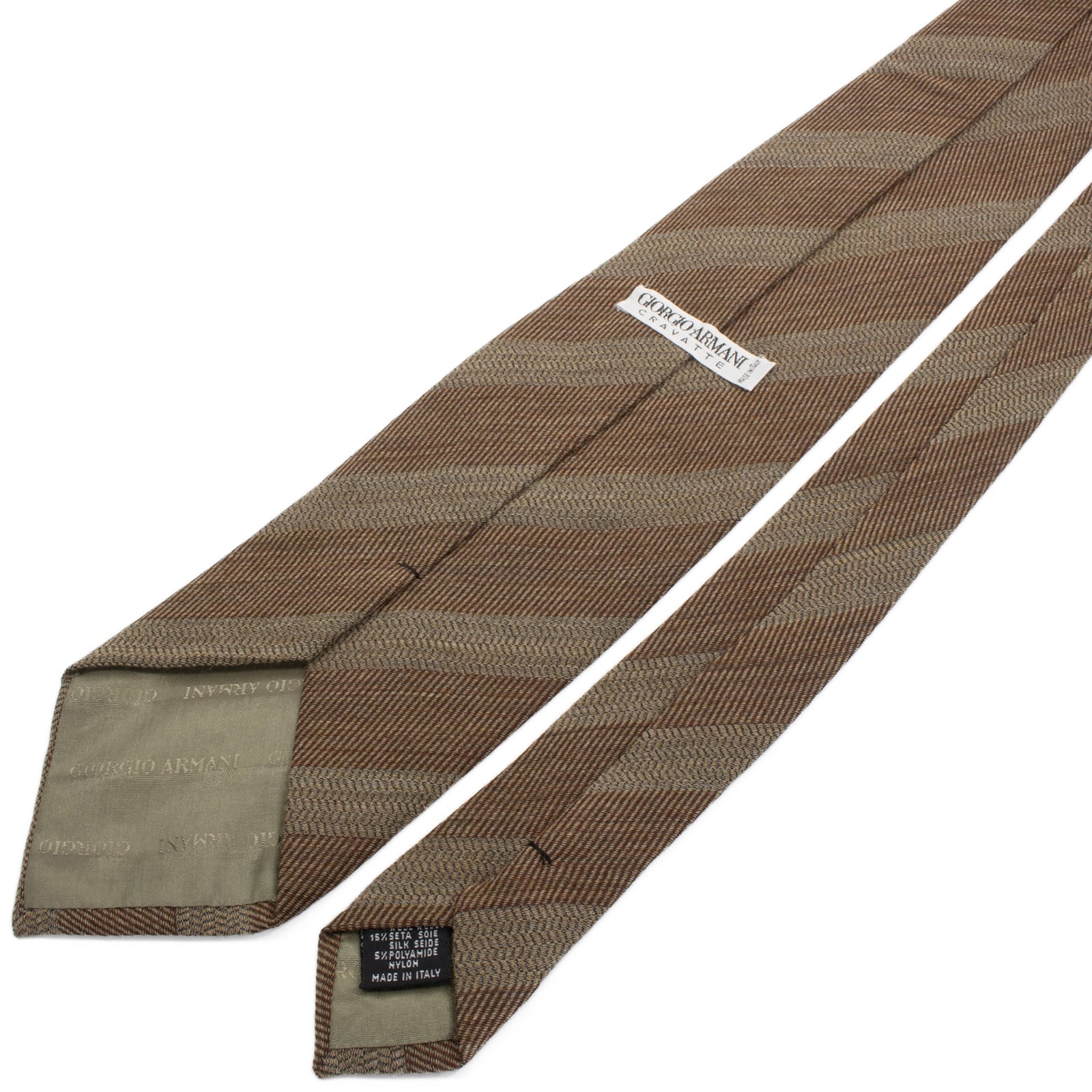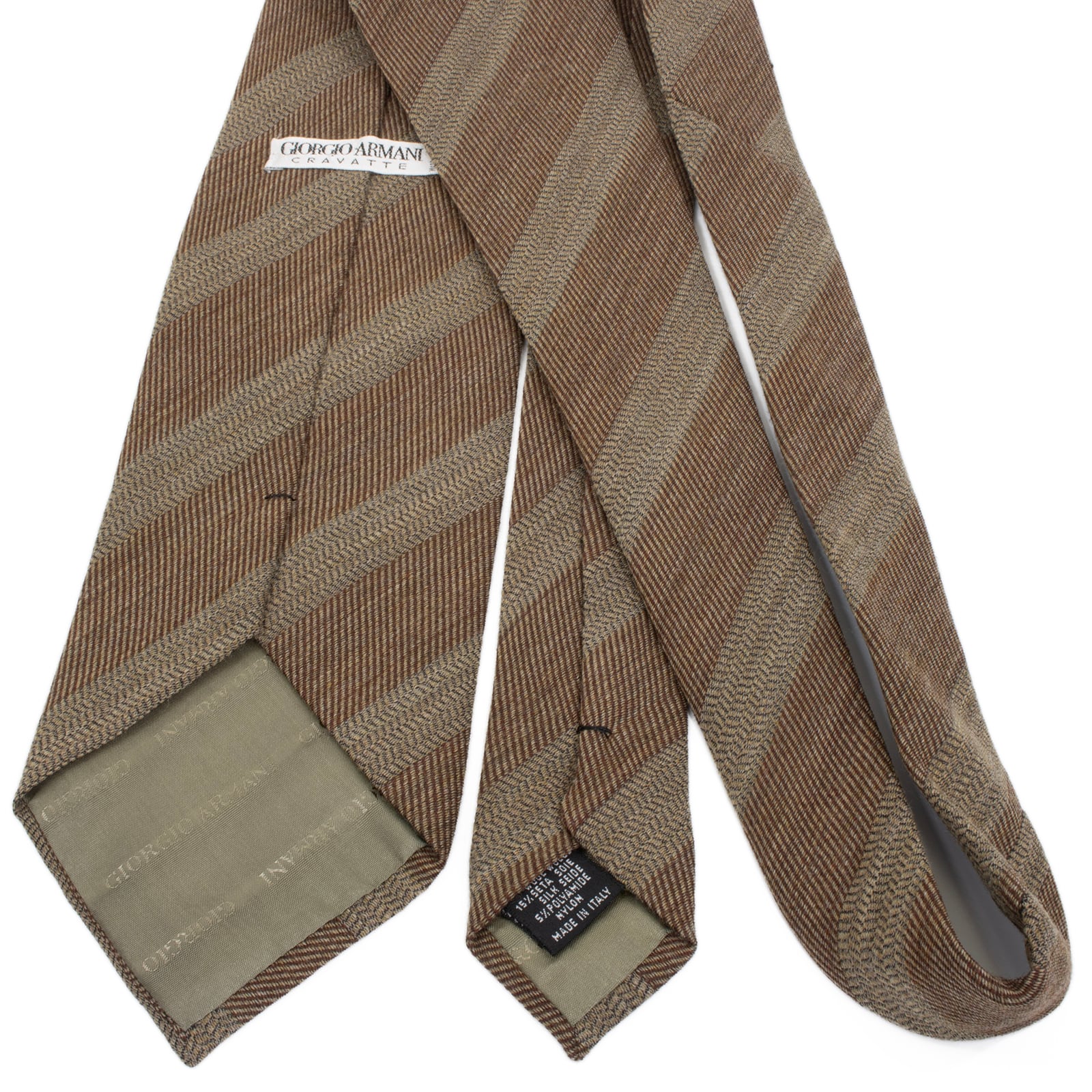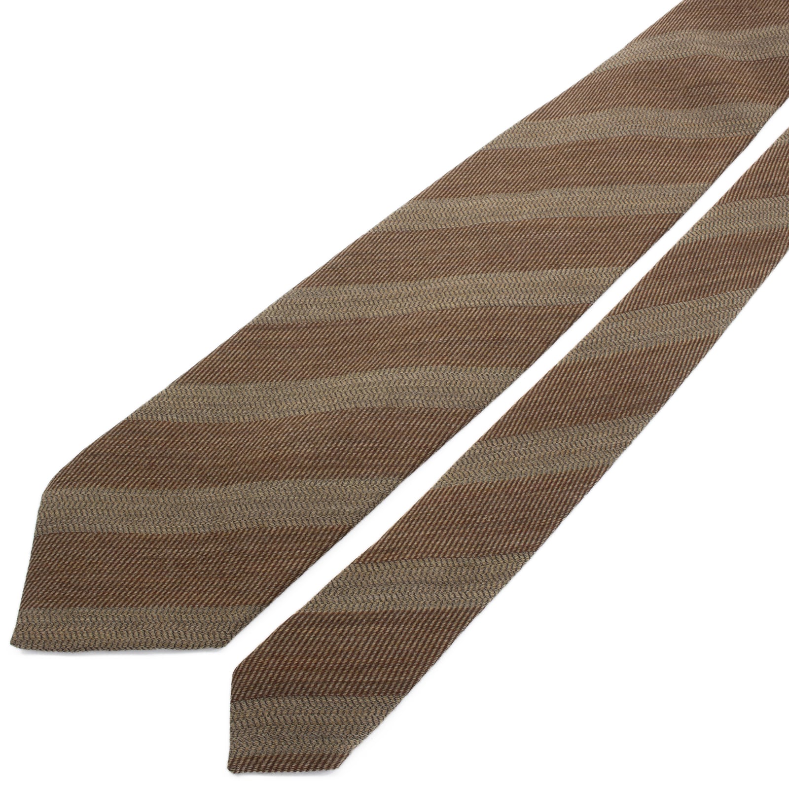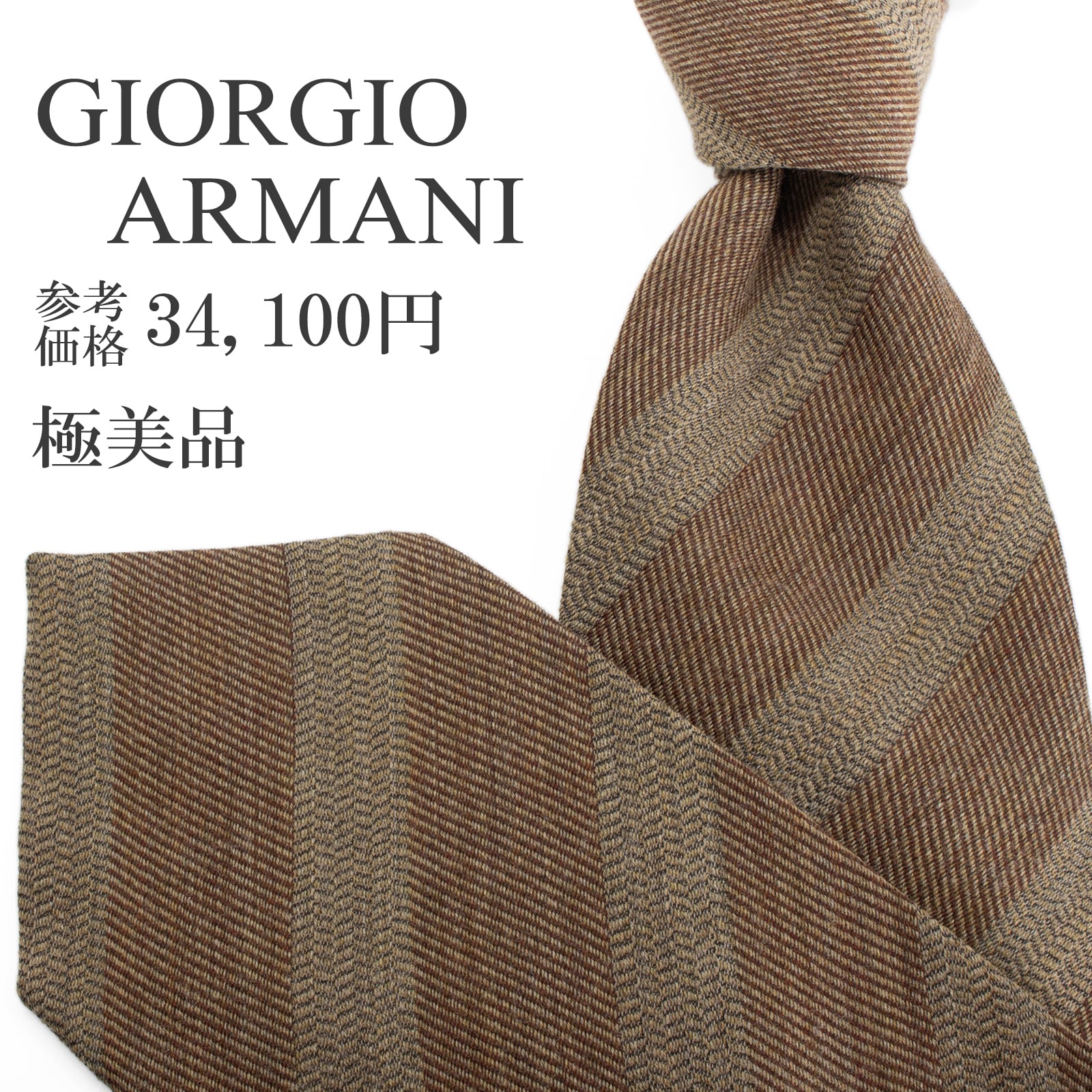 送料無料 ジョルジオアルマーニ ネクタイ ジャガード ウール シルク 茶色 黄土色 ストライプ シンプル ハイブランド イタリア製 綺麗 S567