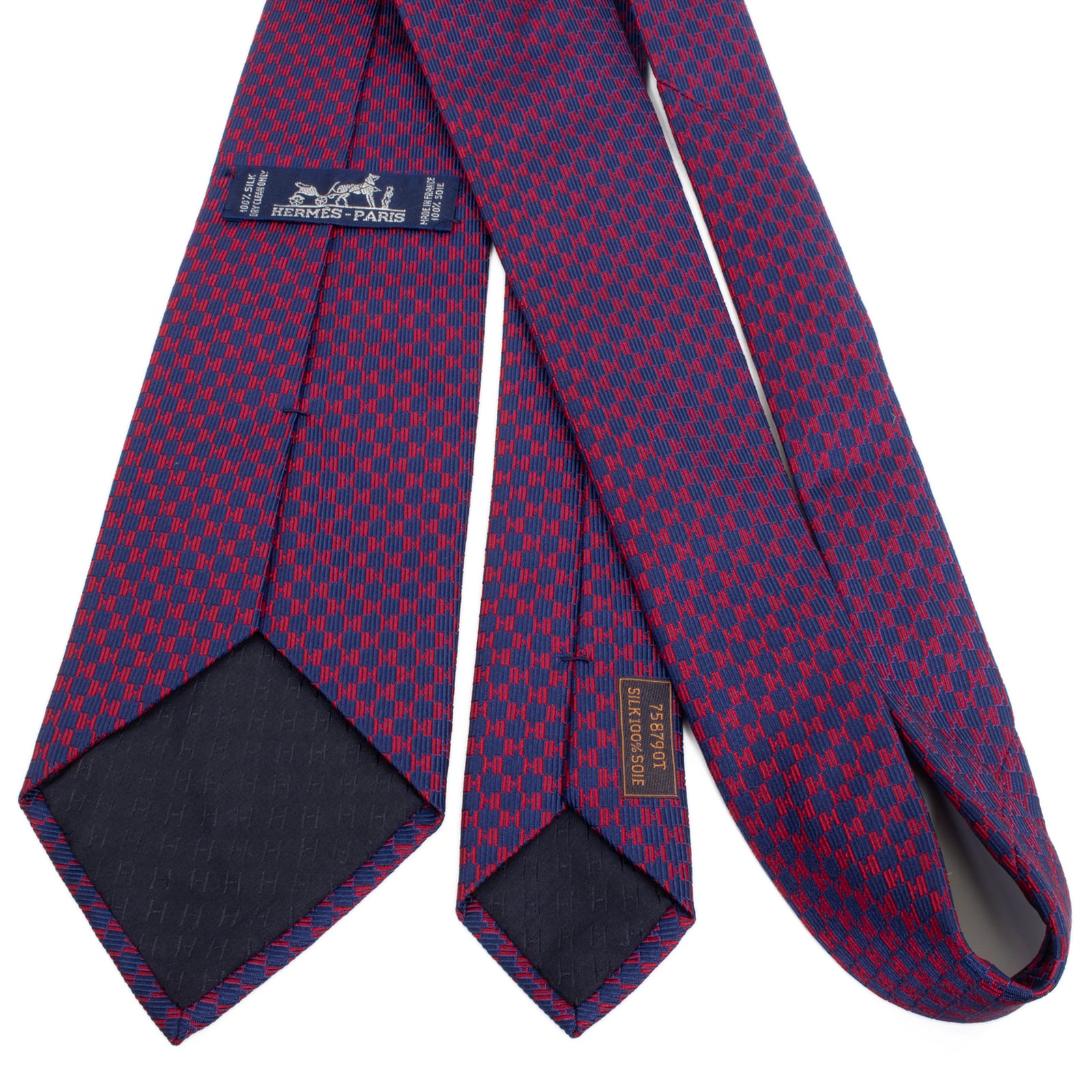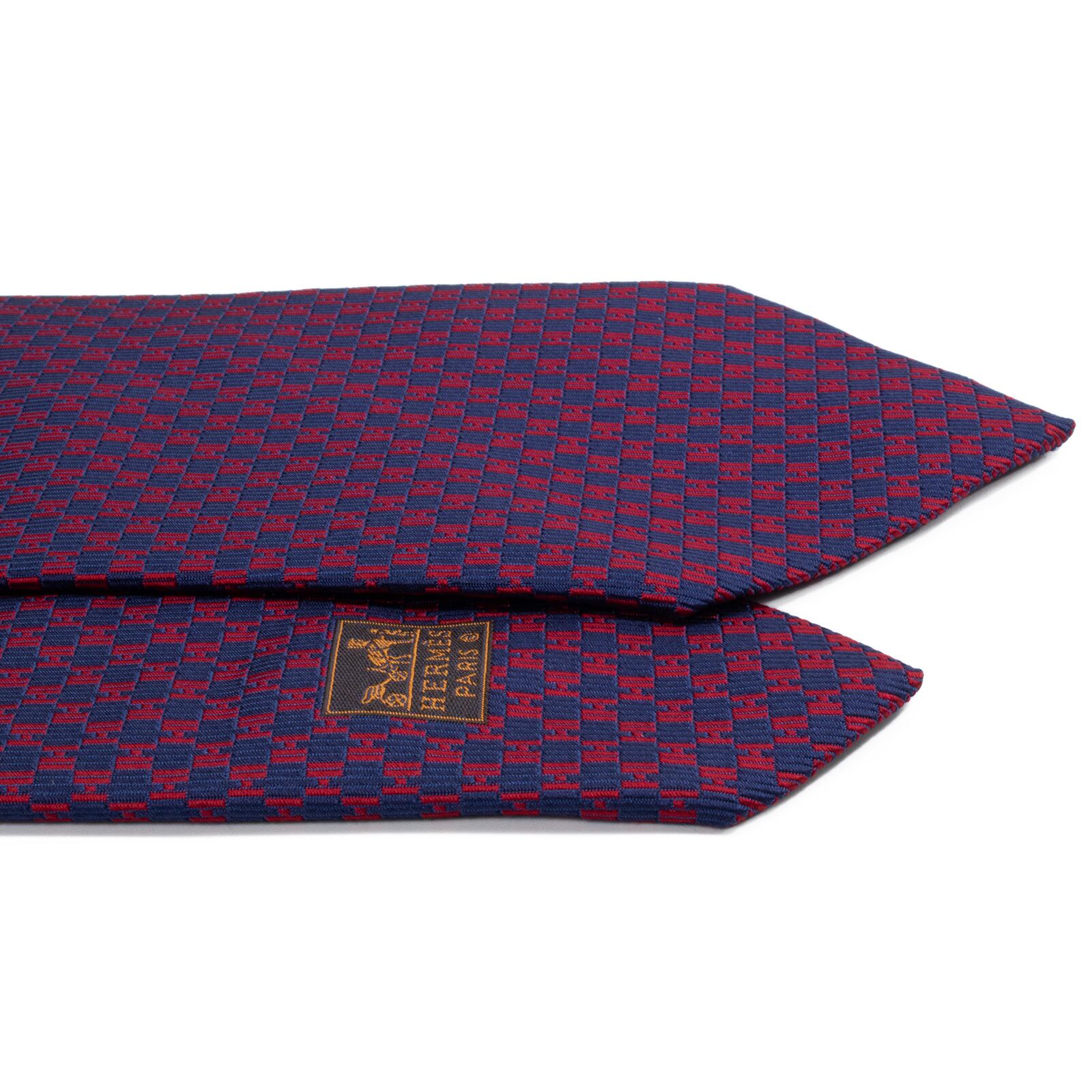 送料無料 エルメス ネクタイ レギュラータイ ジャガード 新品同様 ネイビーブルー 赤 総柄 Hロゴ マーク ハイブランド フランス 綺麗 S569