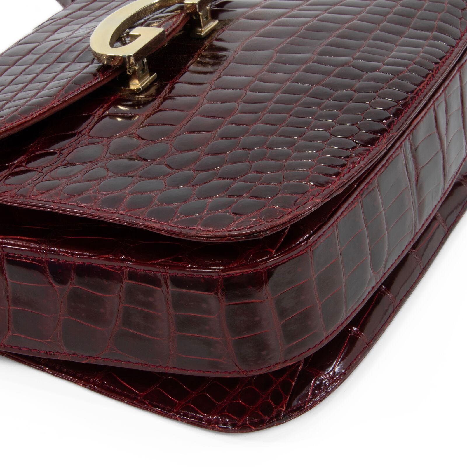 特徴:珍しい・レアモデル・最高級・ワニの本革・エキゾチックレザー・肩掛け・自立可能・かっちり・光沢・Gマーク・ゴールド金具・ハイブランド・おしゃれ