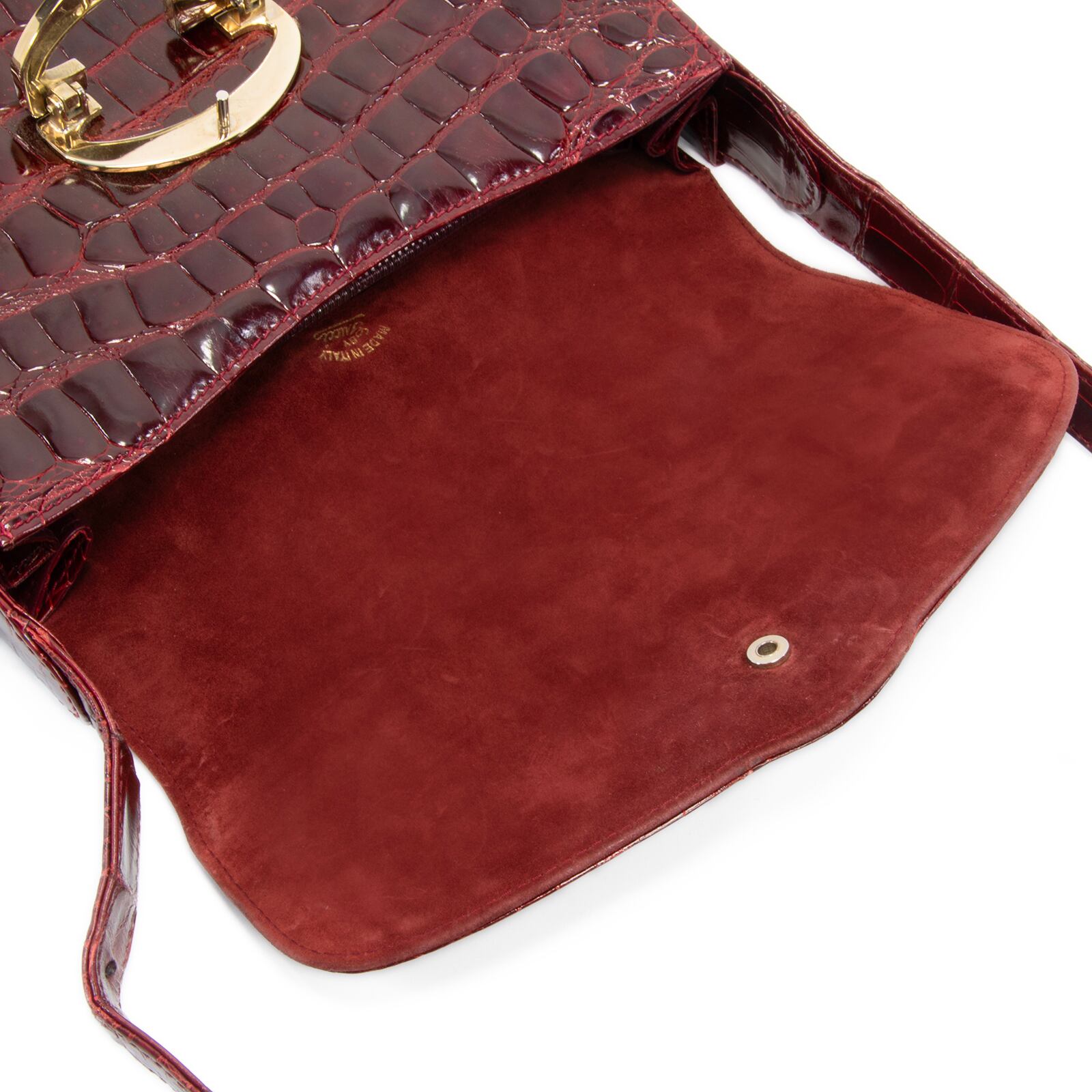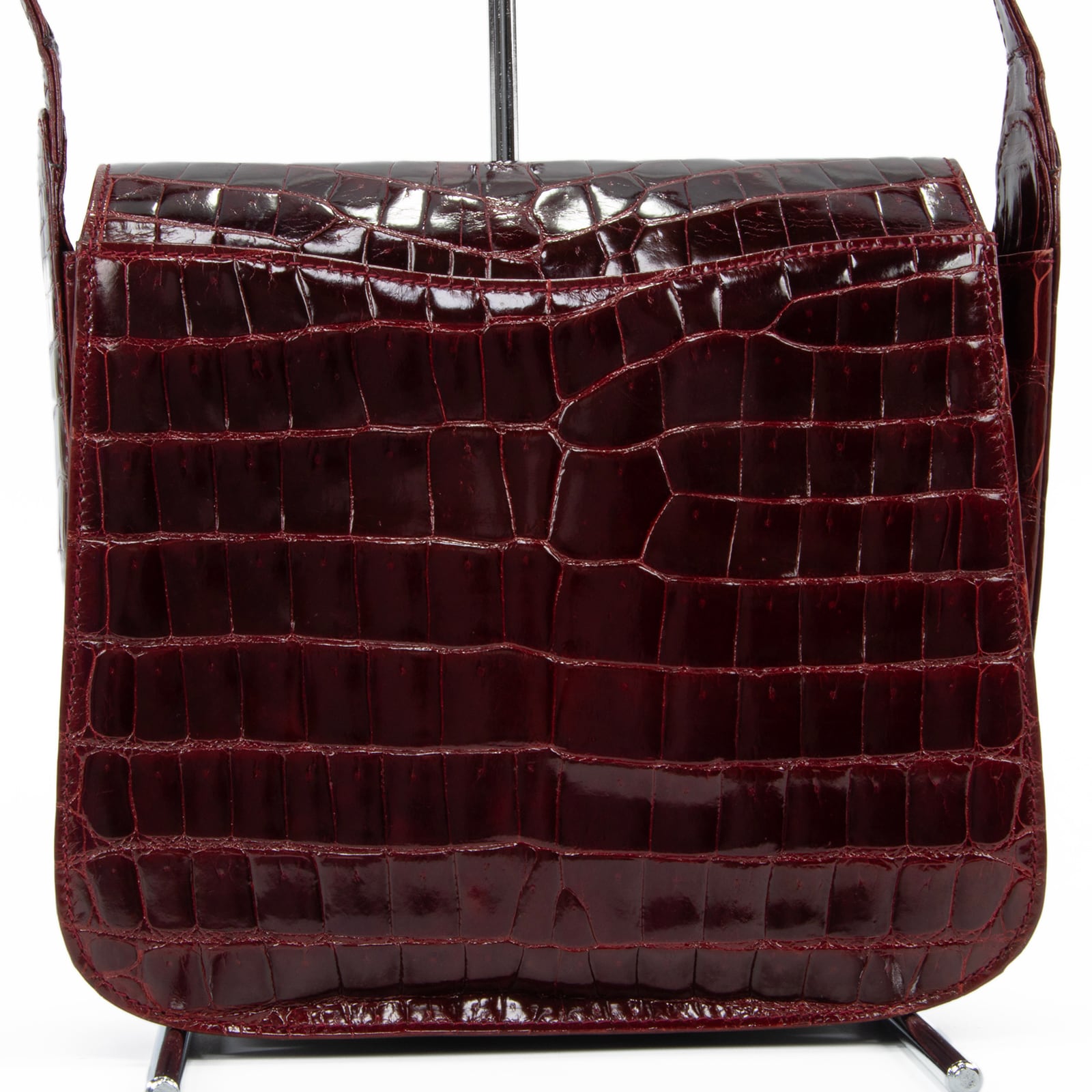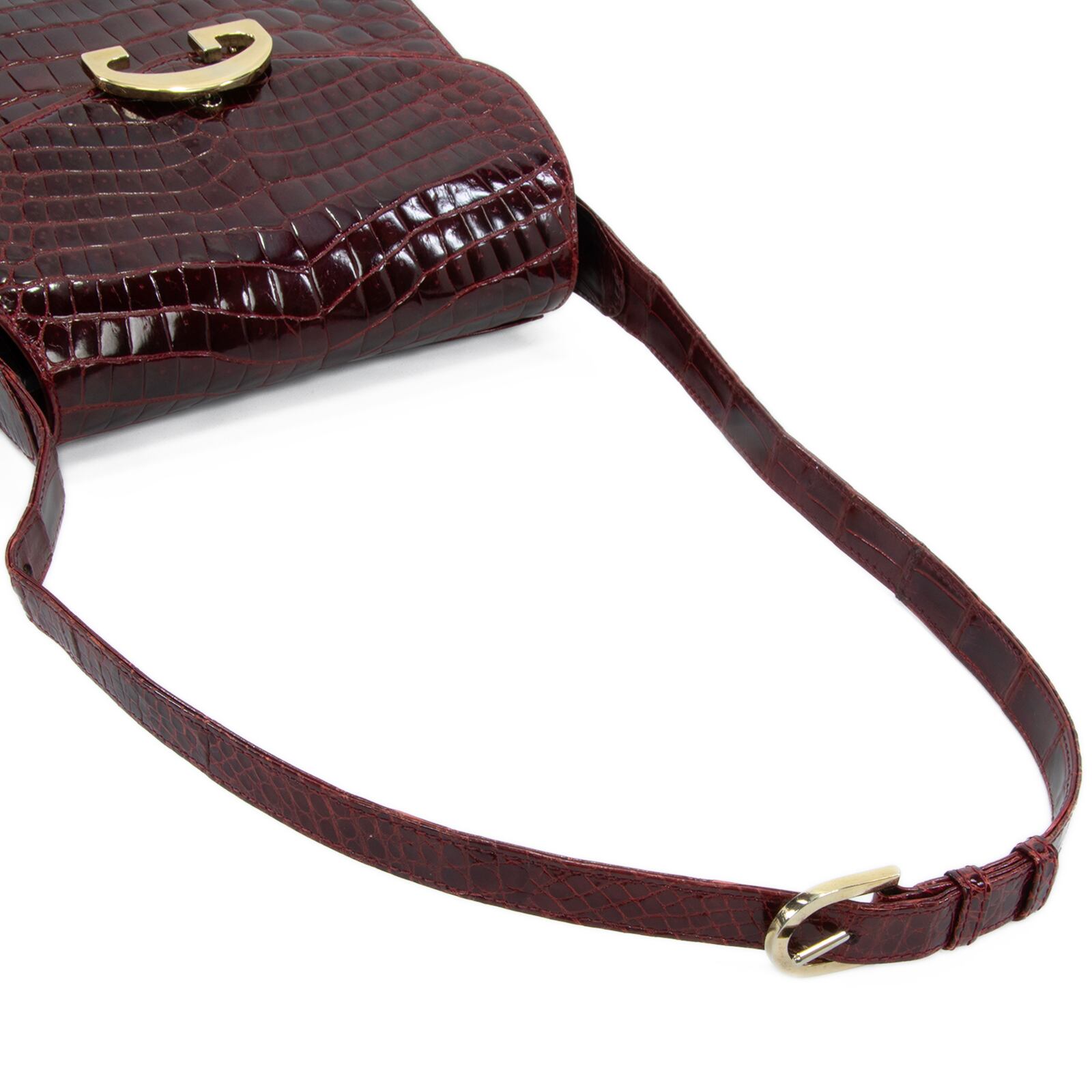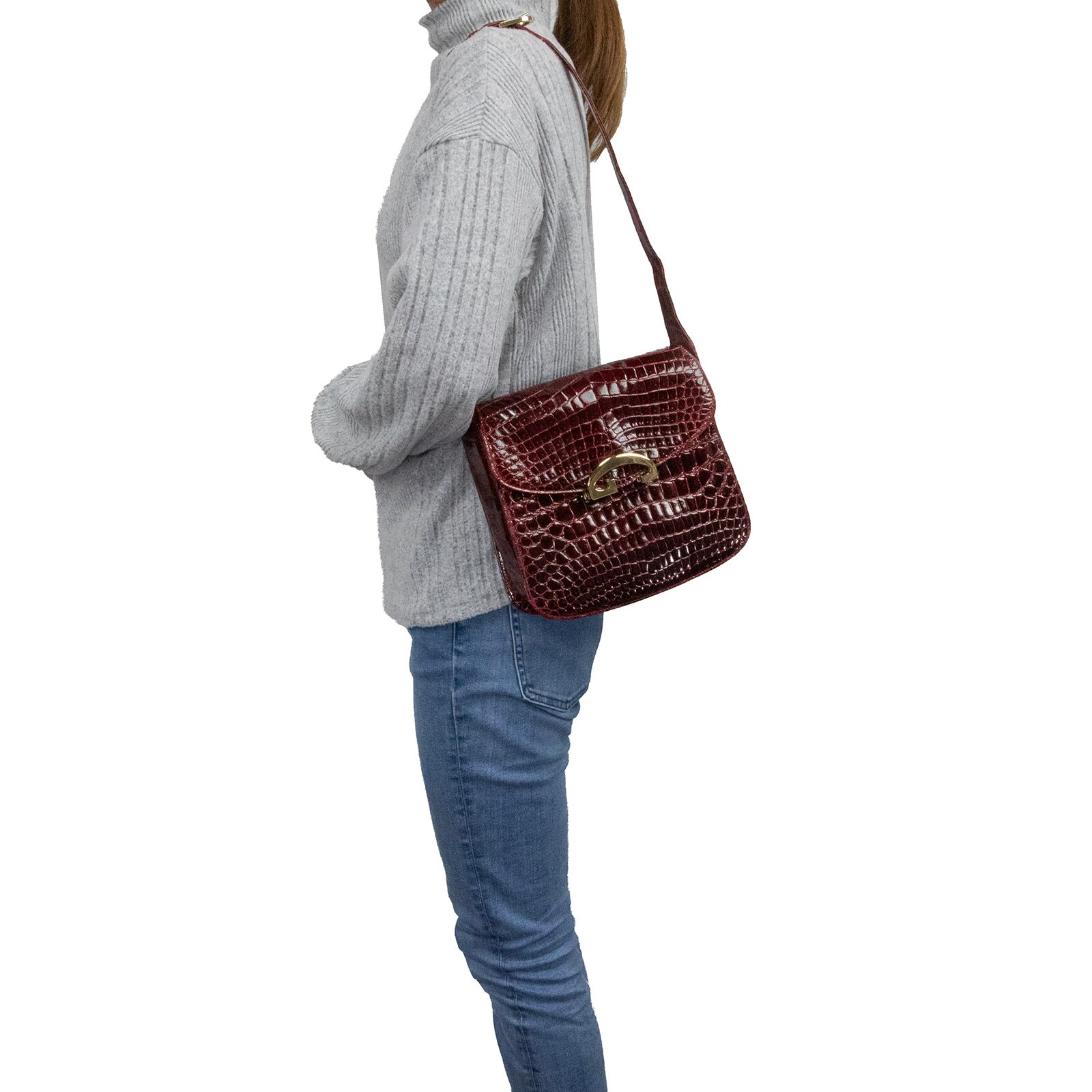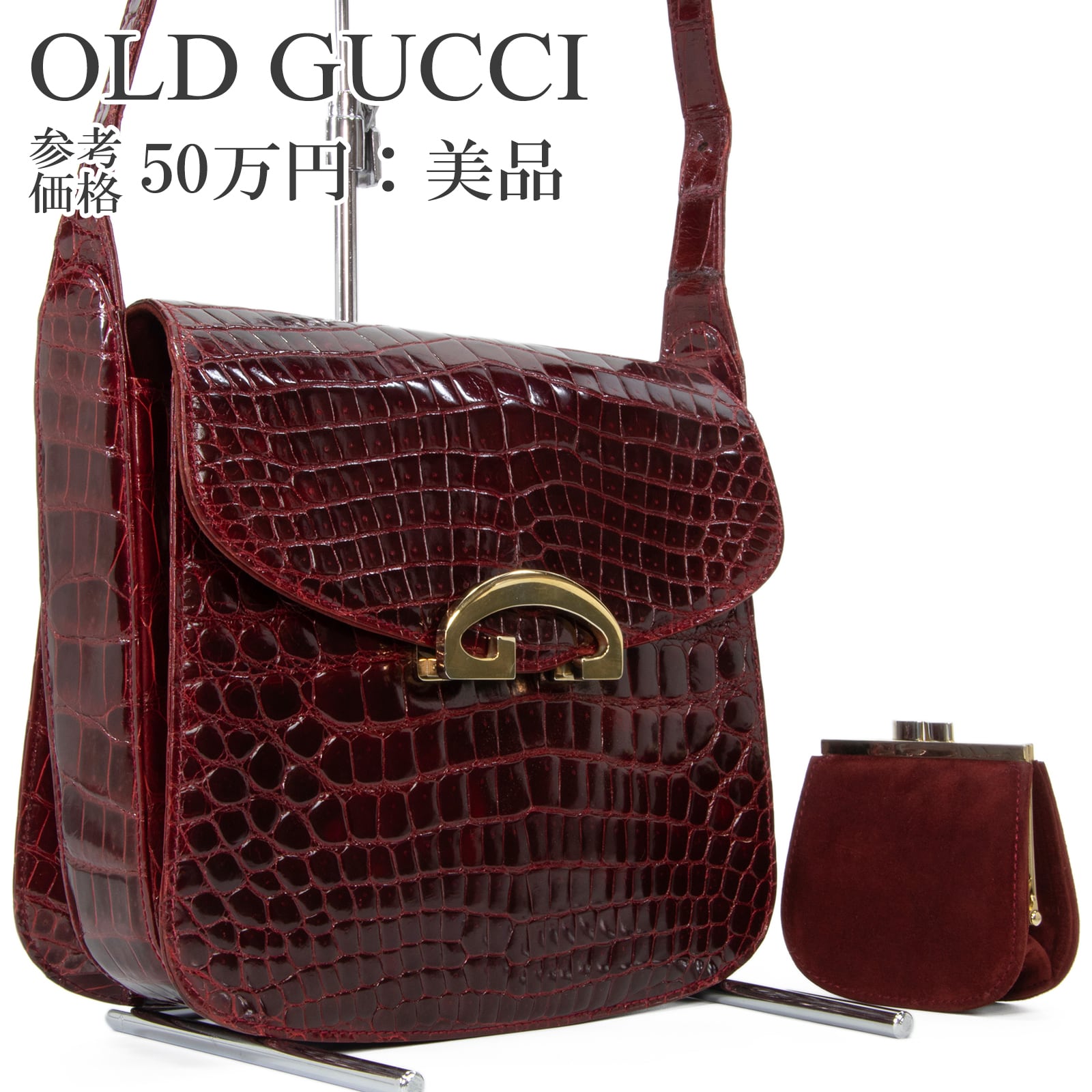 本物 送料無料 オールドグッチ ショルダーバッグ レディース クロコダイル バーガンディー 珍しい ワニ革 光沢 マーク 綺麗 鞄 バック A868