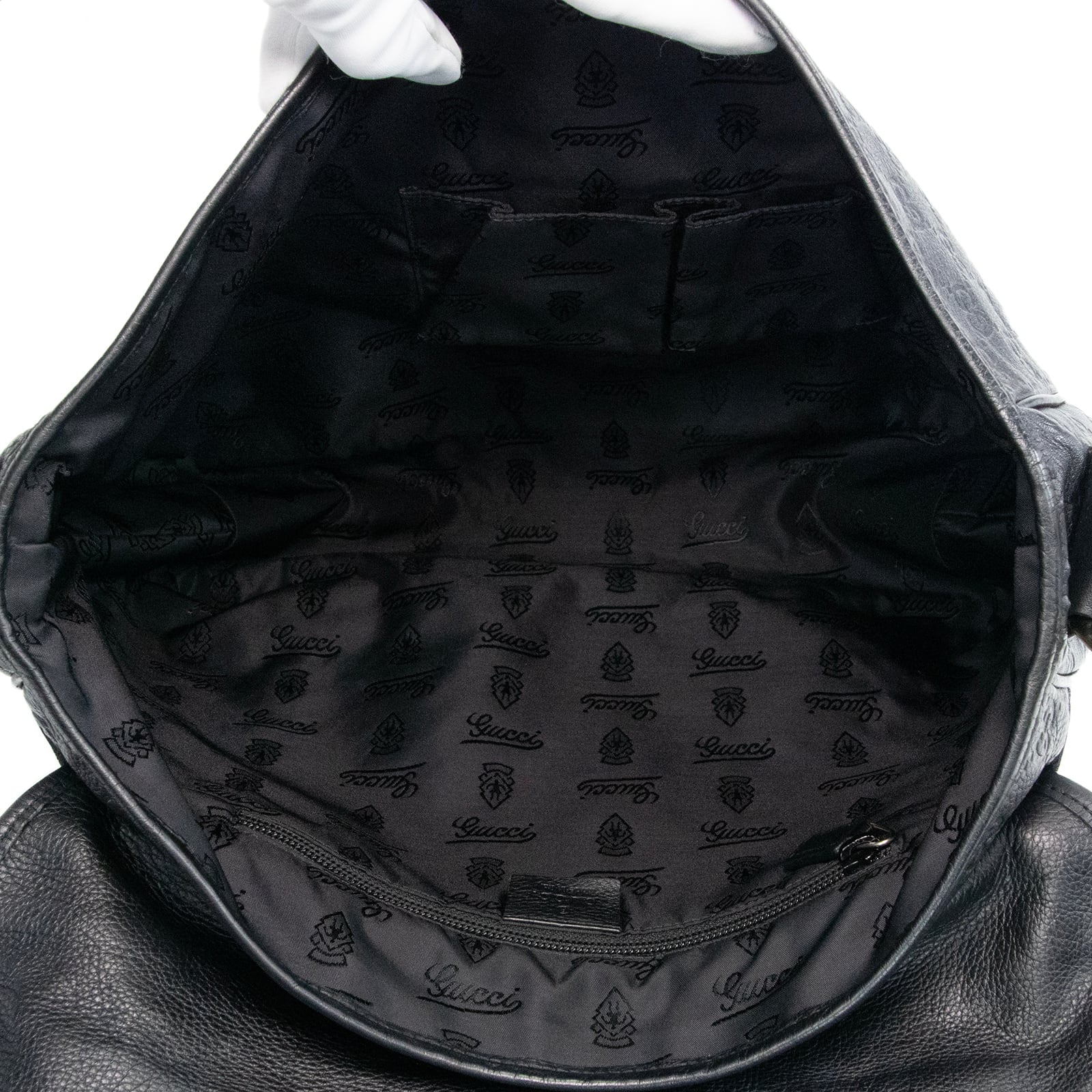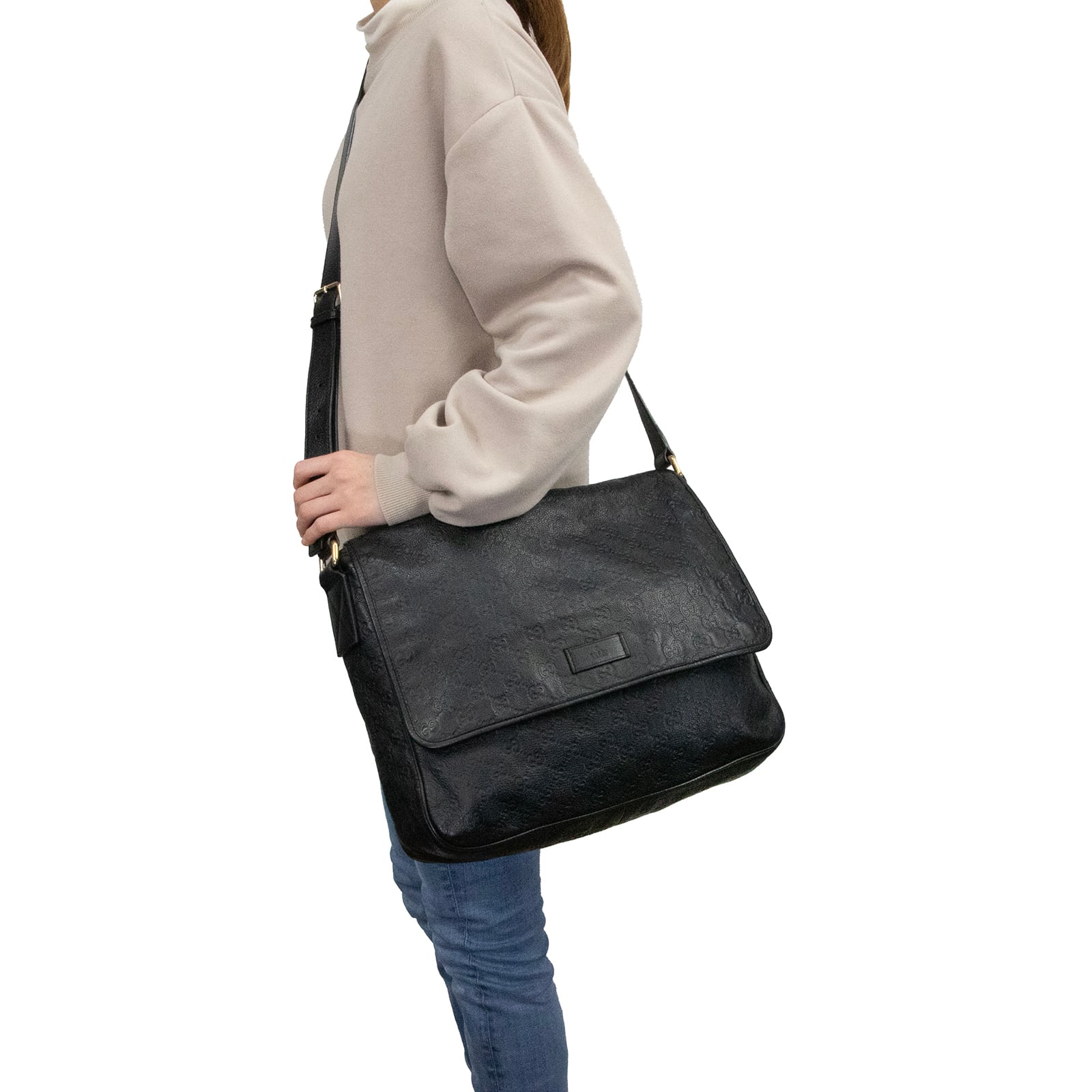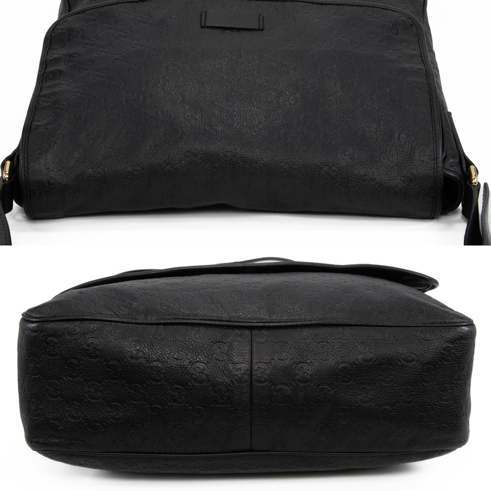 こちらは、上質なカーフにGGロゴが整然と型押しされました、グッチのグッチシマ・メッセンジャーバッグでございます。
