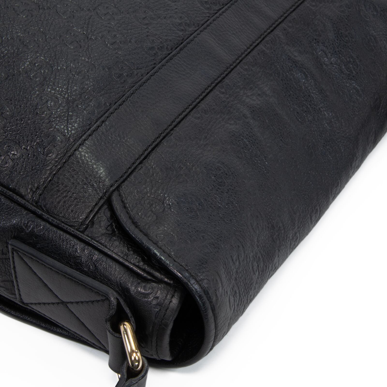 シャンパンゴールドの金具が黒のレザーに美しく映え、持つ方の装いに確かな品格を添えております。