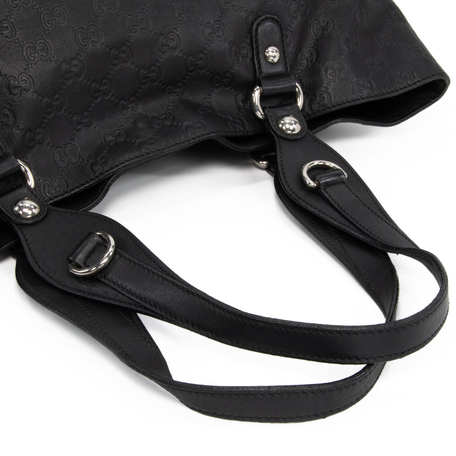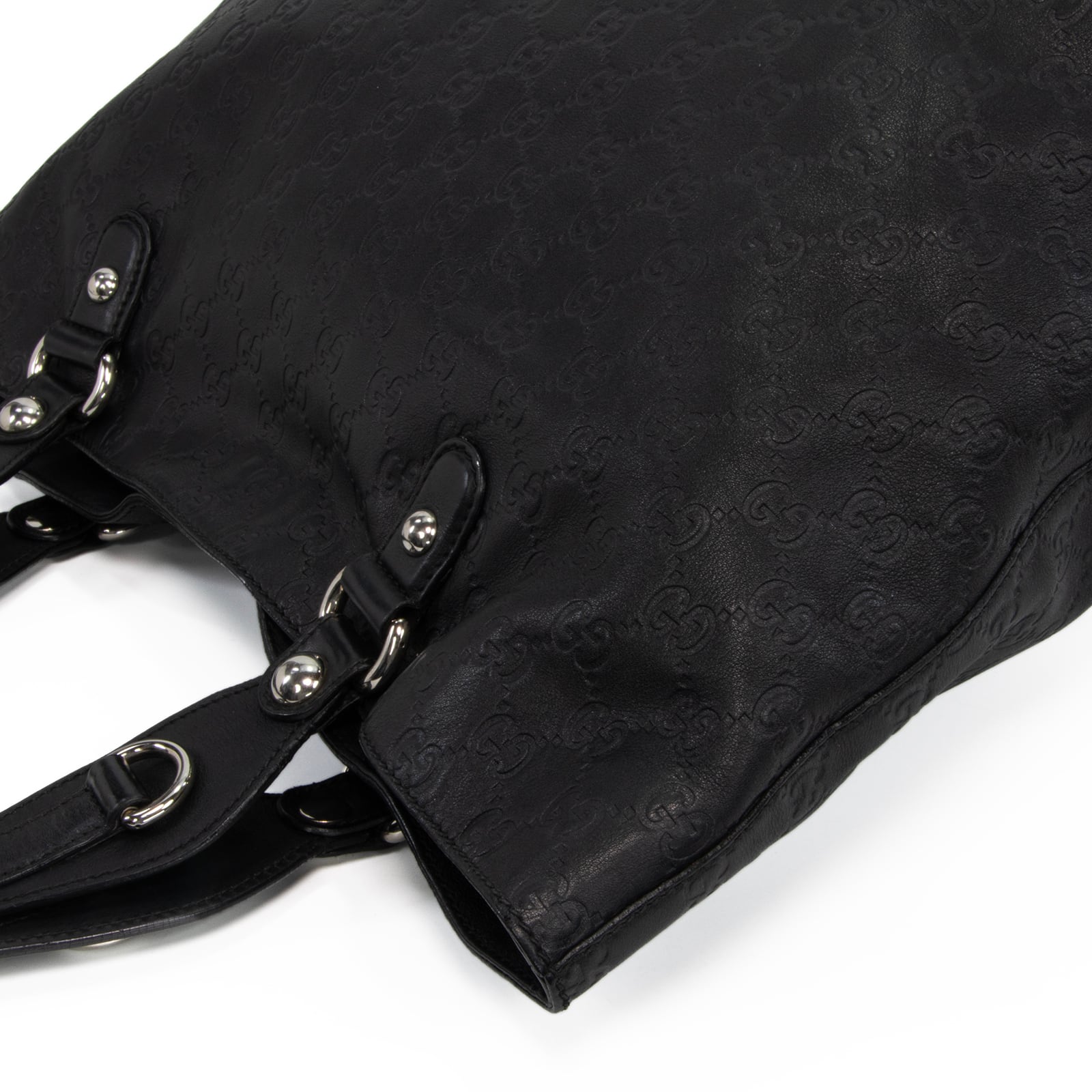 こちらは、重厚感漂う黒の質感に伝統の意匠が美しく映える、グッチのアイコンビット・グッチシマ・ショルダーバッグでございます。