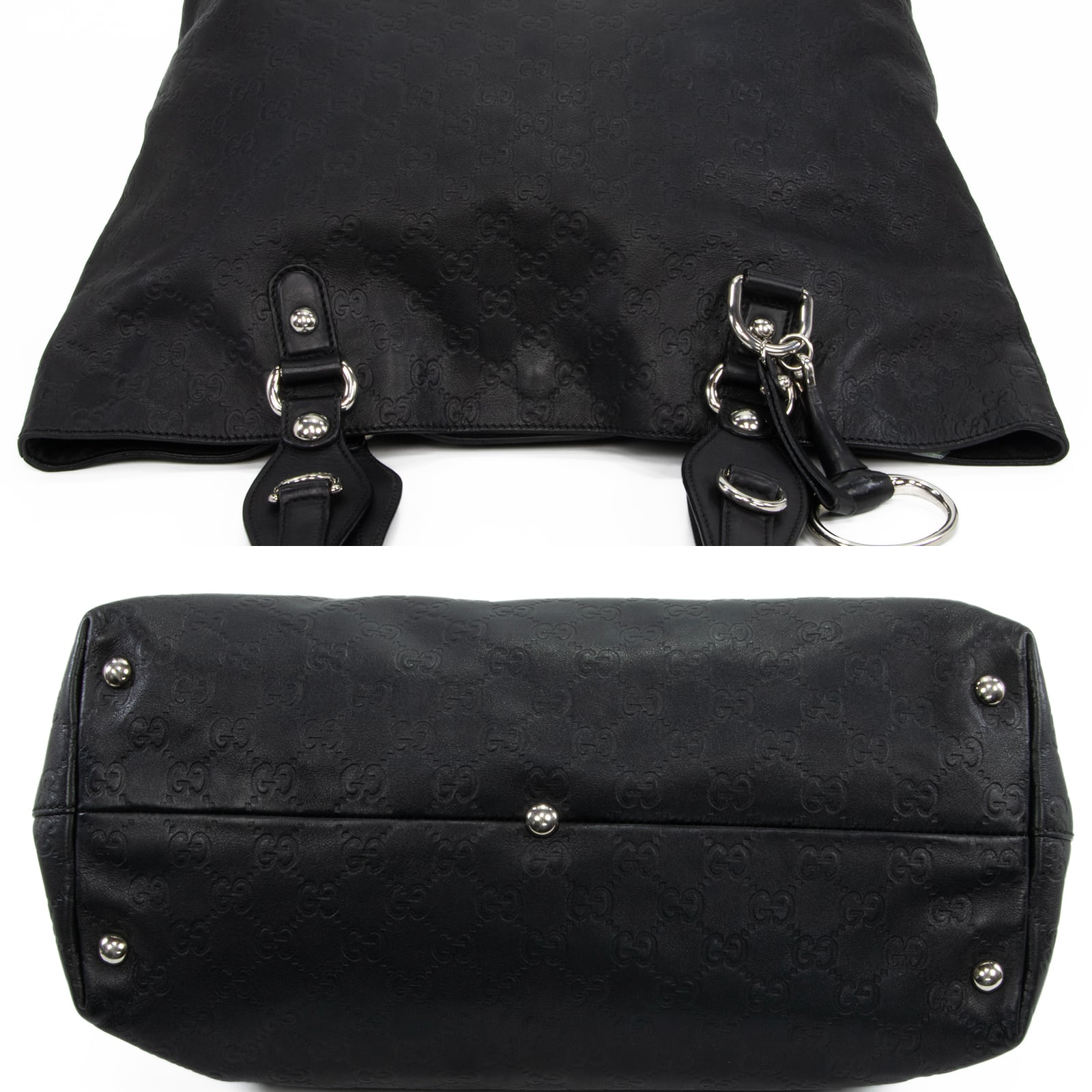 本物 送料無料 グッチ ハンドバッグ ショルダーバッグ メンズ レディース アイコンビット 黒 大きめ ホースビット GGロゴ 鞄 バック E453
