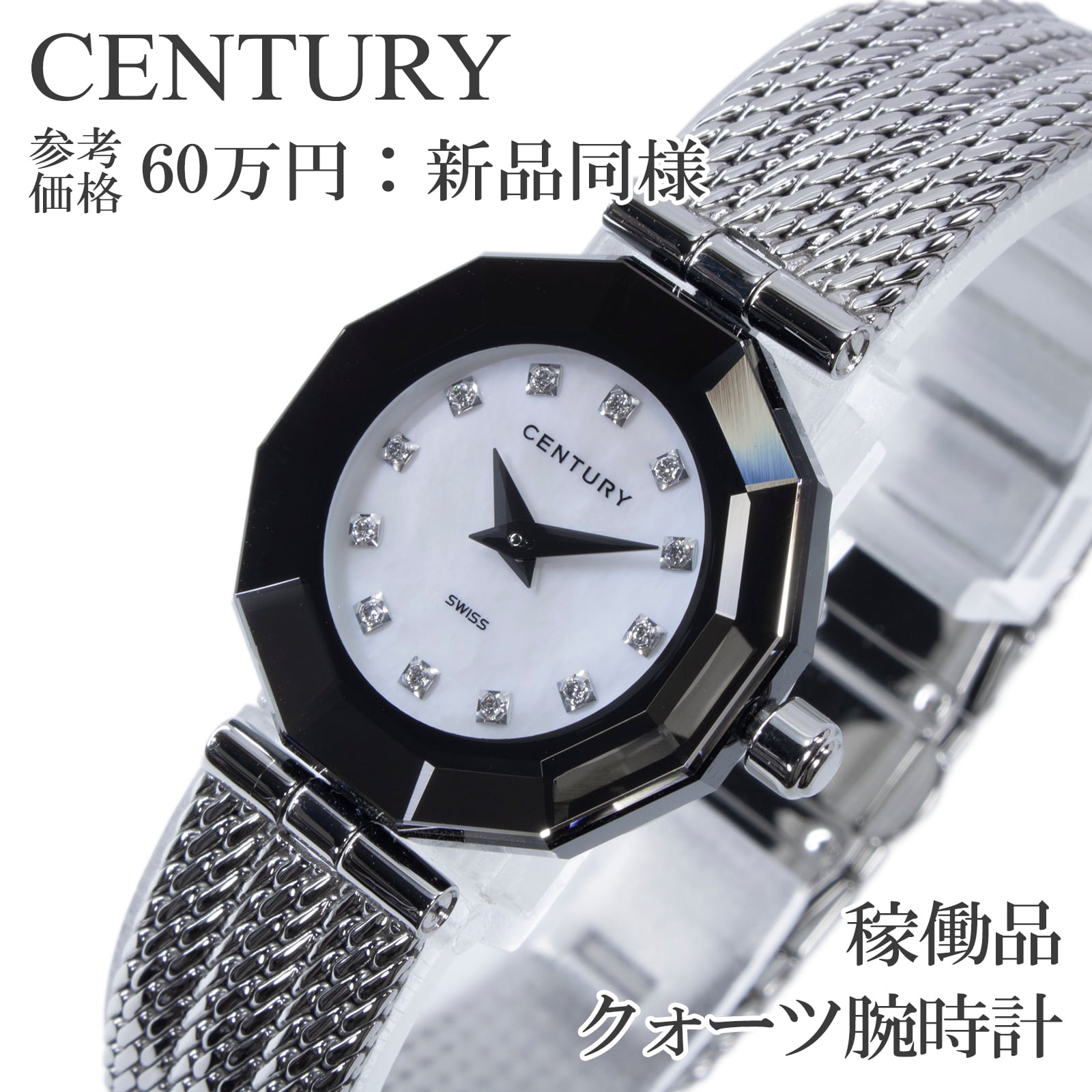 稼働品 新品同様 送料無料 センチュリー 腕時計 クォーツ レディース タイムジェム プライムタイム 白 シェル盤 ダイヤモンド 小さめ X455