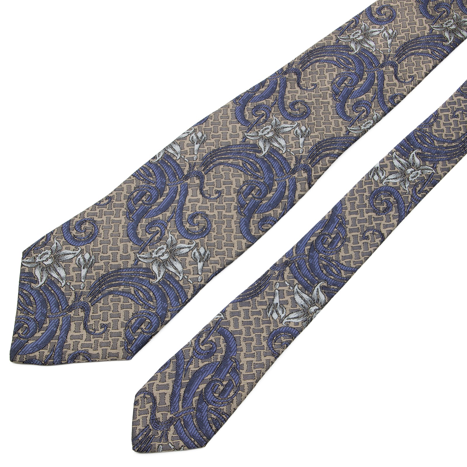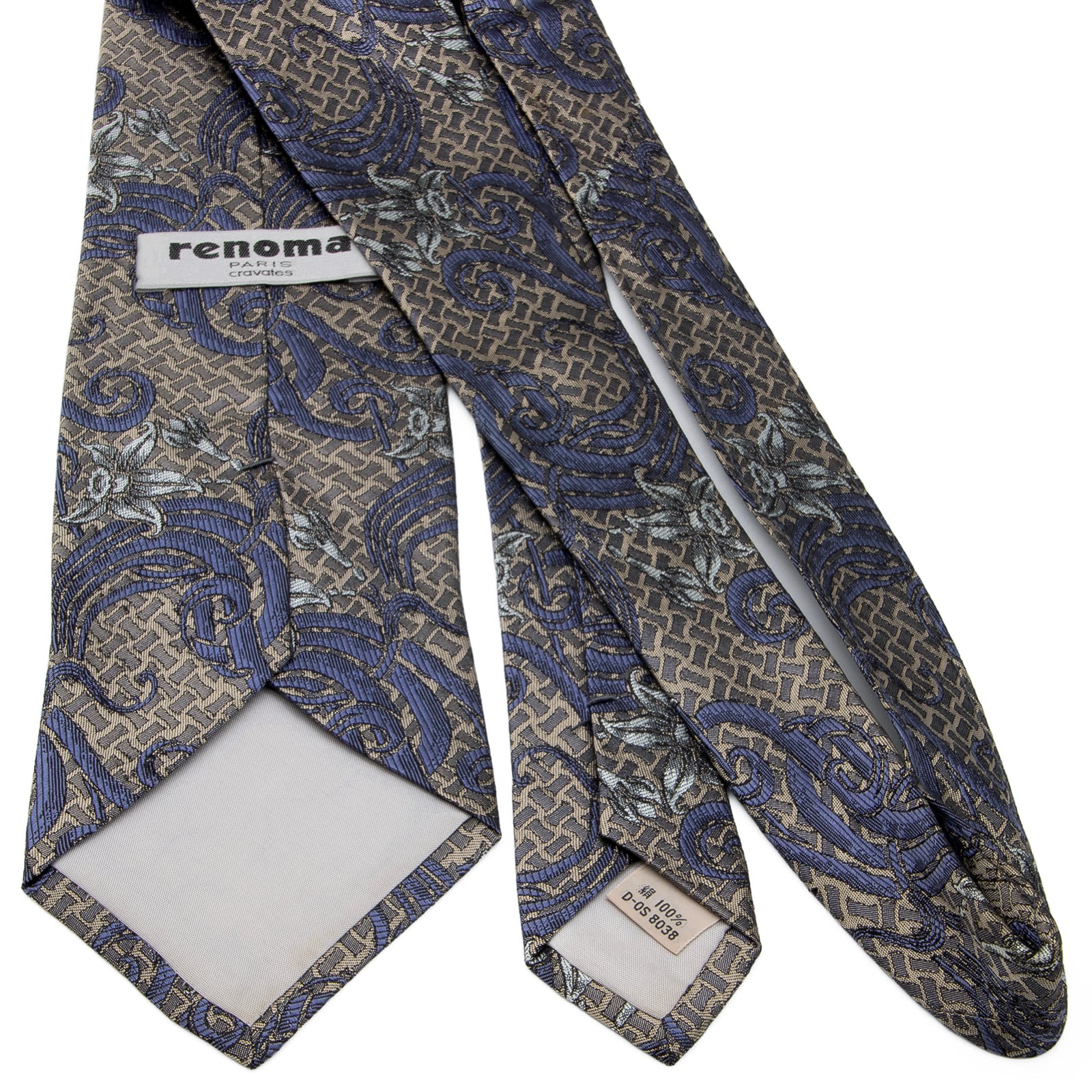 新品同様 送料無料 レノマ ネクタイ レギュラータイ ジャガード シルク メタリックグレー 青 ブルー シルバー Y2K 光沢 花 ブランド P314