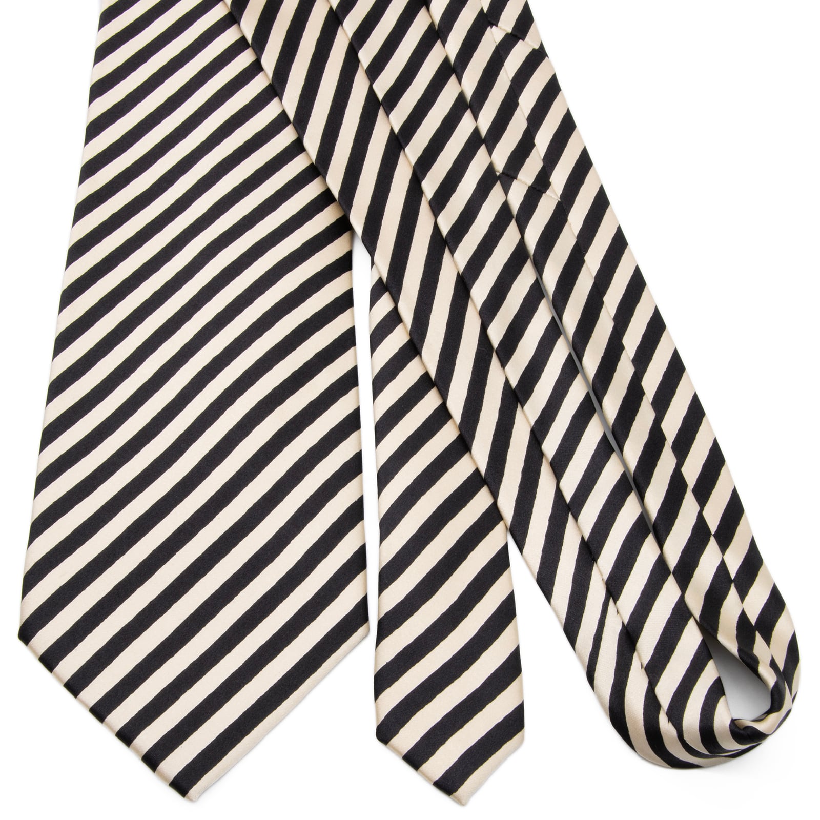 新品同様 送料無料 バリー ネクタイ レギュラータイ シルク アイボリー 黒 ブラック ストライプ シンプル ハイブランド イタリア 綺麗 P377