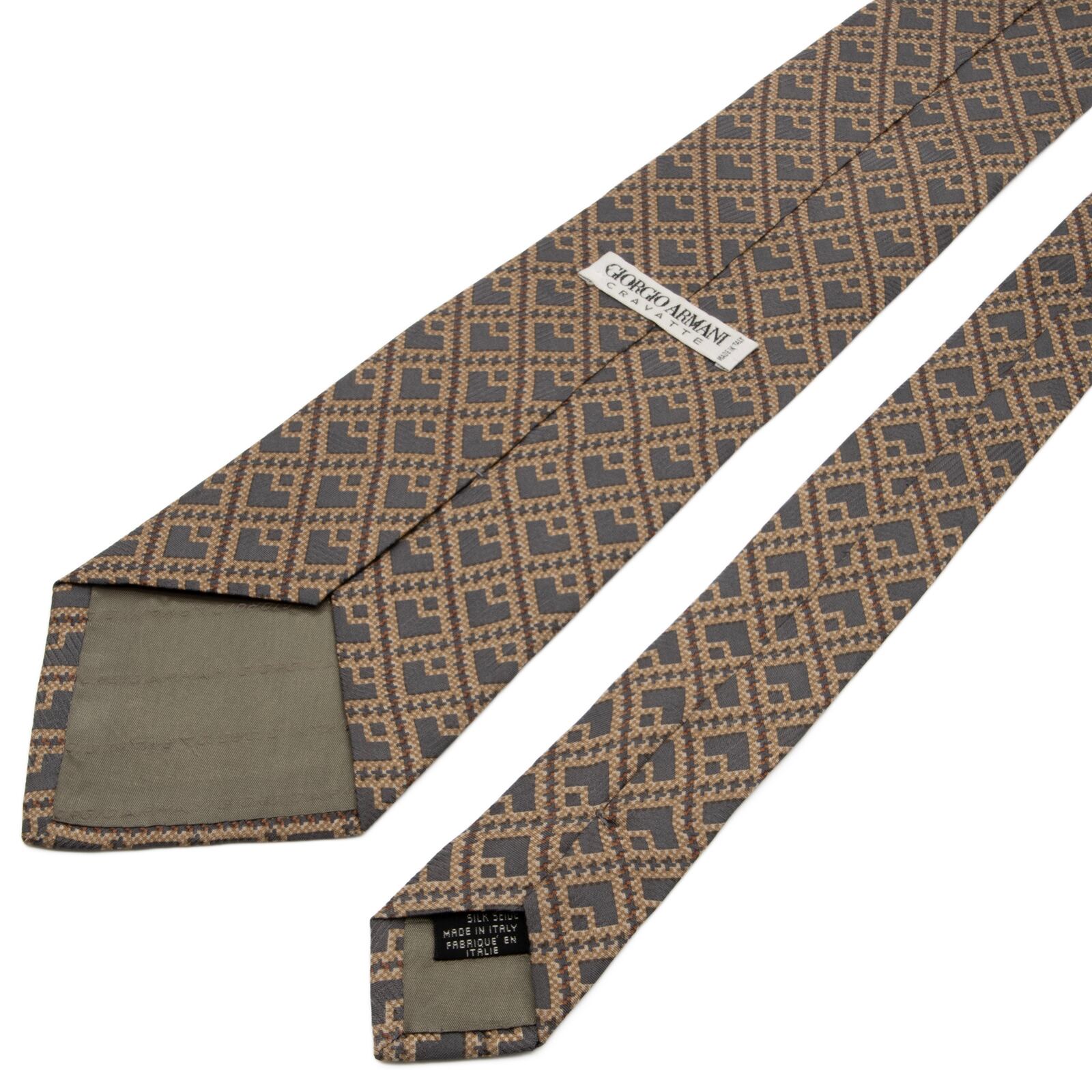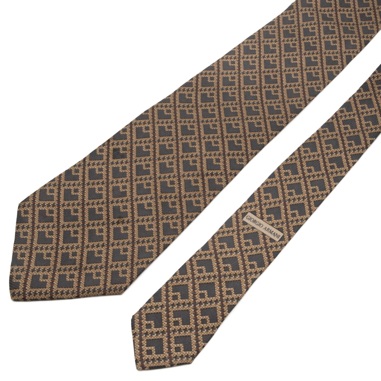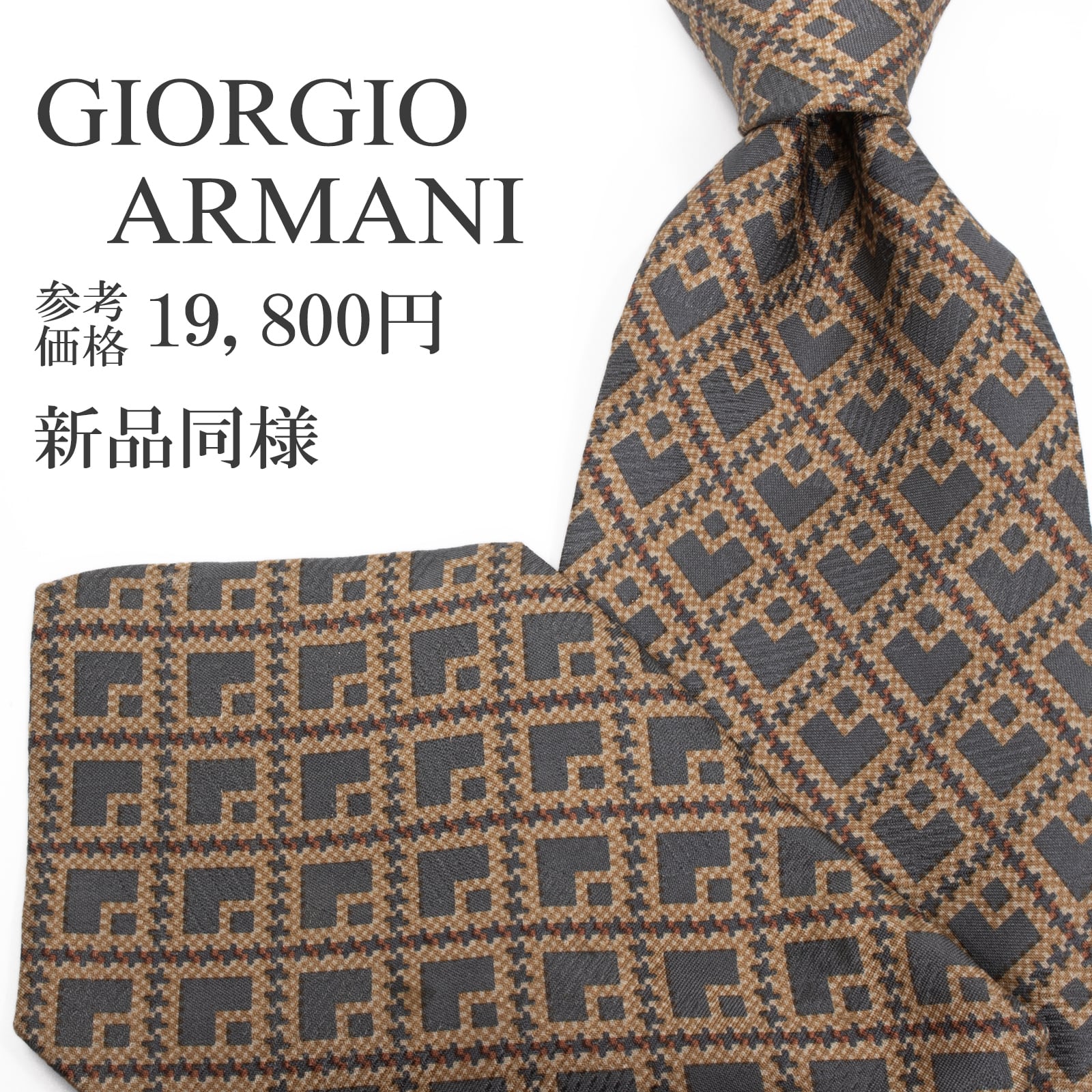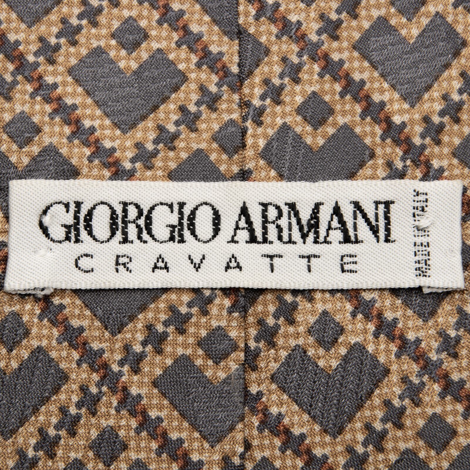 新品同様 送料無料 ジョルジオアルマーニ ネクタイ シルク グレー 茶色 ブラウン ベージュ 総柄 四角 スクエア ハイブランド イタリア P439