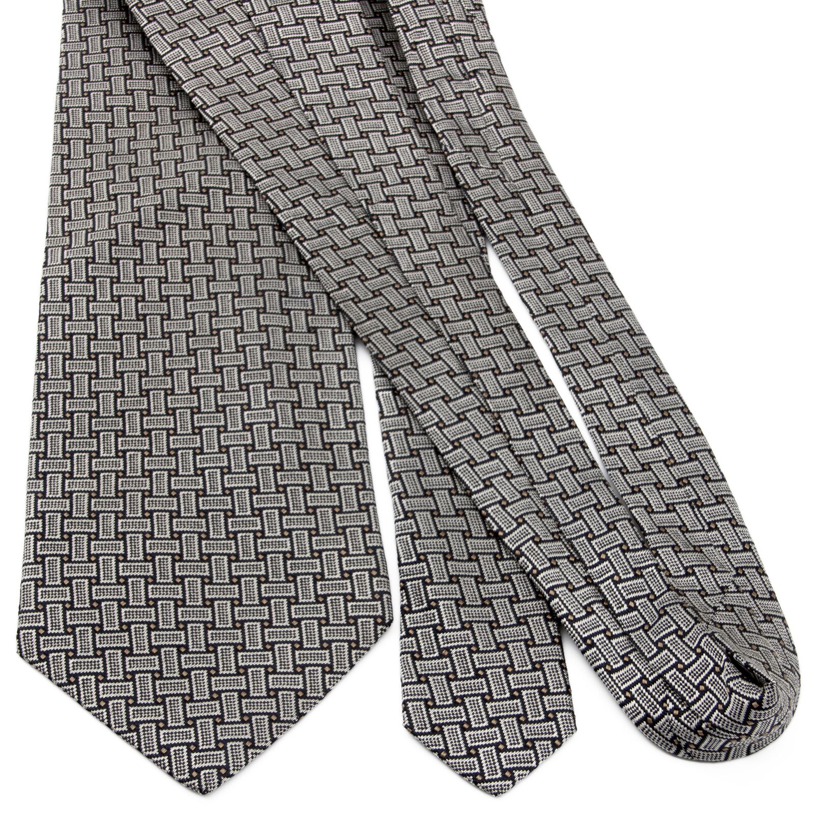 こちらは、緻密な編み込み模様が都会的な、ジャンフランコフェレのネクタイでございます。