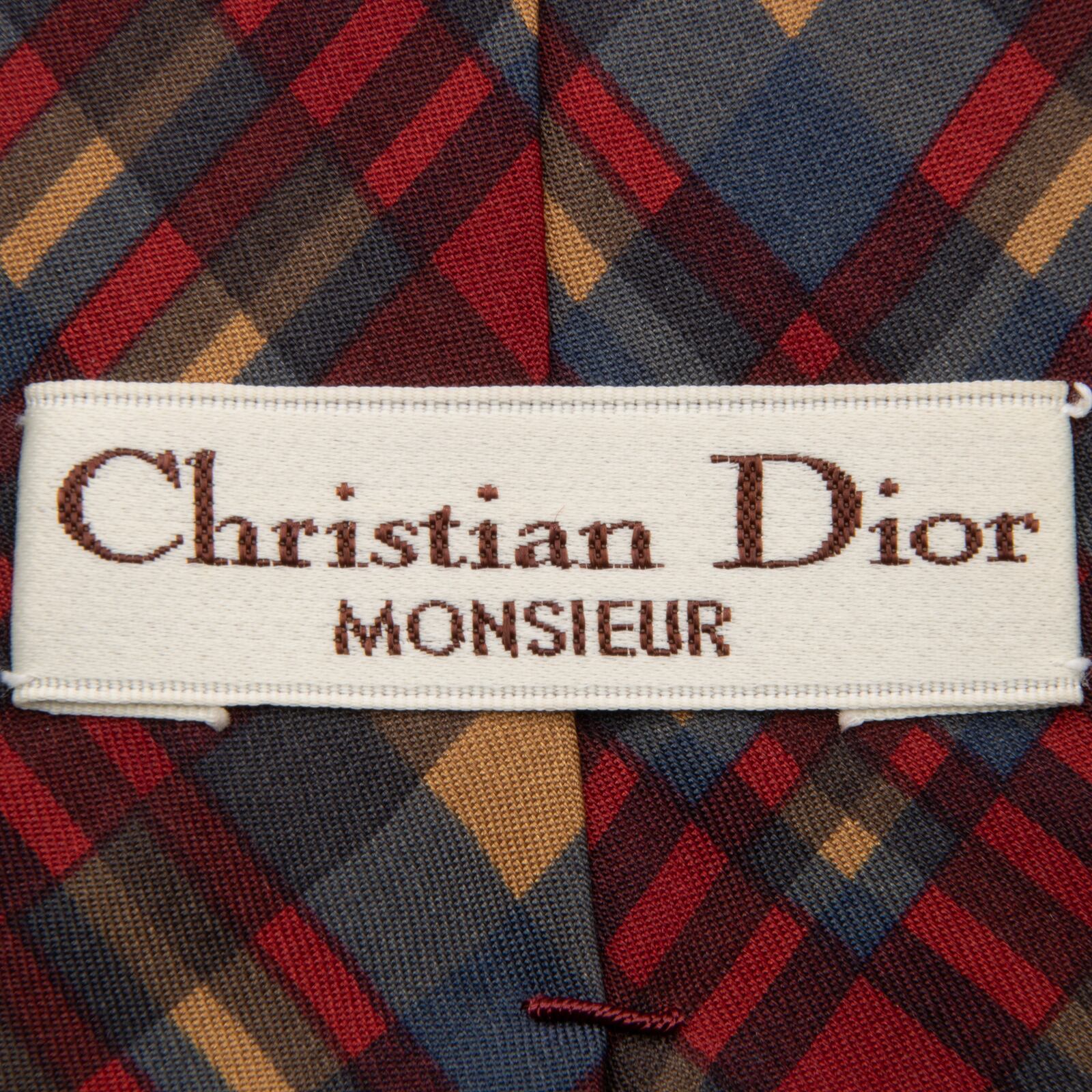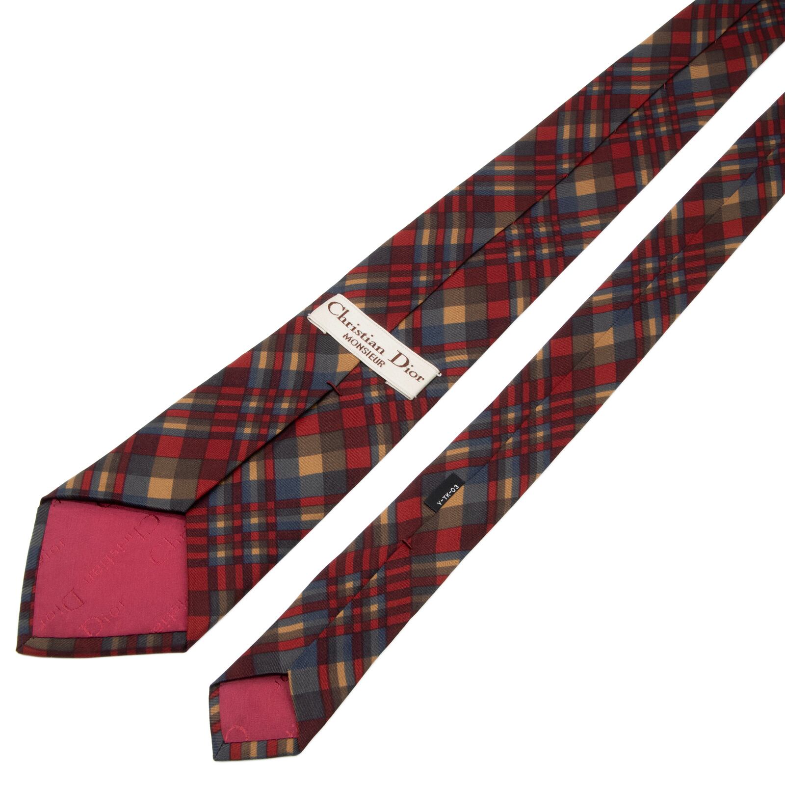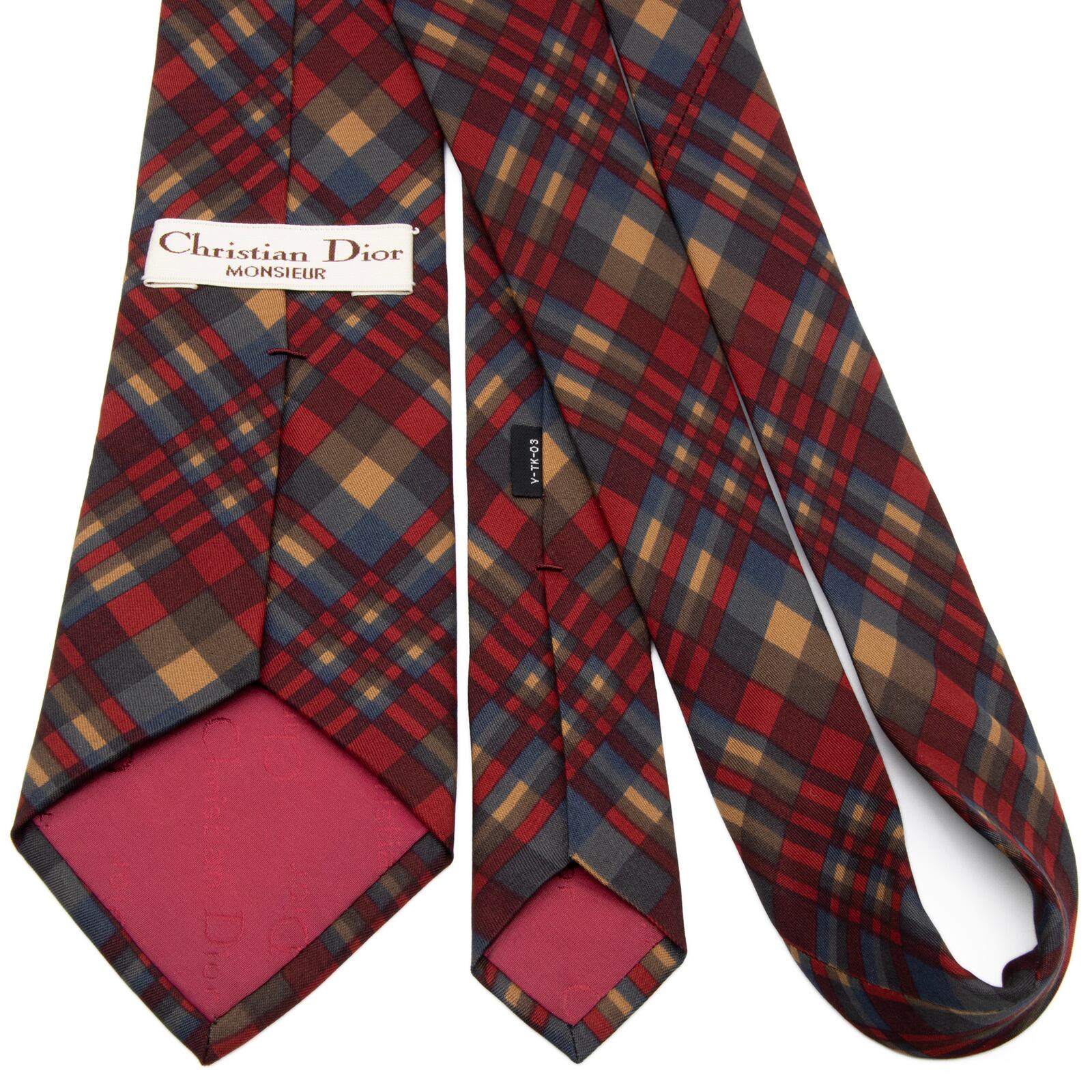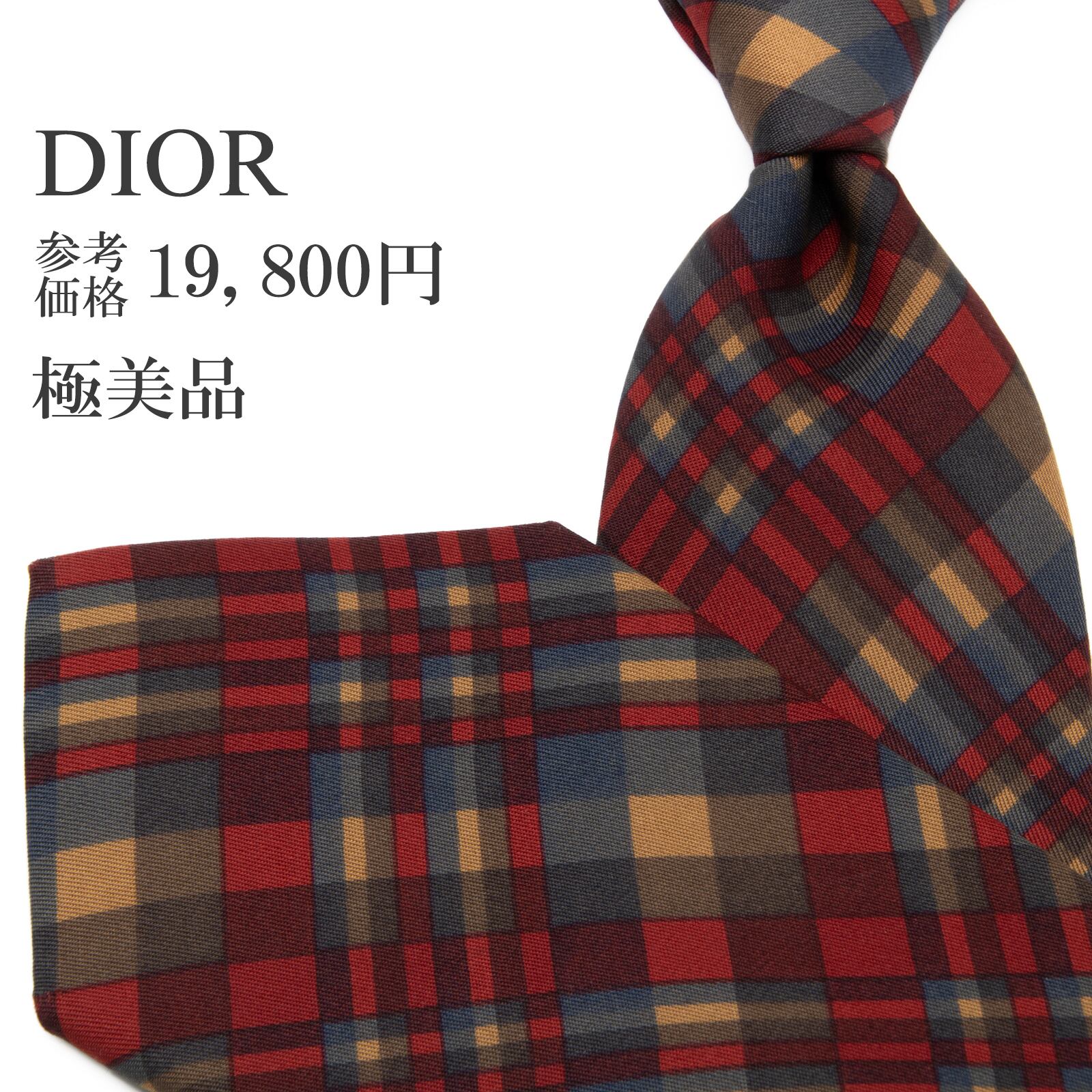 送料無料 ディオール ネクタイ レギュラータイ シルク 赤 レッド 緑 グリーン 茶色 ビジネス カジュアル チェック Y2K ハイブランド P572