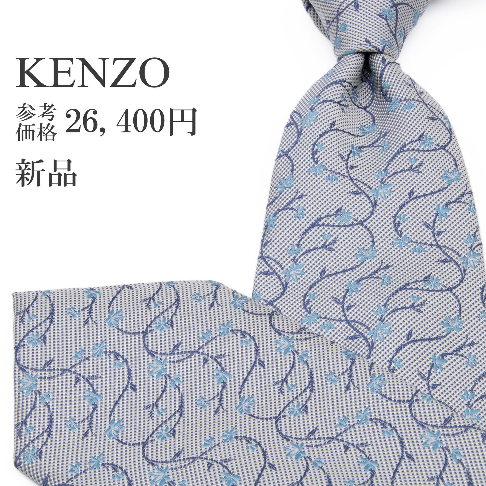 新品 送料無料 ケンゾー ネクタイ レギュラータイ ジャガード シルク グレーブルー 青 水色 総柄 花 フラワー ブランド 日本製 綺麗 P701
