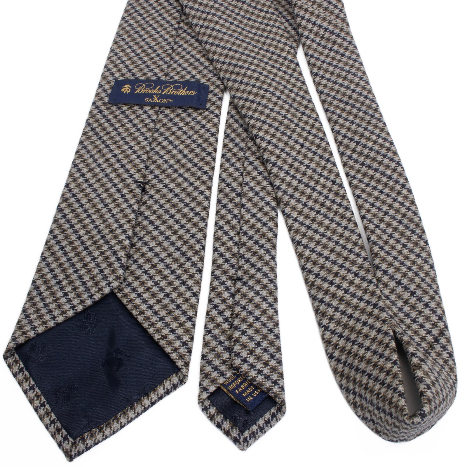 送料無料 ブルックスブラザーズ ネクタイ ジャガード サクソンウール グレー ネイビーブルー ハウンドトゥース 千鳥格子 ハイブランド S570
