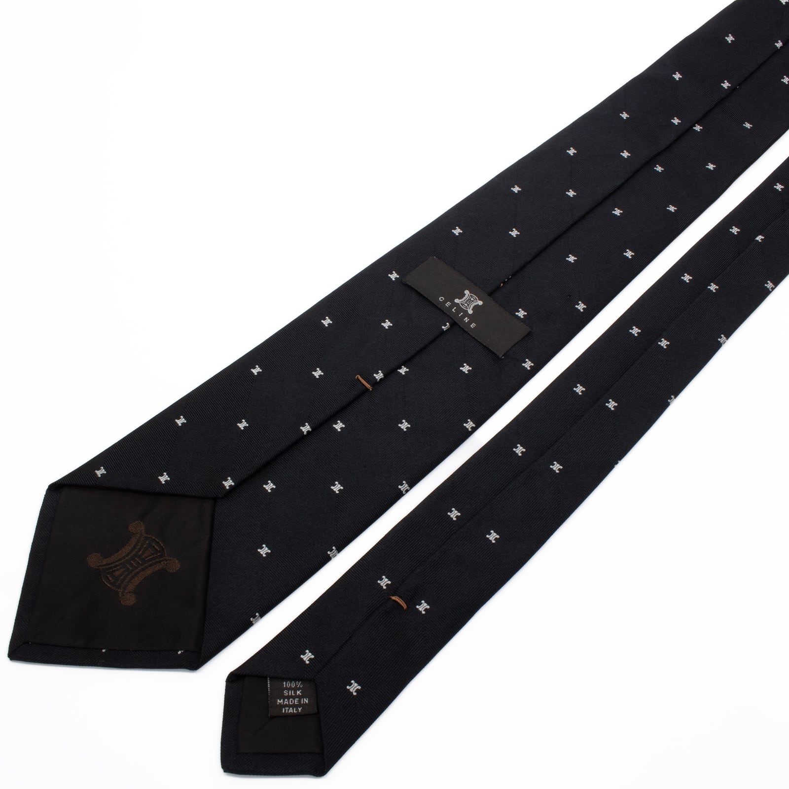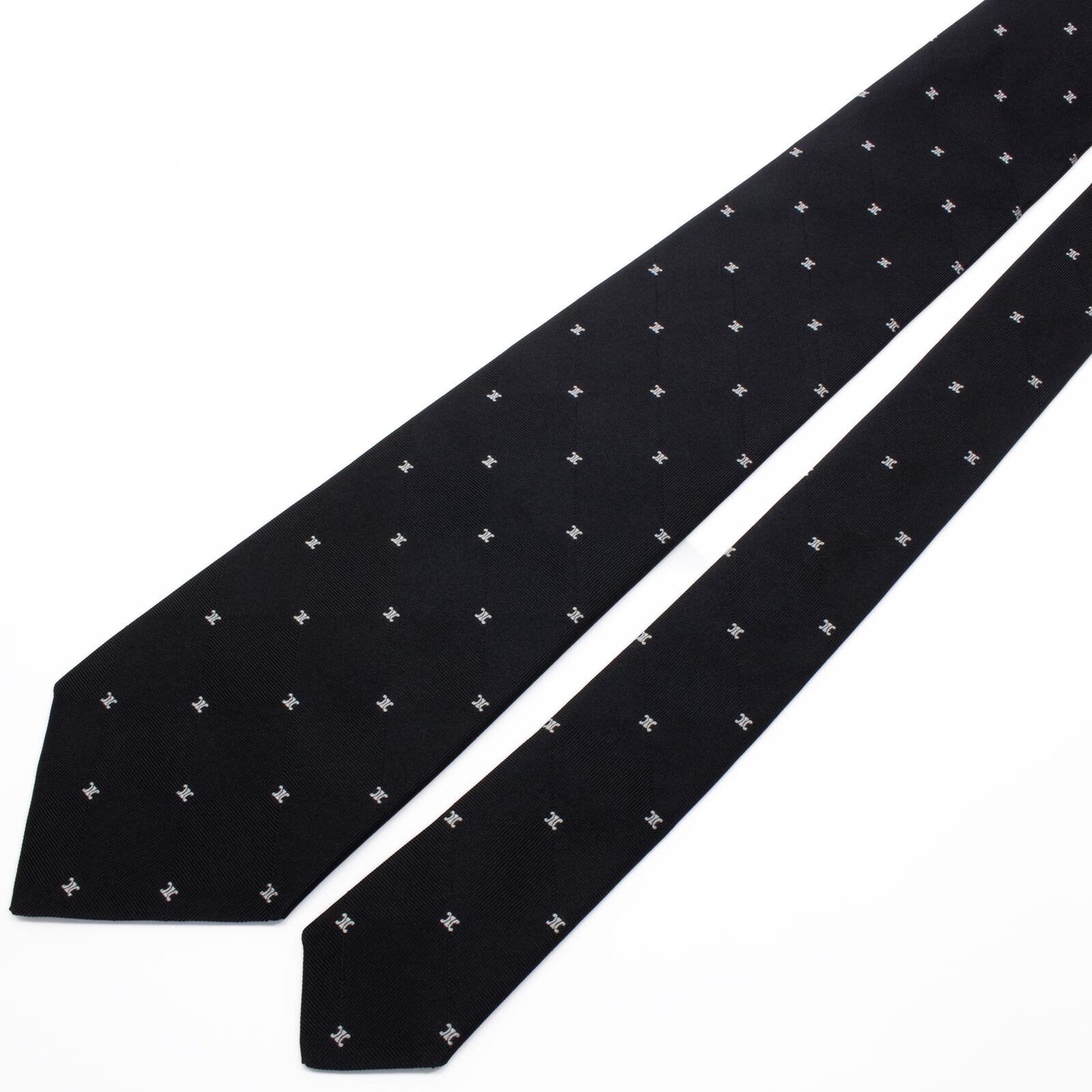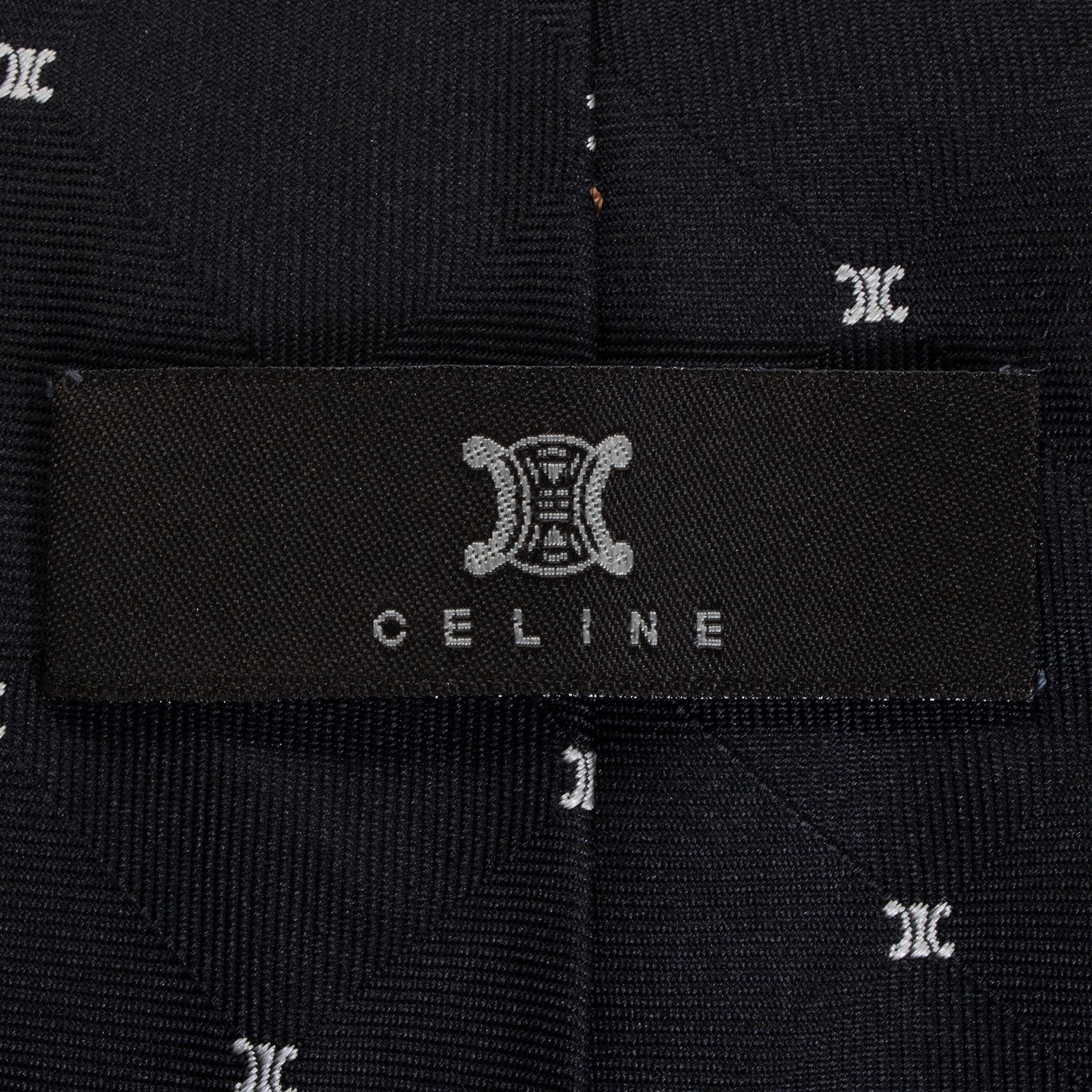 新品同様 送料無料 セリーヌ ネクタイ ジャガード 黒 ブラック シルバー 総柄 マカダム ブラゾン ロゴ マーク ハイブランド イタリア S572