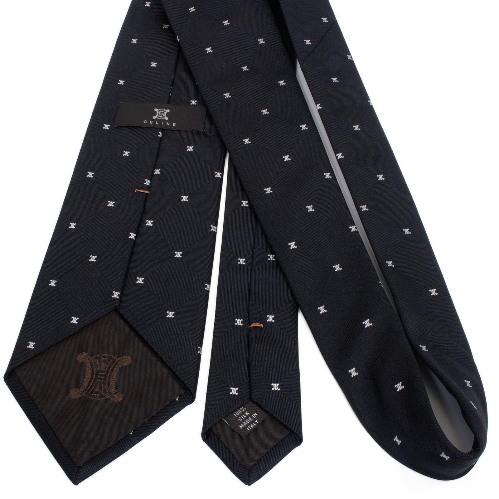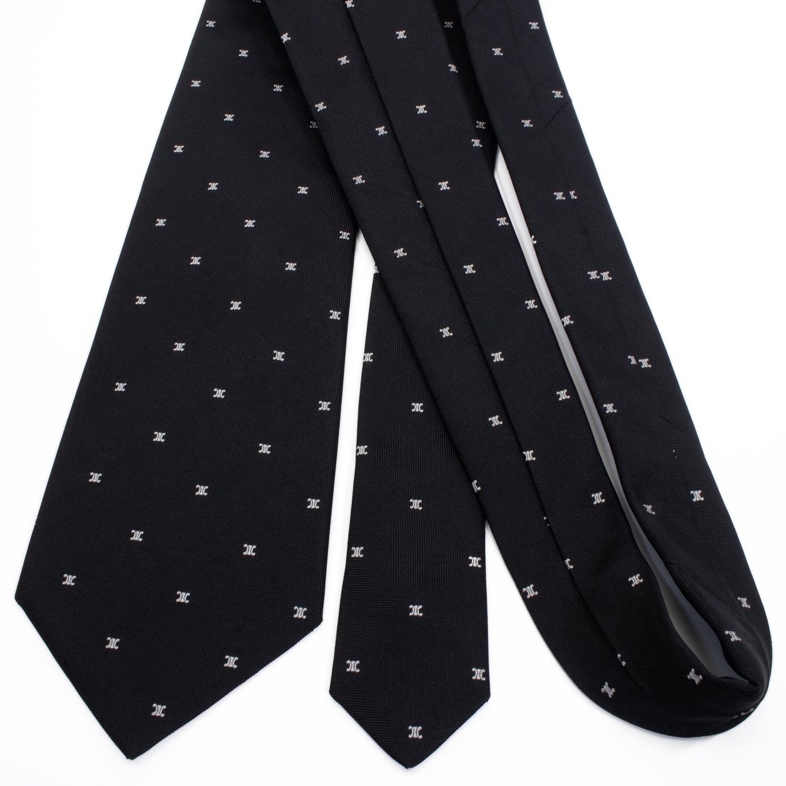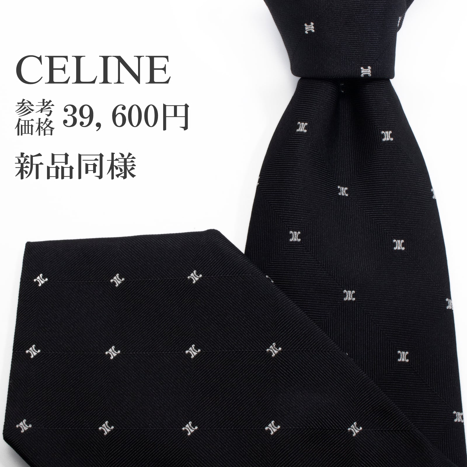 新品同様 送料無料 セリーヌ ネクタイ ジャガード 黒 ブラック シルバー 総柄 マカダム ブラゾン ロゴ マーク ハイブランド イタリア S572