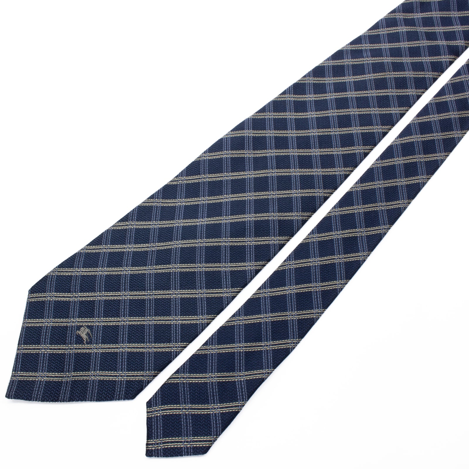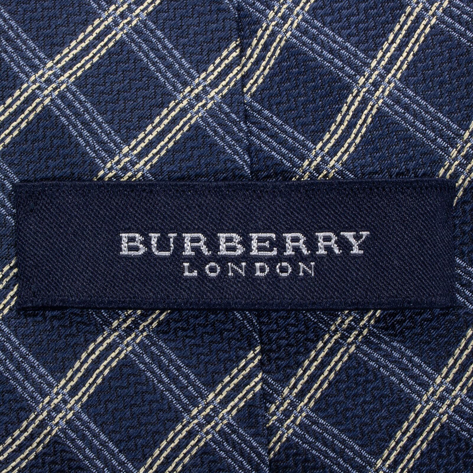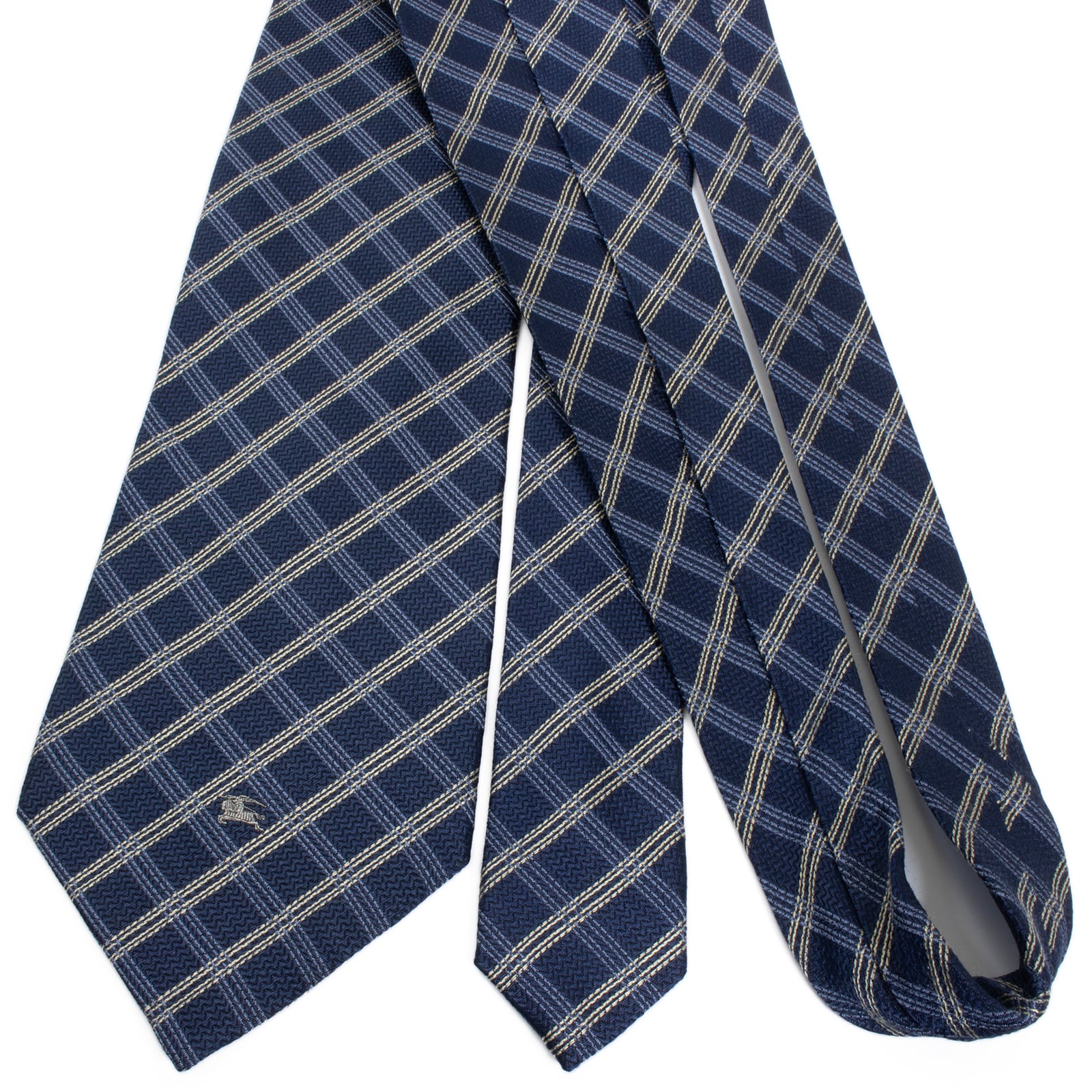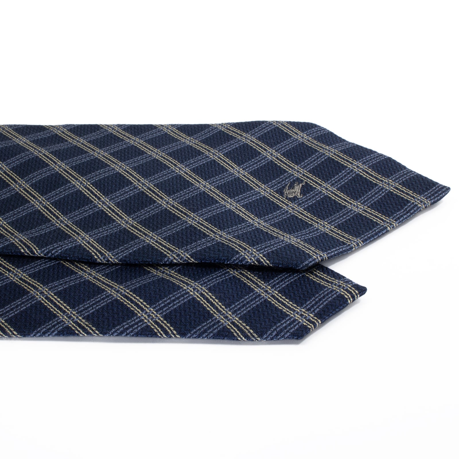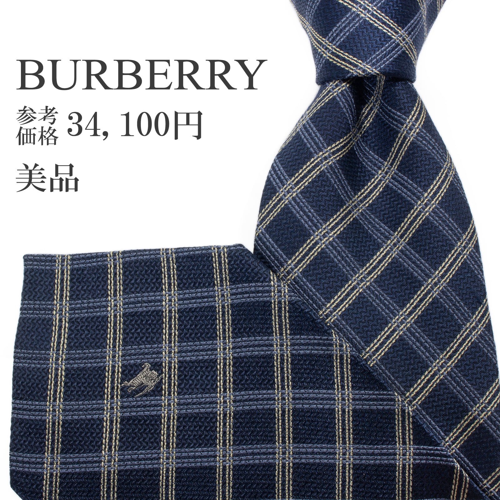 送料無料 バーバリー ネクタイ ジャガード シルク ネイビーブルー 青 シルバー チェック 馬 ホースロゴ ハイブランド イタリア製 綺麗 S574