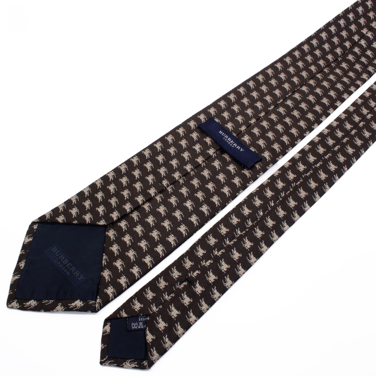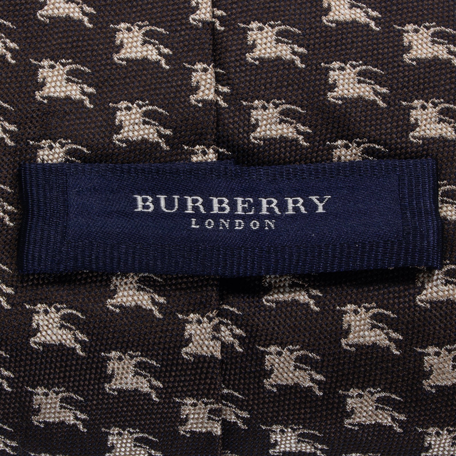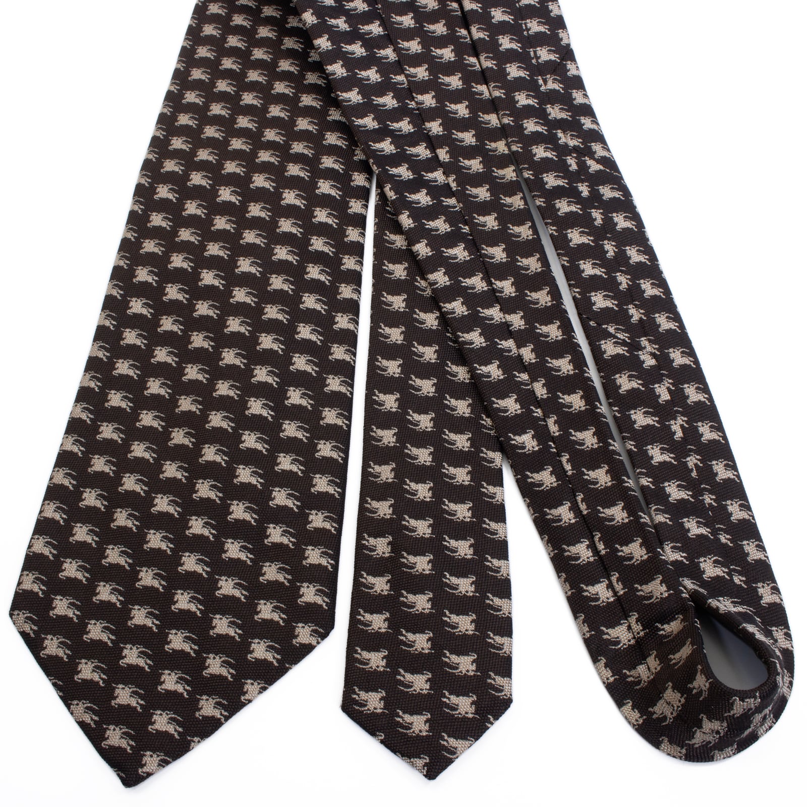 新品同様 送料無料 バーバリー ネクタイ ジャガード 焦げ茶色 ダークブラウン ベージュ 馬 ホースロゴ マーク ハイブランド イタリア S575