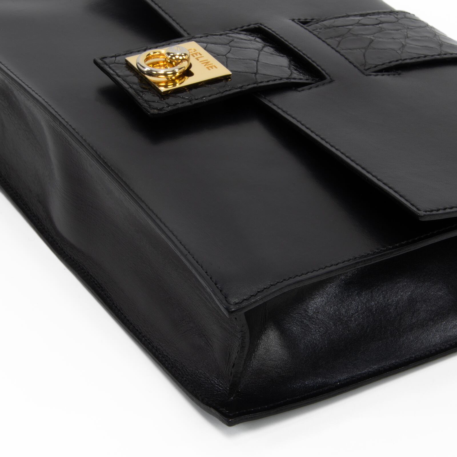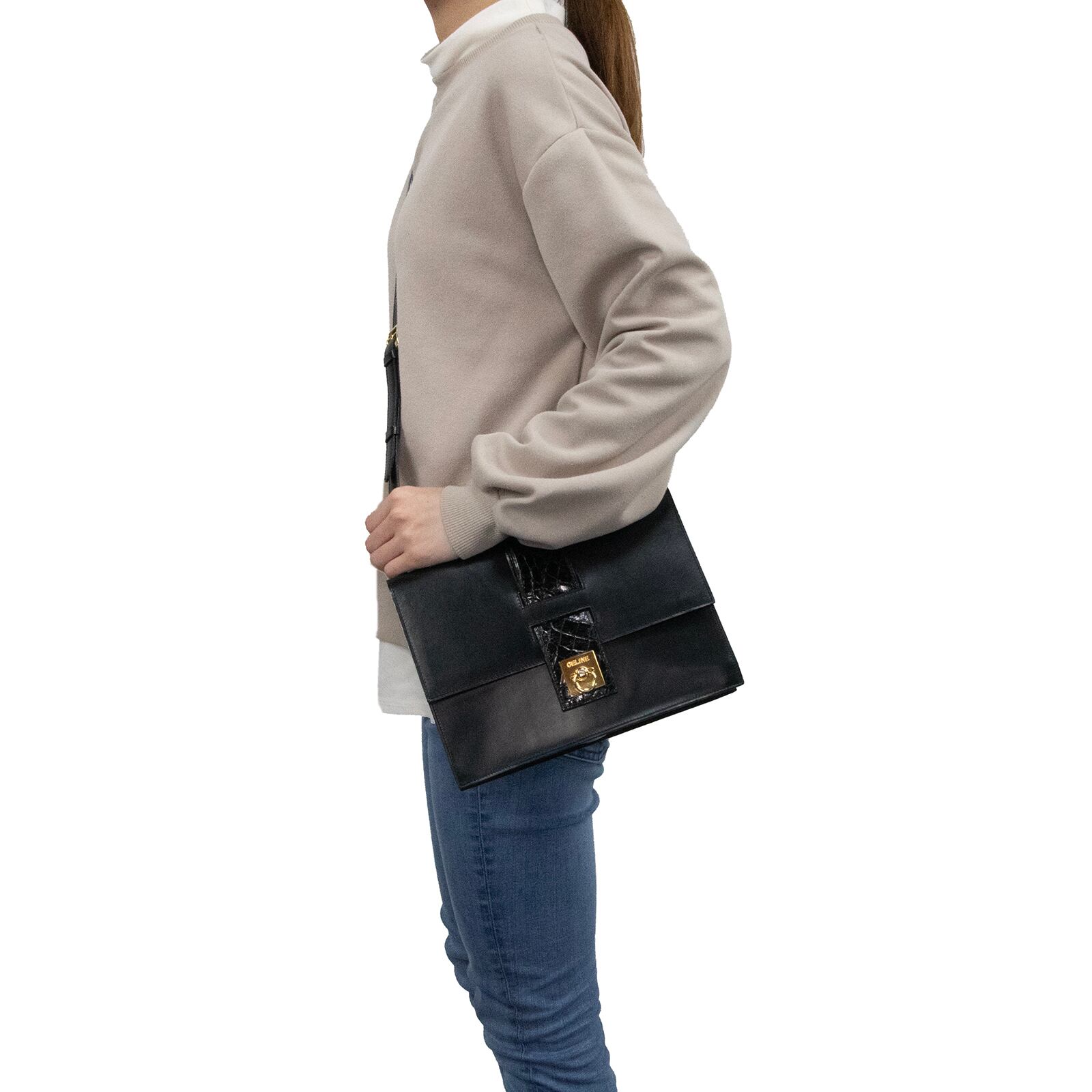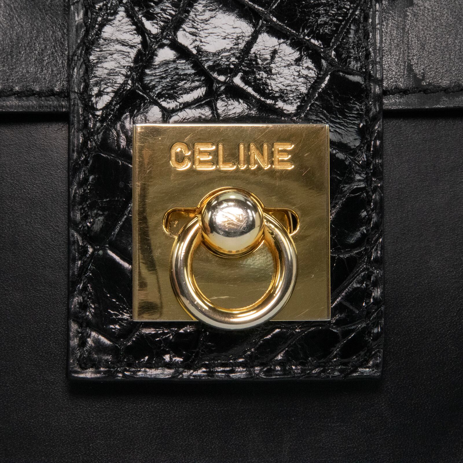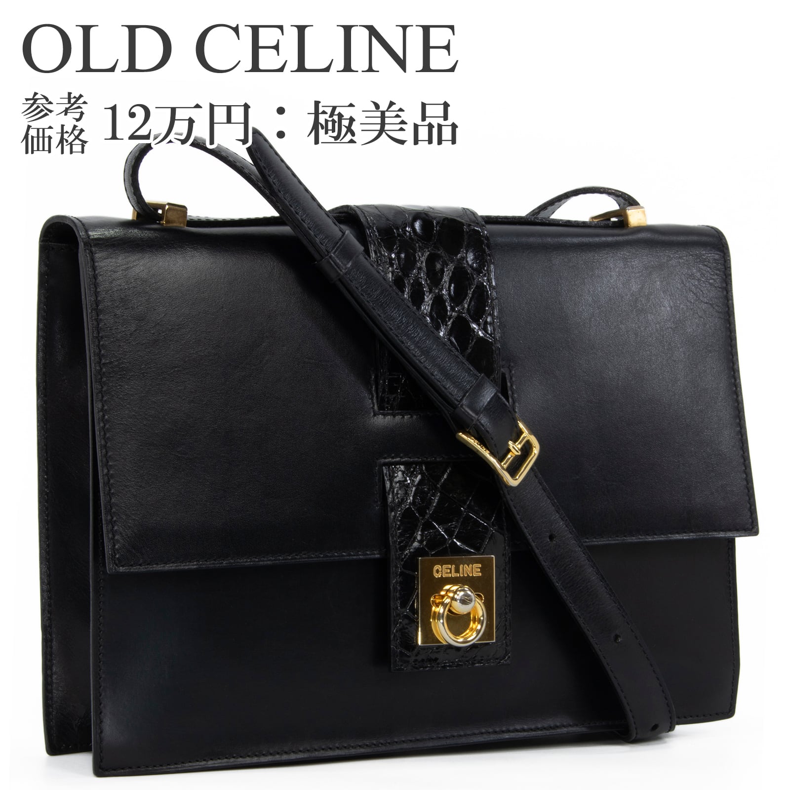 本物 送料無料 セリーヌ ショルダーバッグ レディース クロコ型押しレザー 黒 珍しい 斜め掛け 小さめ ロゴ ヴィンテージ 鞄 バック F297