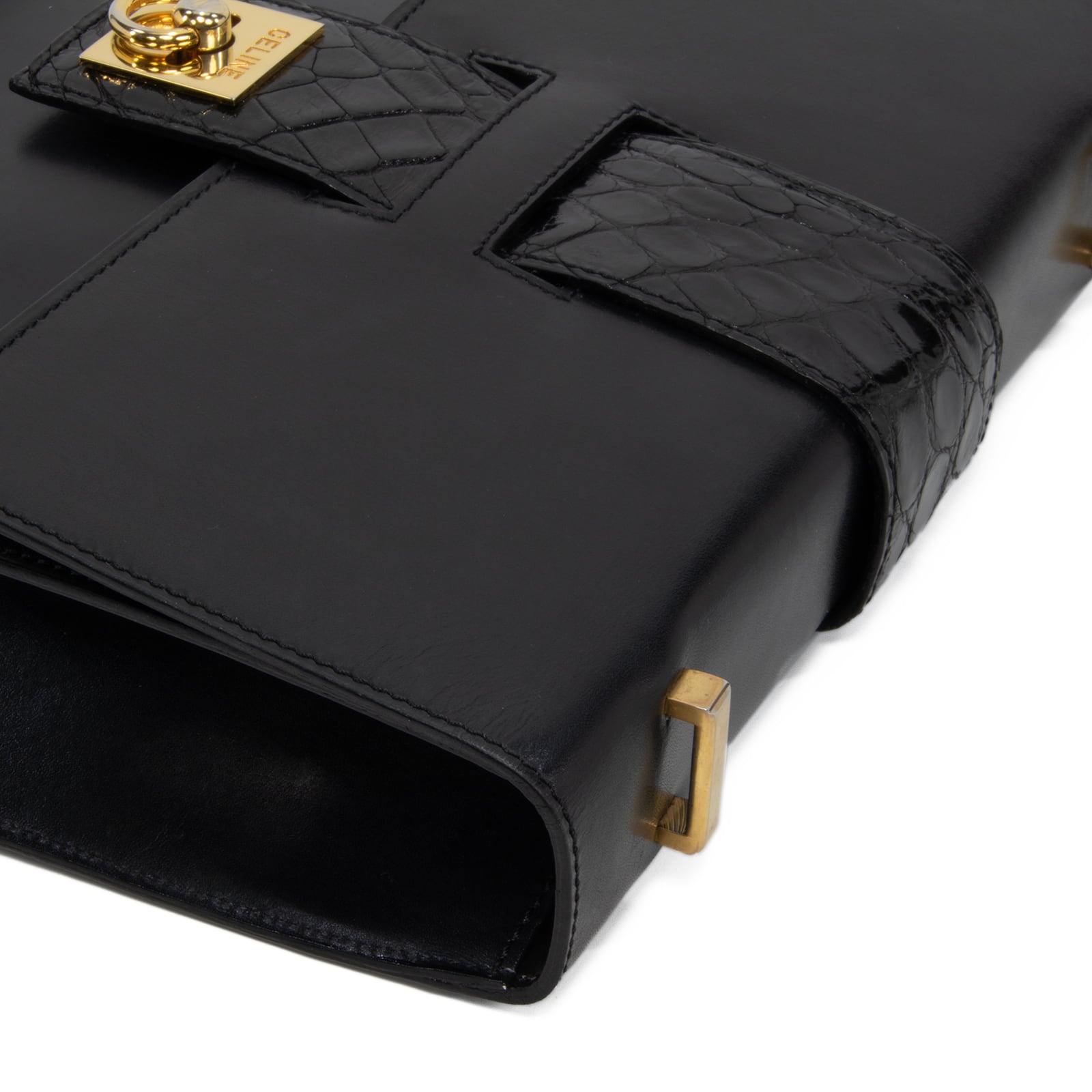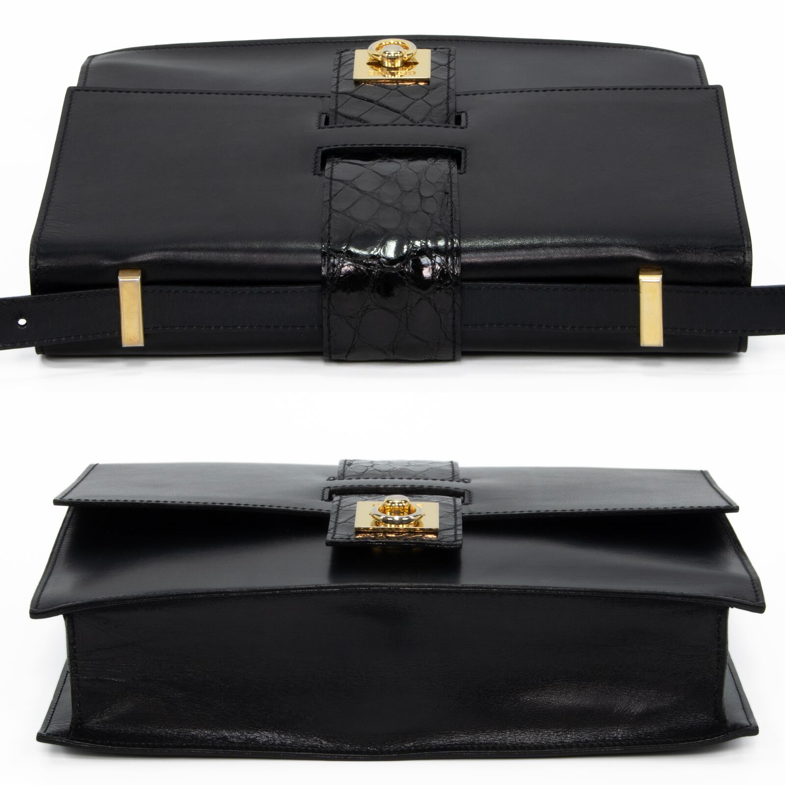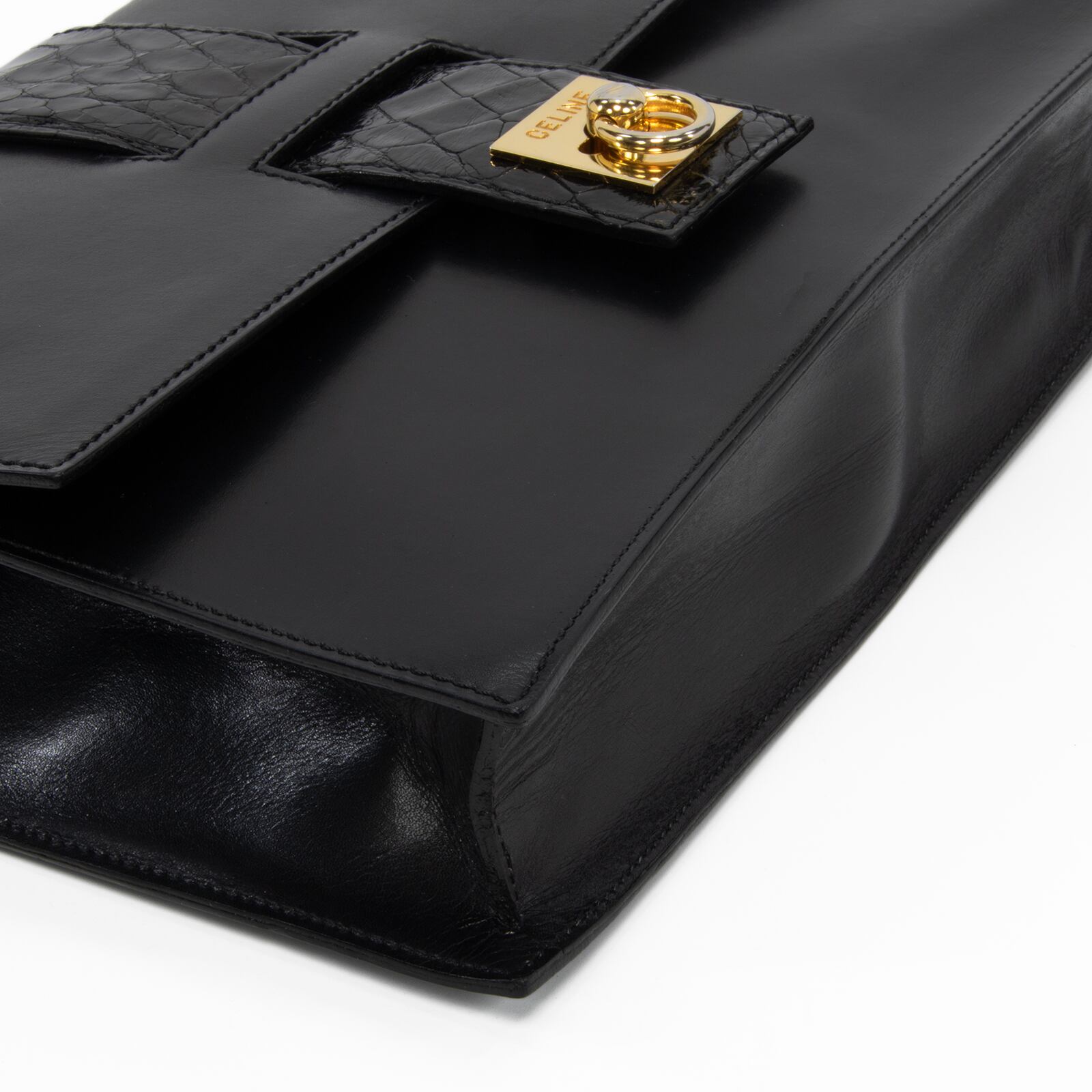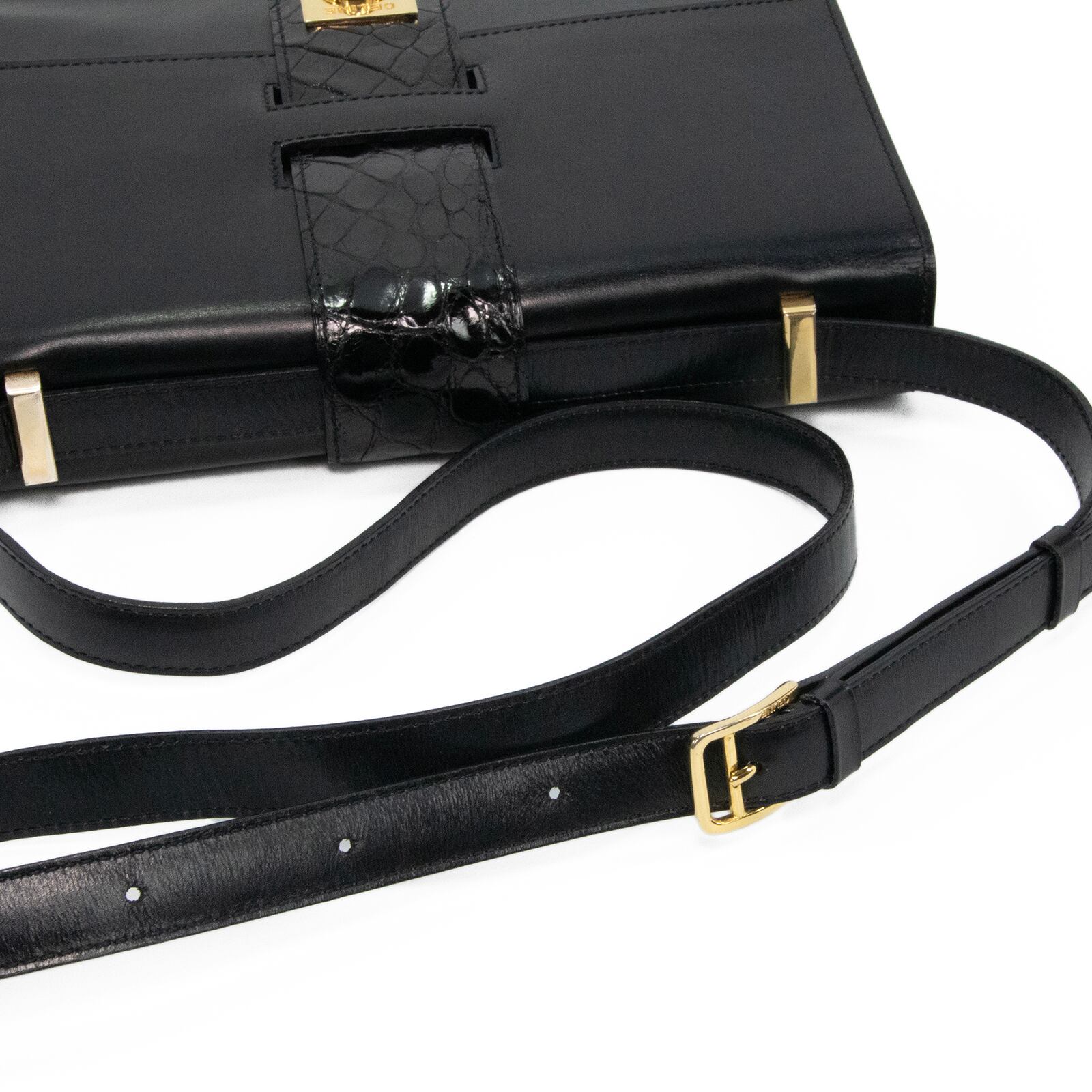 本物 送料無料 セリーヌ ショルダーバッグ レディース クロコ型押しレザー 黒 珍しい 斜め掛け 小さめ ロゴ ヴィンテージ 鞄 バック F297