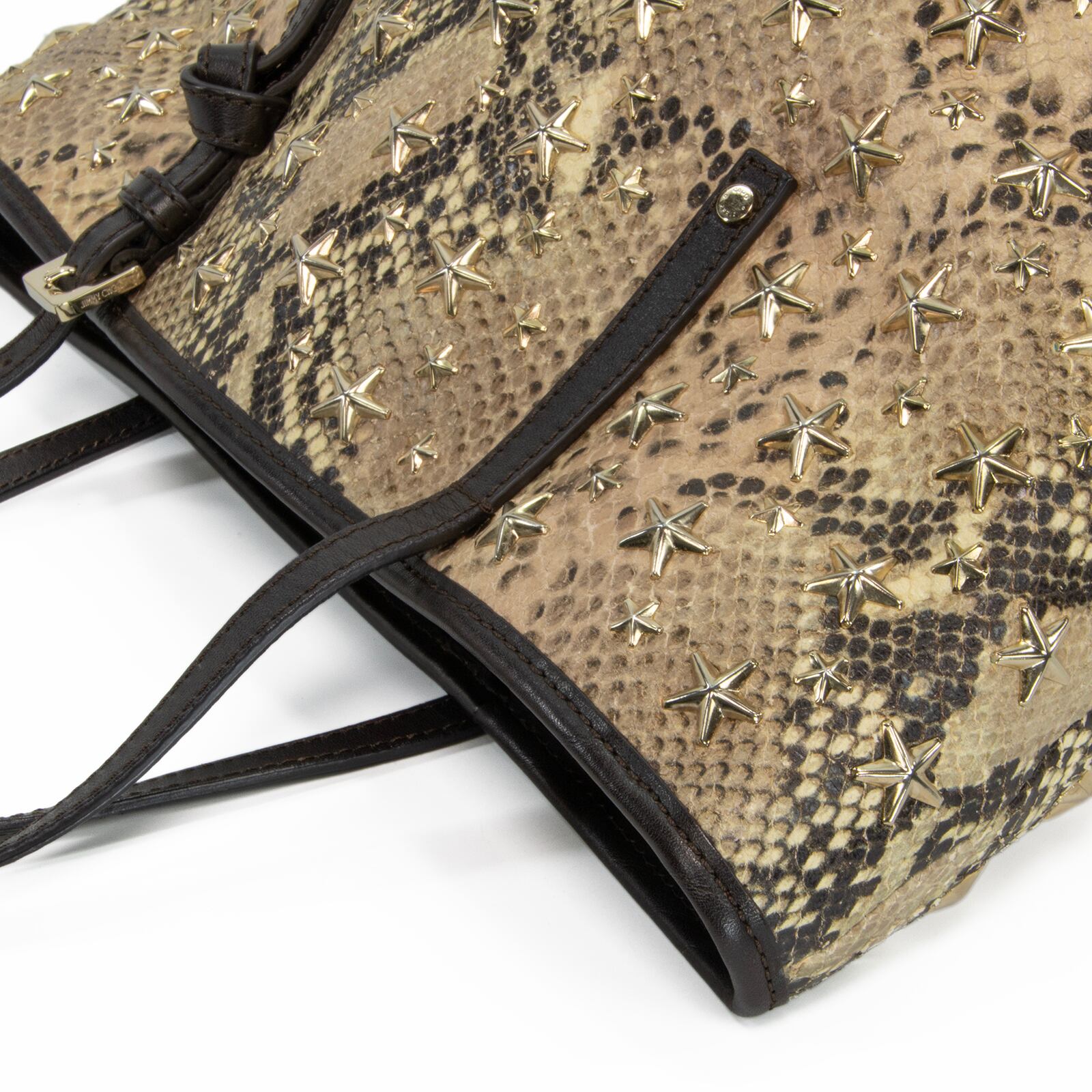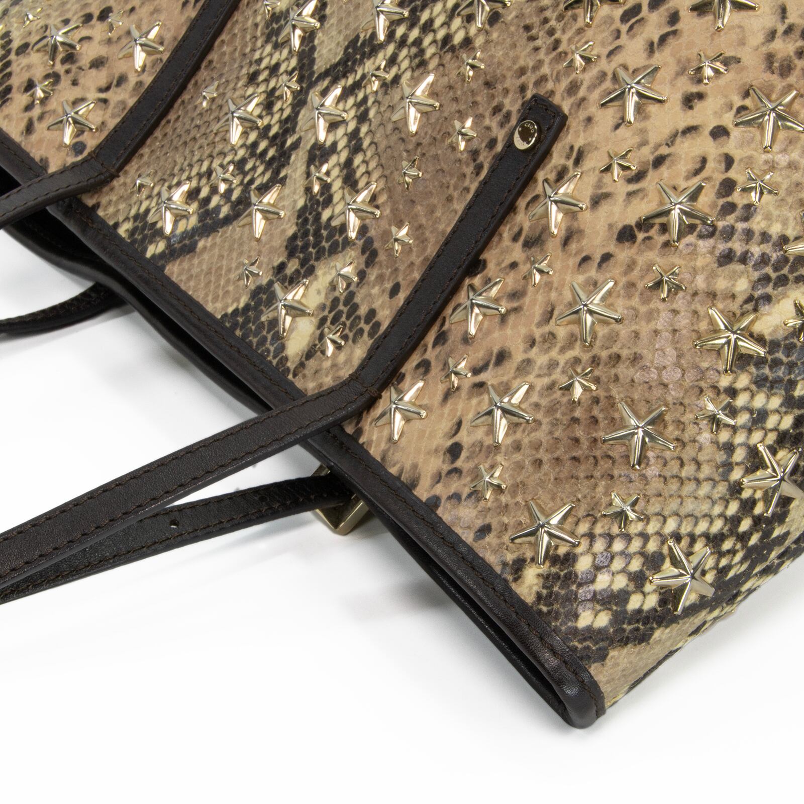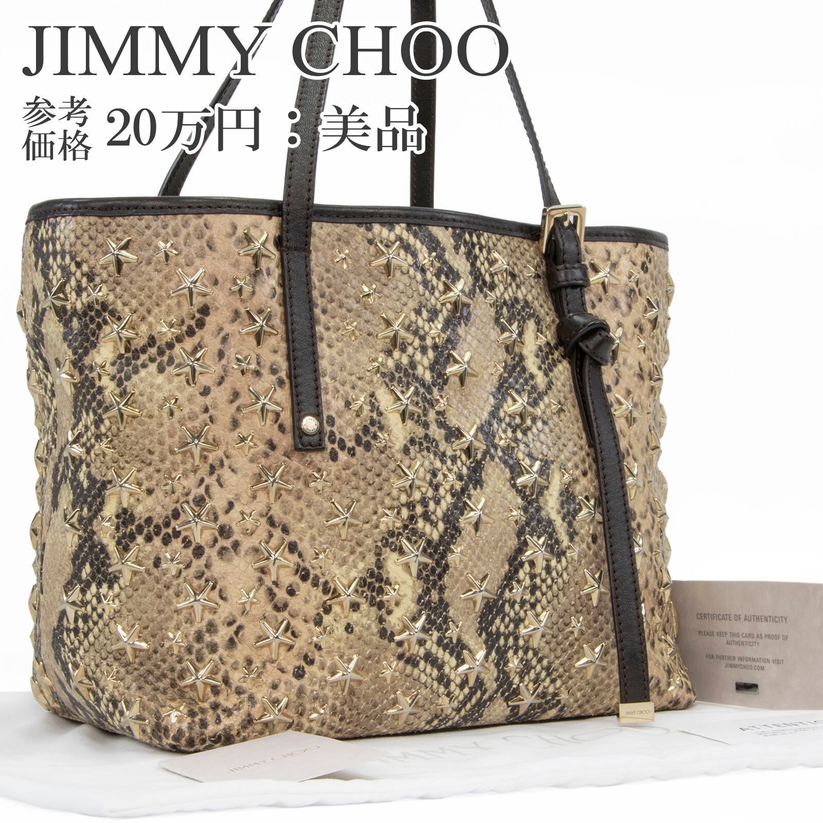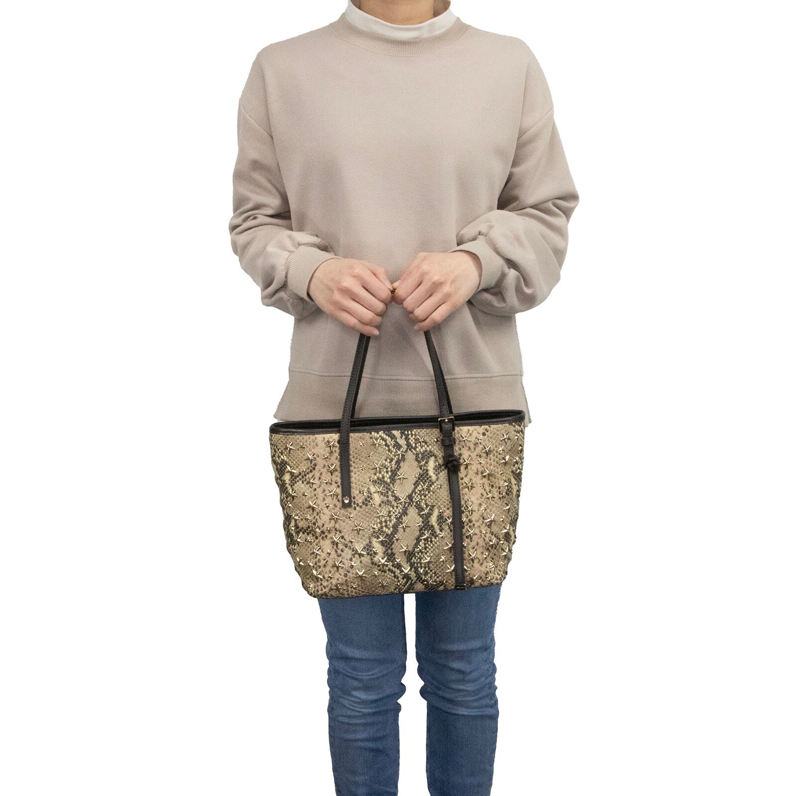 本物 送料無料 ジミーチュウ ハンドバッグ トートバッグ レディース パイソン型押し サシャ Y2K 蛇柄 星 スタースタッズ 鞄 バック F300