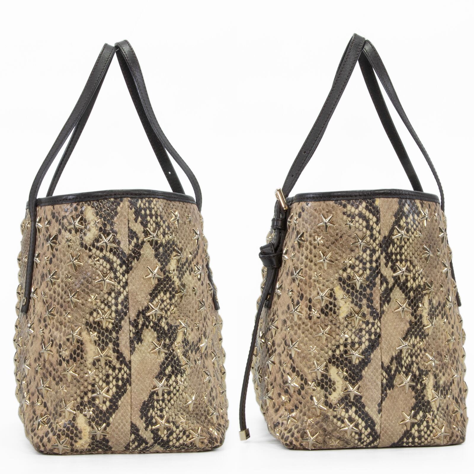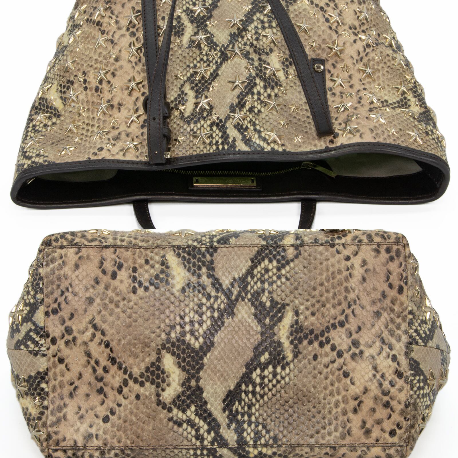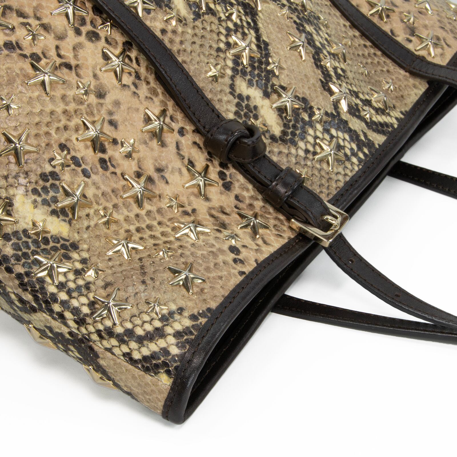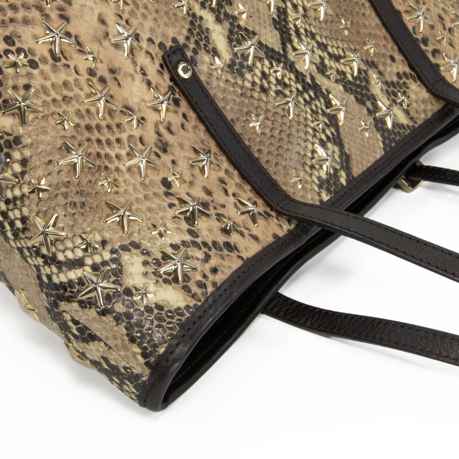本物 送料無料 ジミーチュウ ハンドバッグ トートバッグ レディース パイソン型押し サシャ Y2K 蛇柄 星 スタースタッズ 鞄 バック F300