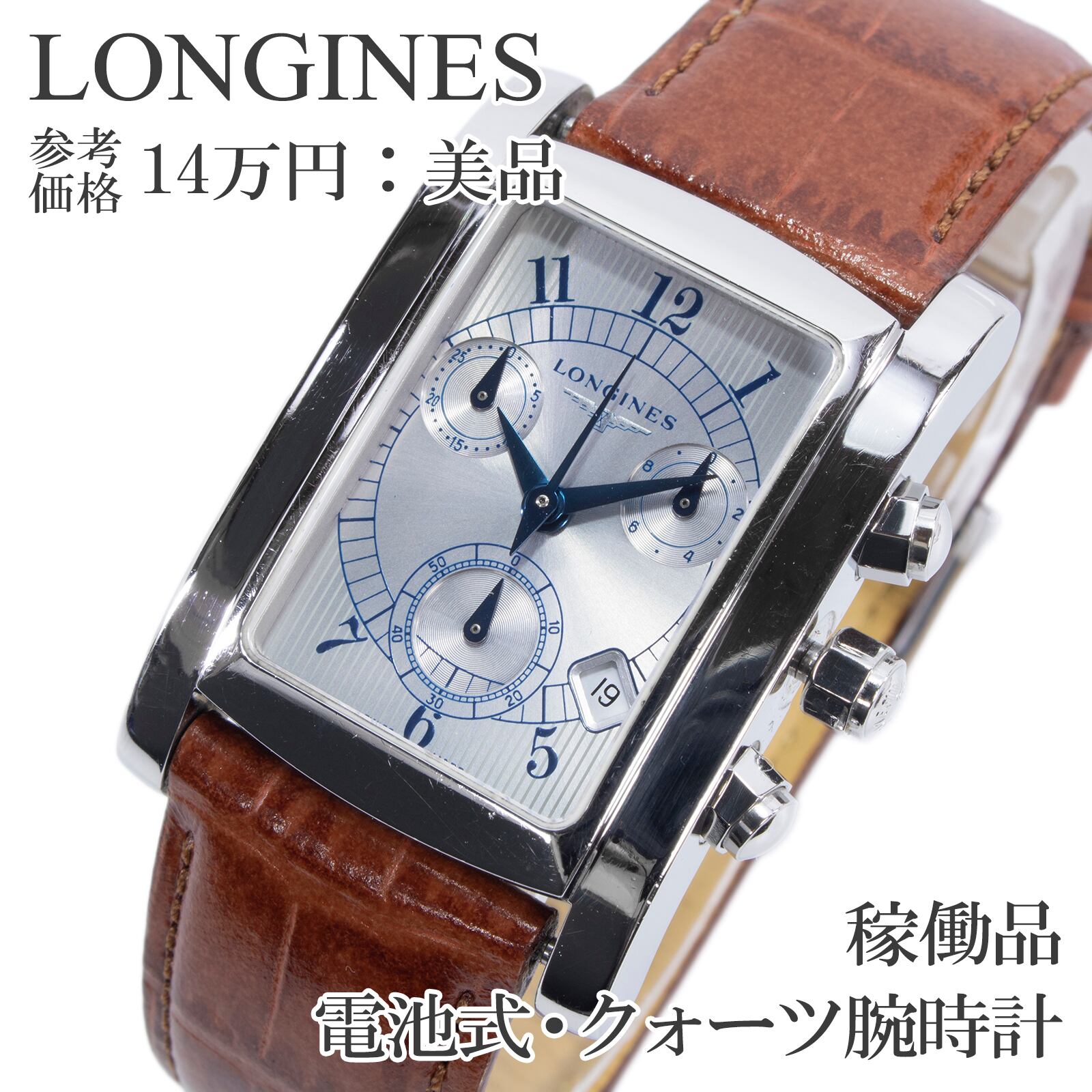 稼働品 送料無料 ロンジン 腕時計 クォーツ メンズ ドルチェヴィータ L5.656.4.73.6 シルバー クロノグラフ レクタンギュラー ロゴ X462