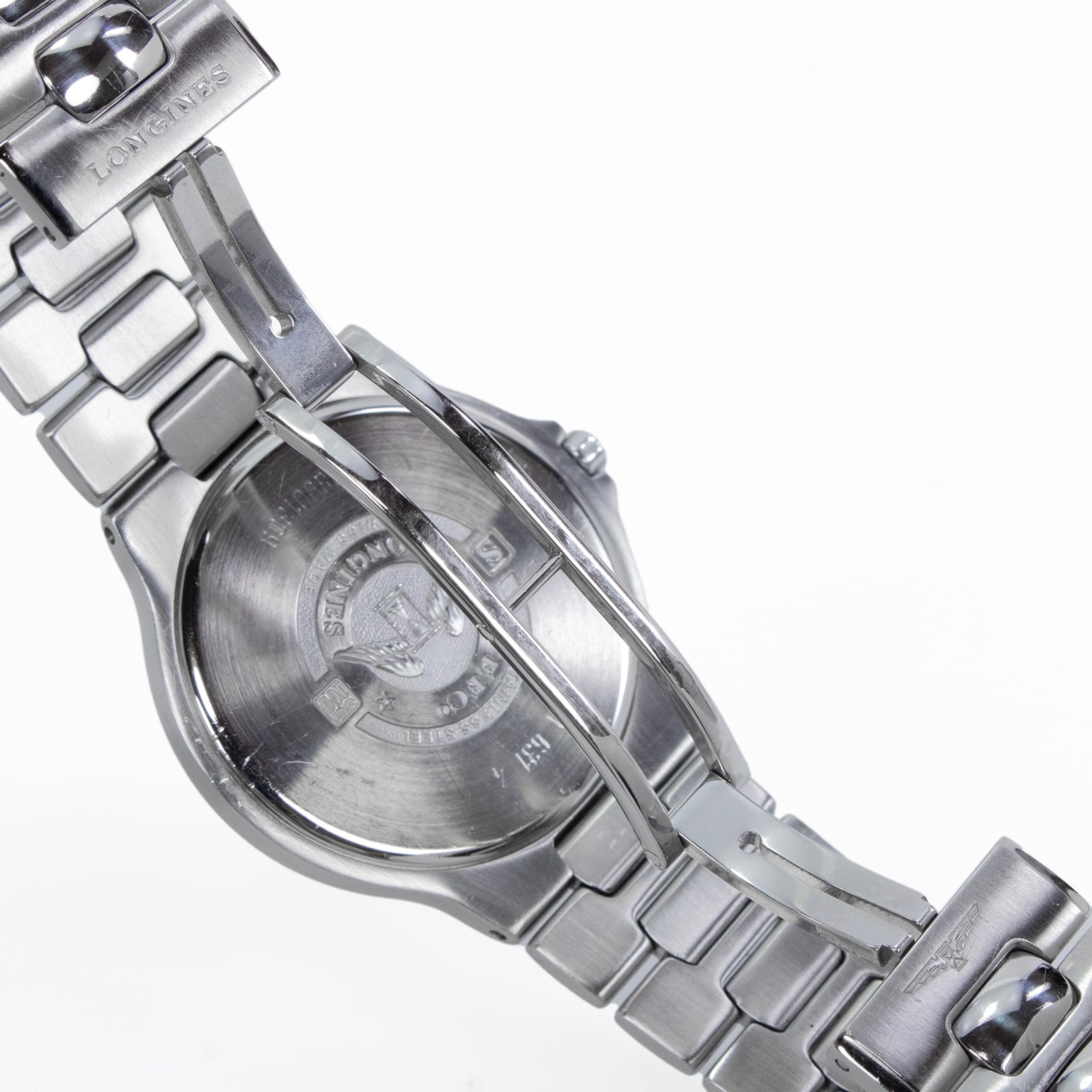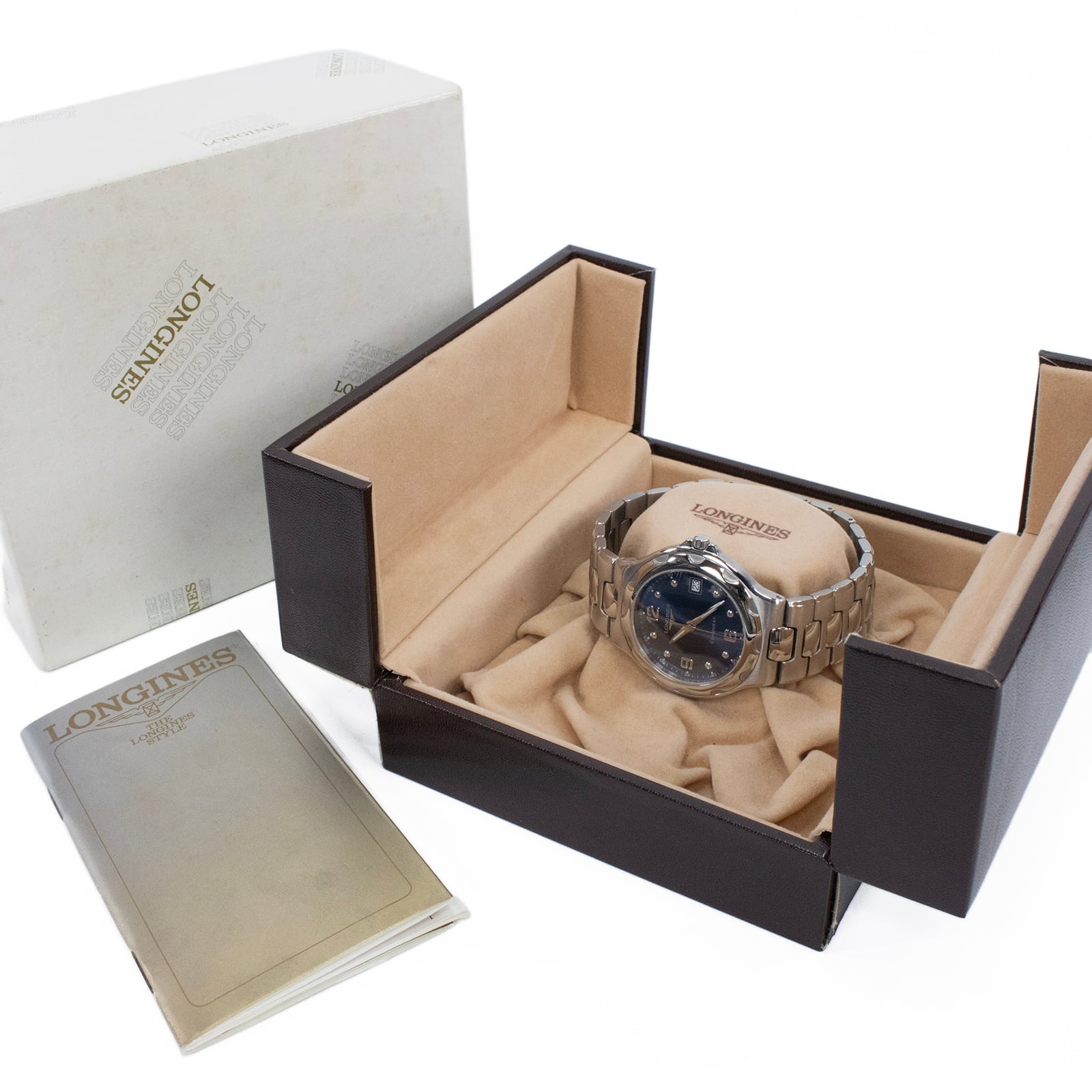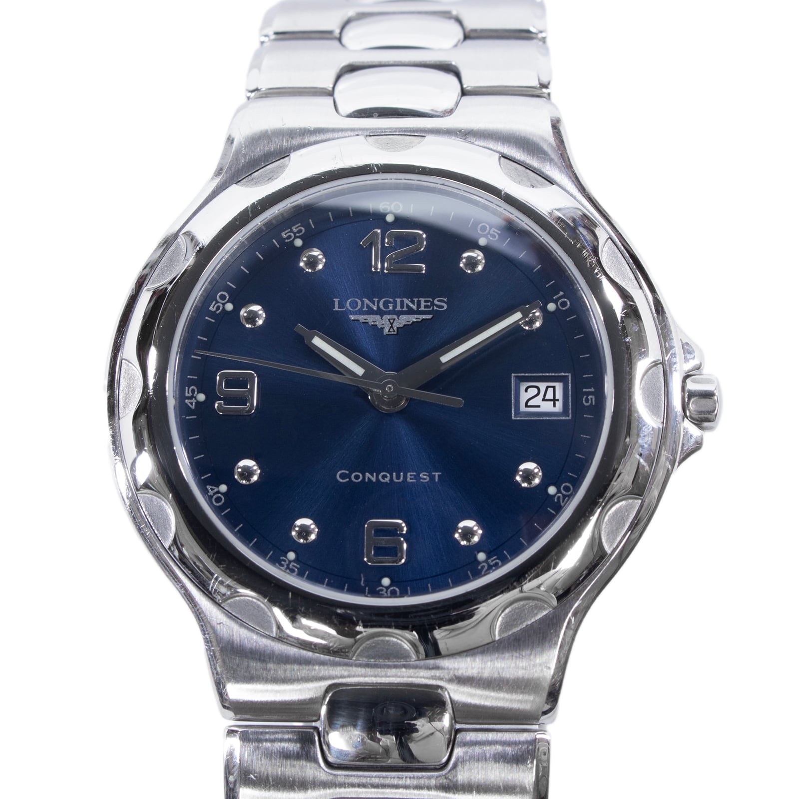 稼働品 送料無料 ロンジン 腕時計 クォーツ メンズ コンクエスト L1.631.4 青 ブルー シンプル ロゴ マーク ビジネス メタルブレス X463