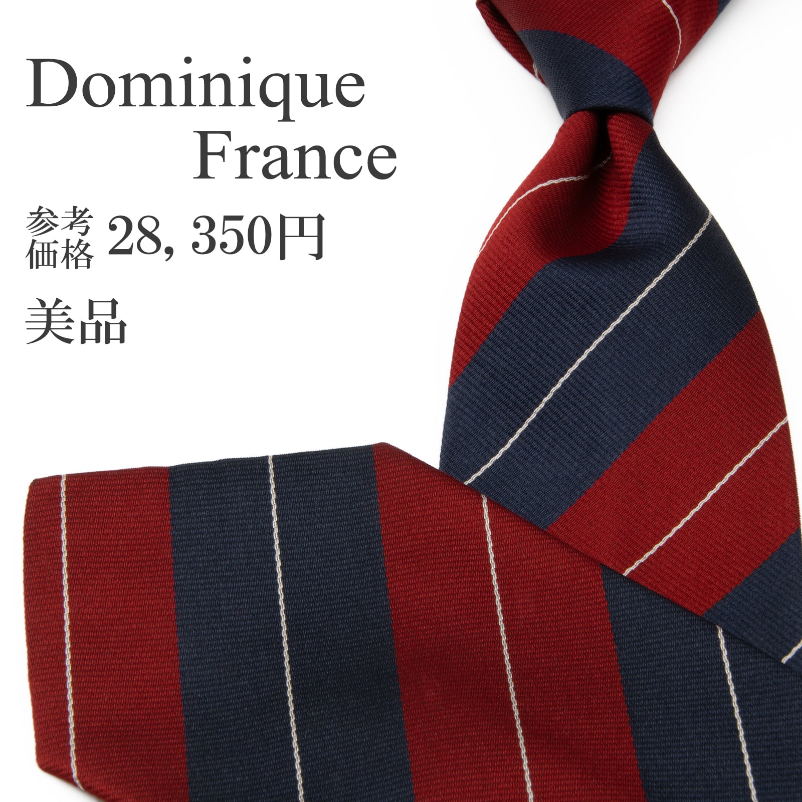 送料無料 ドミニックフランス ネクタイ レギュラータイ ジャガード ネイビーブルー 赤 白 ストライプ シンプル ハイブランド フランス P337