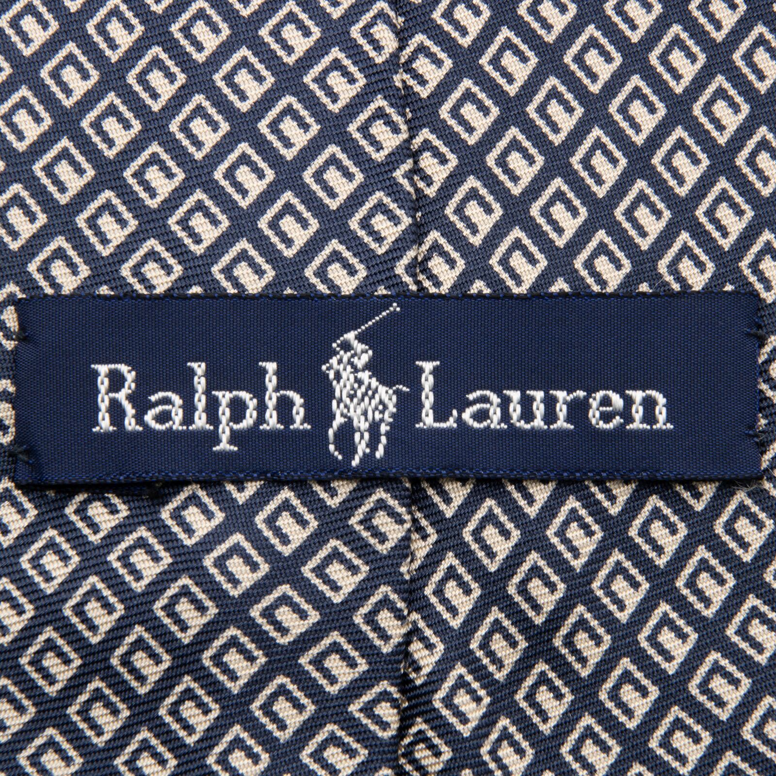 送料無料 ラルフローレン ネクタイ シルク ネイビーブルー ベージュ ビジネス カジュアル 総柄 Y2K 四角 ハイブランド おしゃれ 綺麗 P541