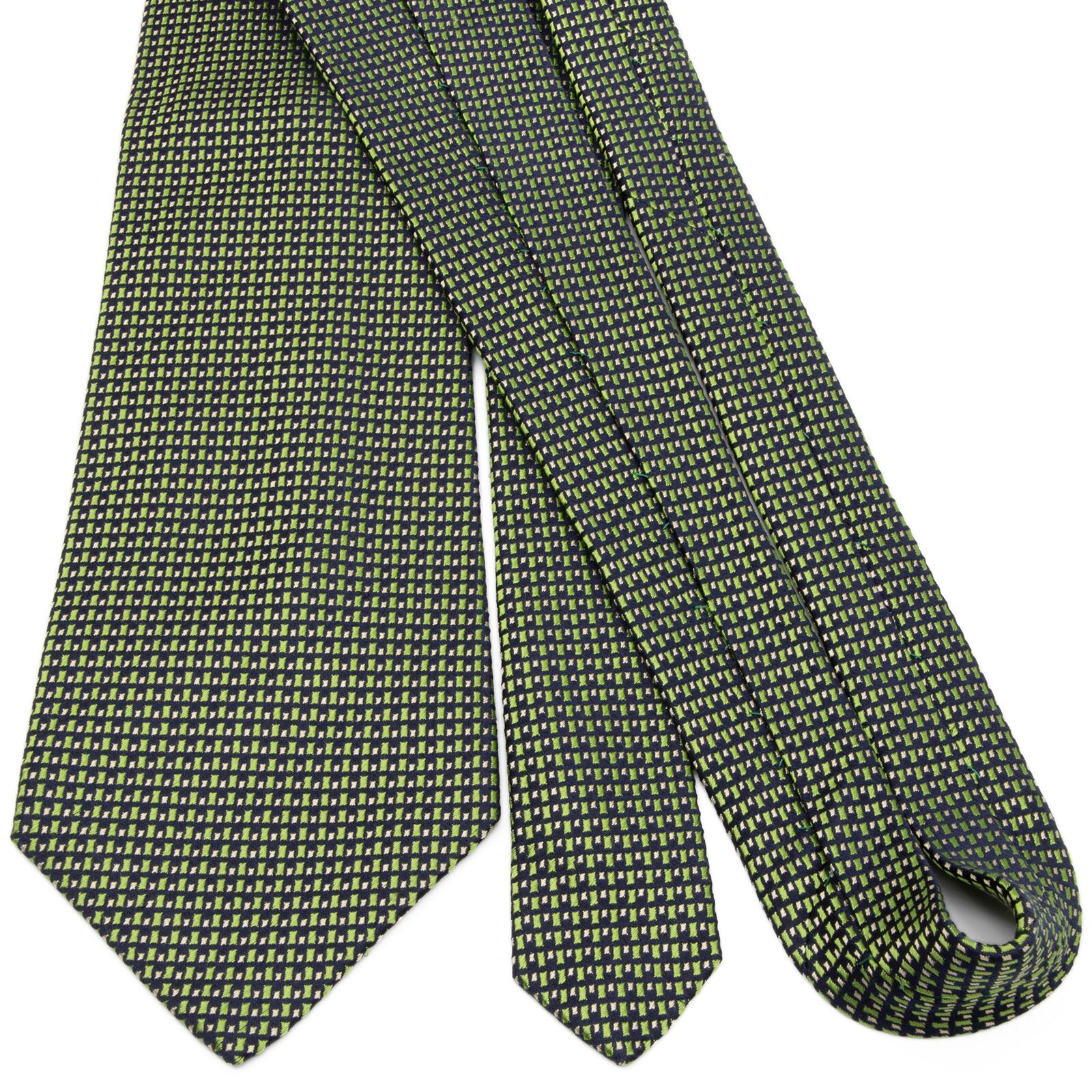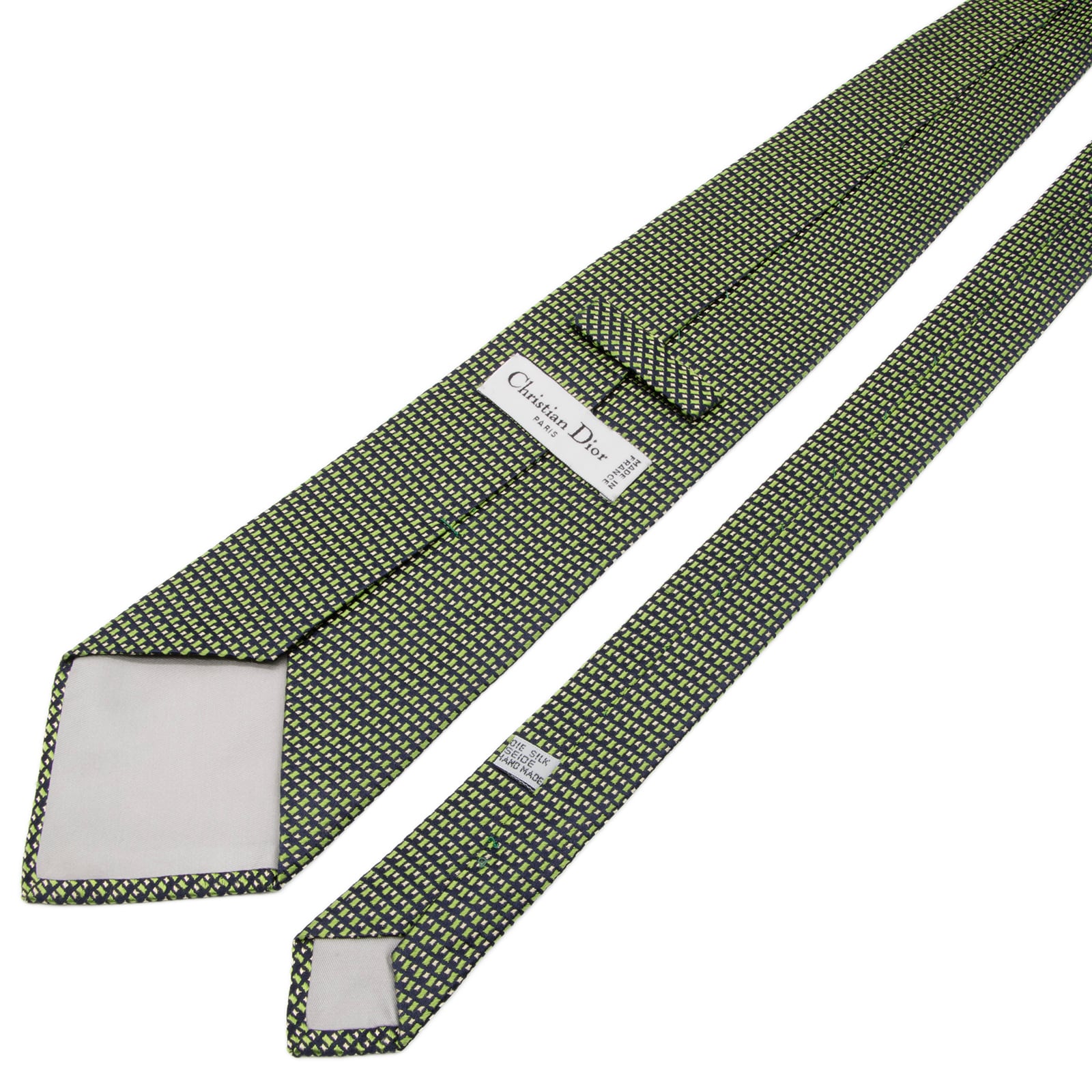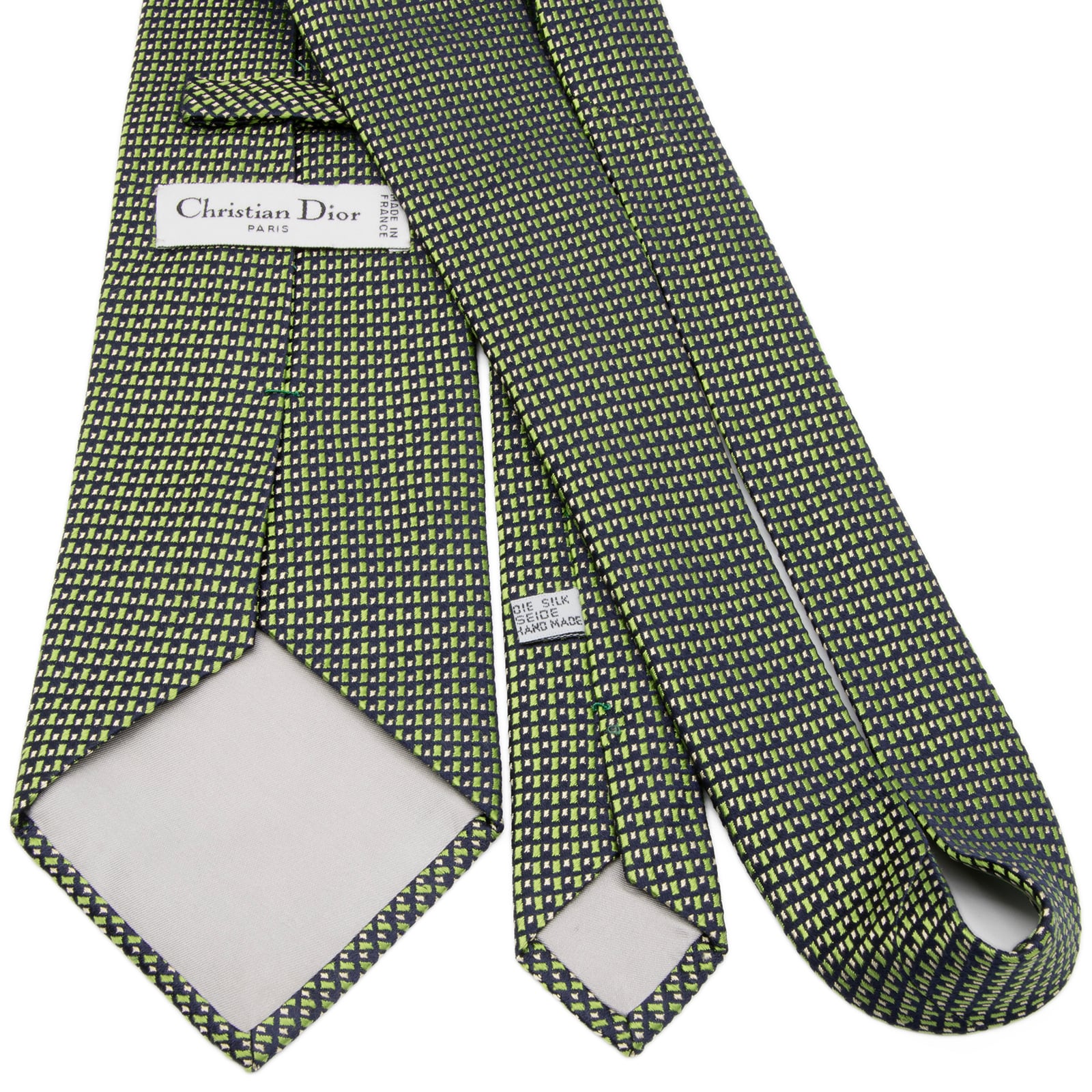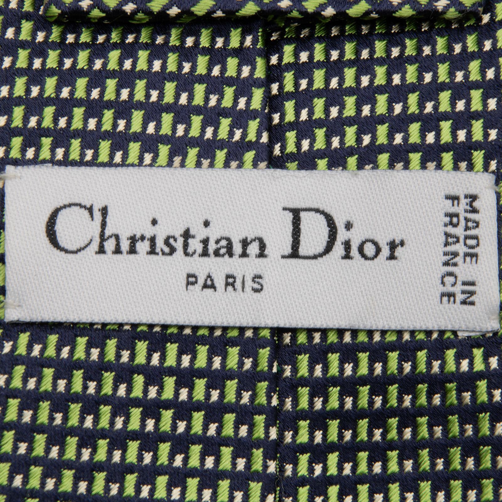 送料無料 ディオール ネクタイ ジャガードタイ シルク 緑 ネイビーブルー ゴールド 総柄 Y2K 光沢 四角 ハイブランド フランス製 綺麗 P633