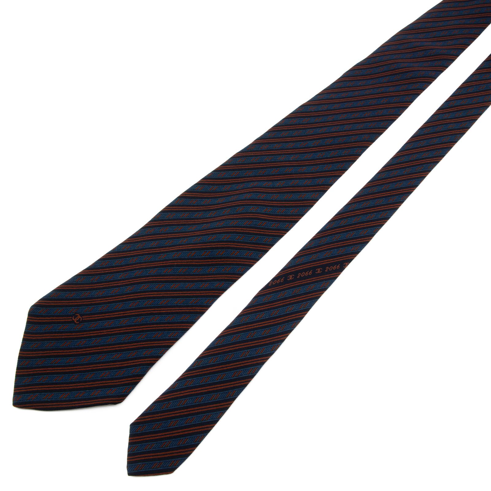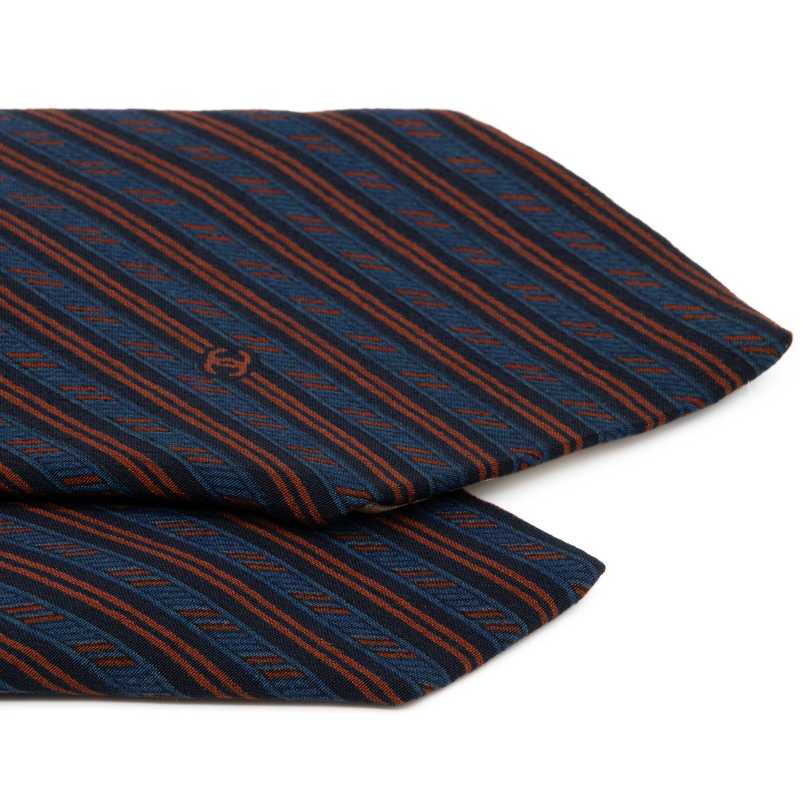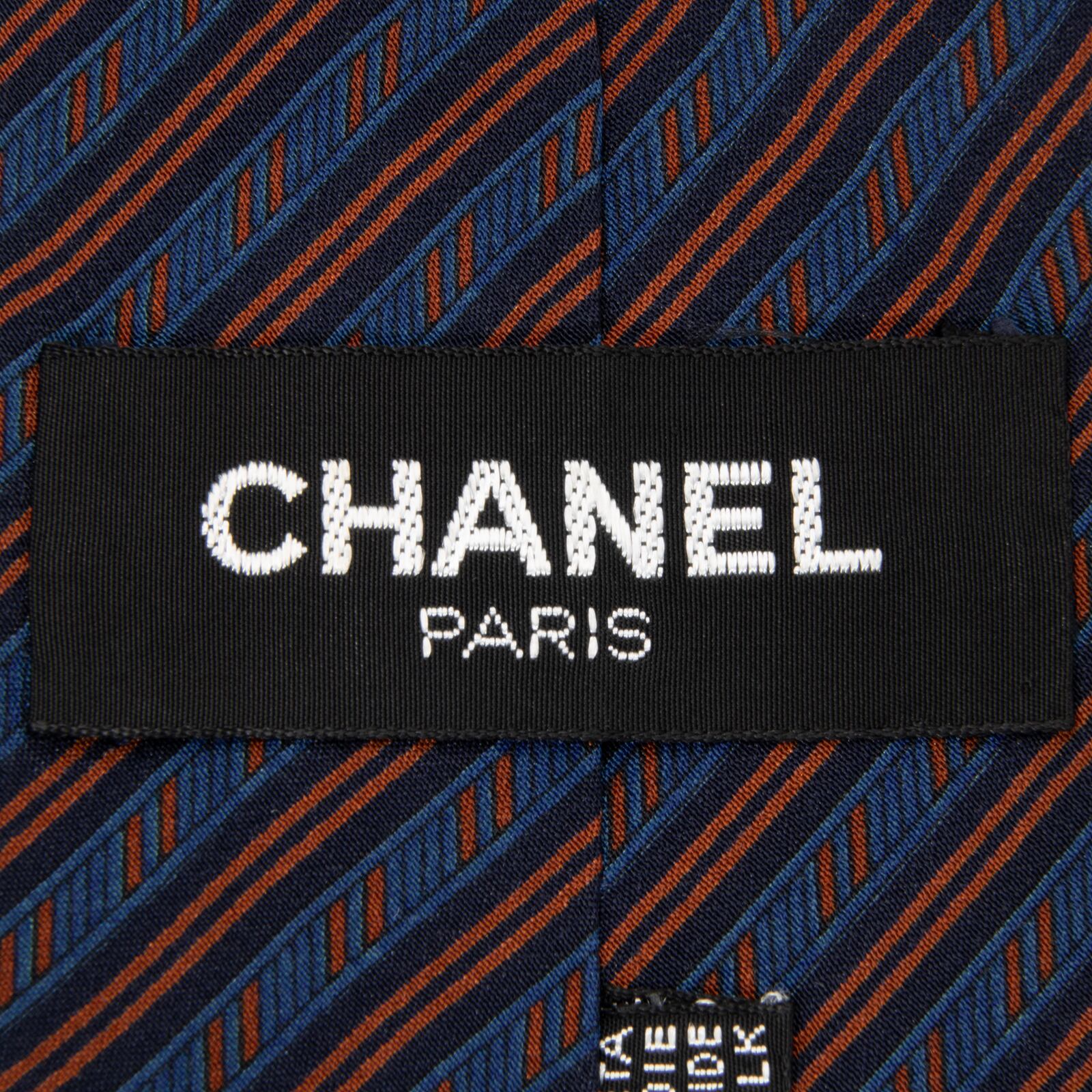 送料無料 シャネル ネクタイ レギュラータイ 青 茶色 ブラウン ネイビーブルー ストライプ ココマーク ハイブランド イタリア製 綺麗 P747