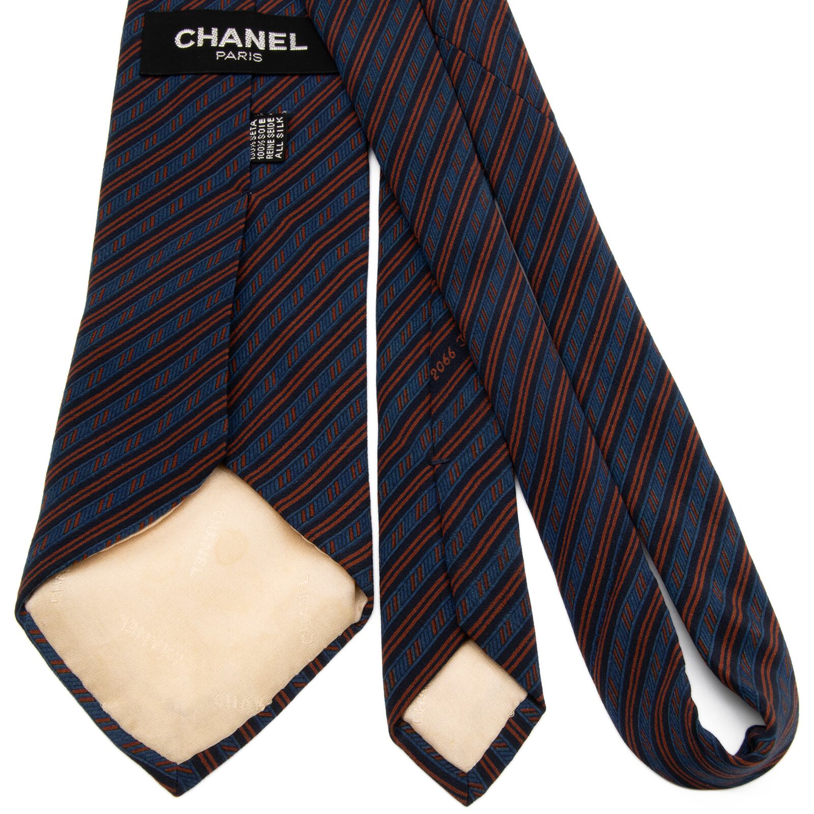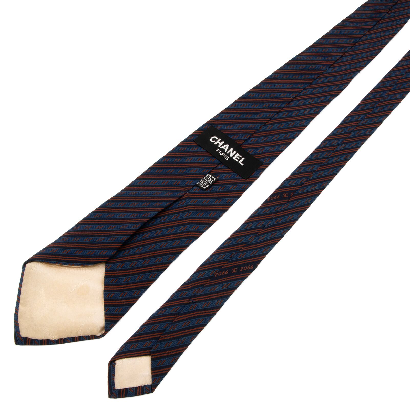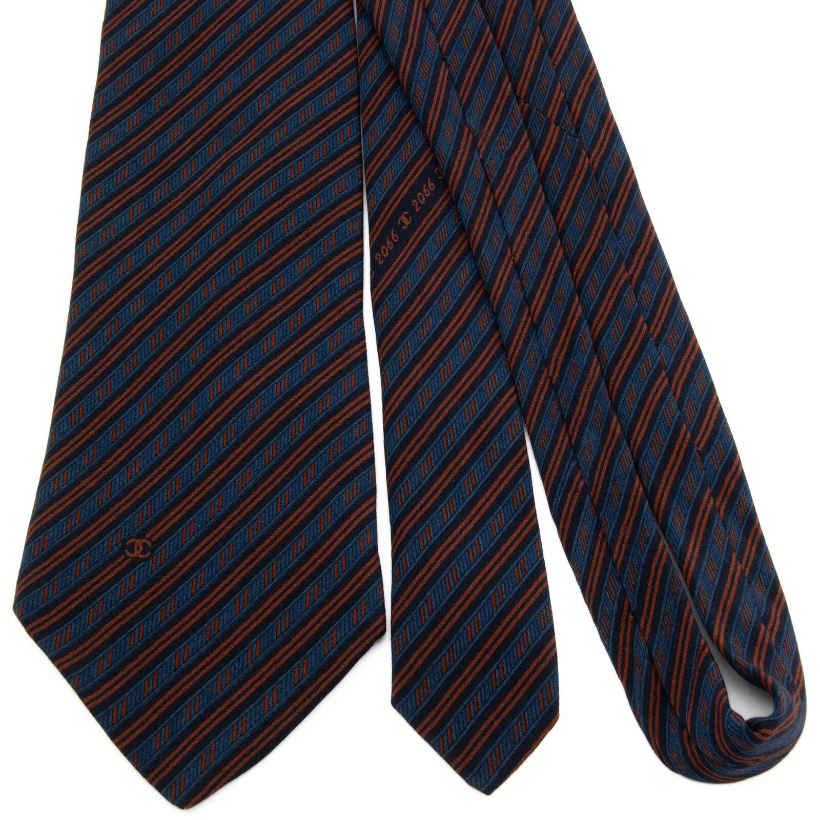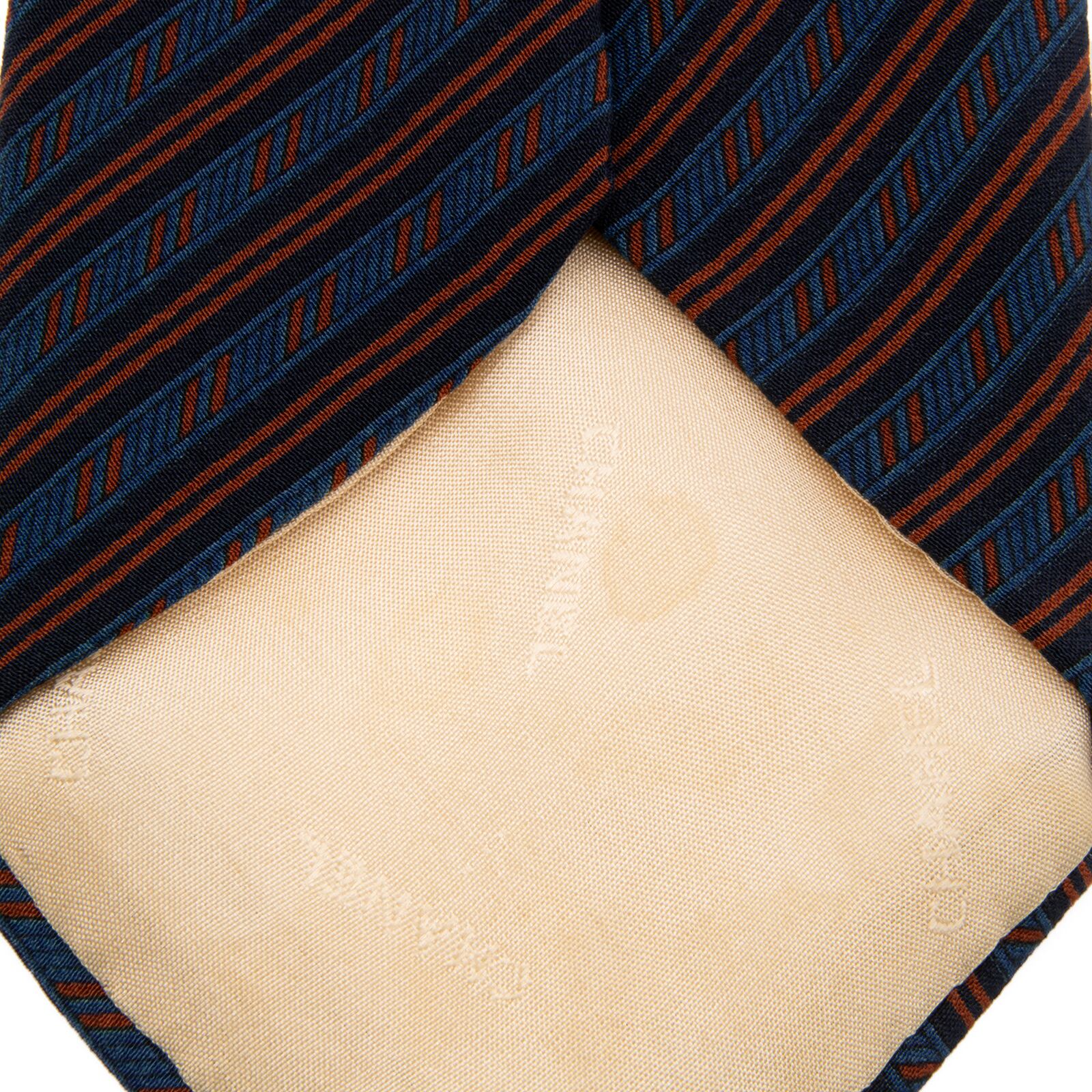 送料無料 シャネル ネクタイ レギュラータイ 青 茶色 ブラウン ネイビーブルー ストライプ ココマーク ハイブランド イタリア製 綺麗 P747