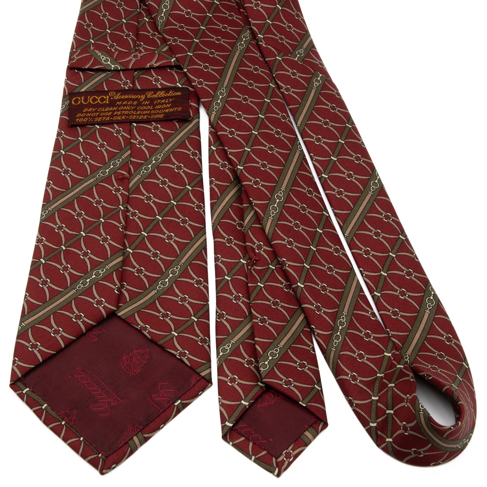 ワインレッド、モスグリーン、ベージュの組み合わせは、グッチの伝統的なカラーパレットを彷彿とさせます。
